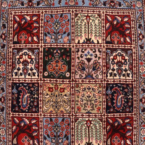Birjand and Mood Rugs are known for their special Pattern which is Called Fish Design (Mahi). The material is mainly made of wool but some rugs are Silkin lay.
