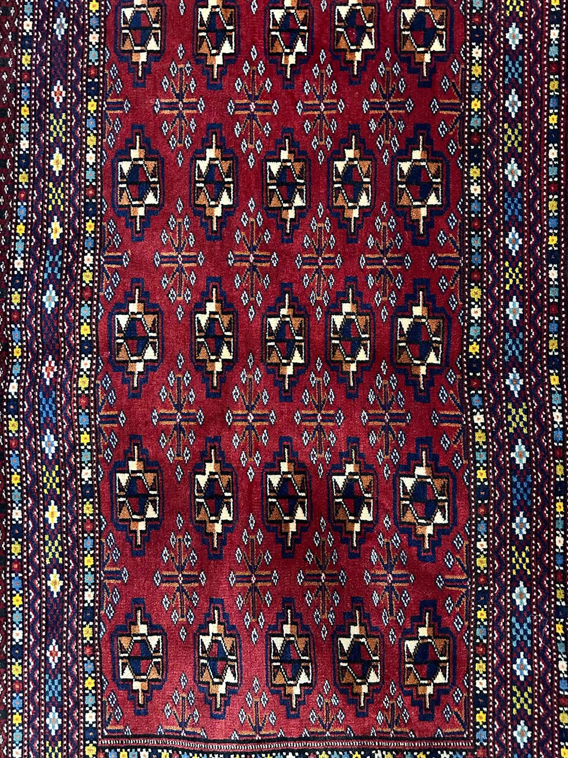 • Handwoven Mastery: Originating from East Persia, these Poshti rugs were woven by nomadic weavers who poured their artistry into every knot, creating a design that carries the rich tradition of Turkoman tribes.