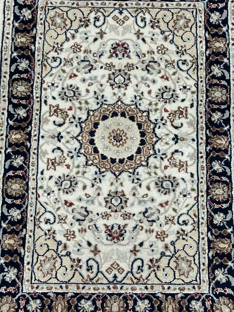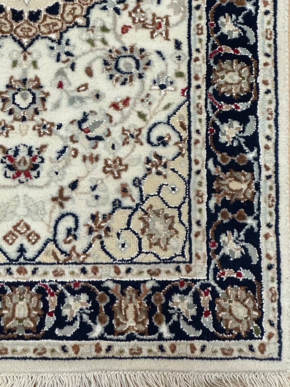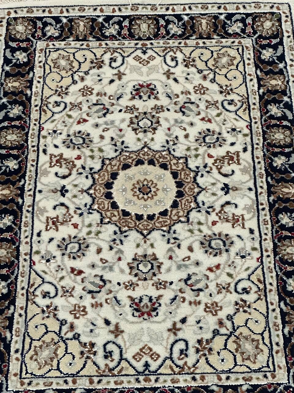 0.97 x 0.63 M Indian Wool & Silk Nain Design Rug