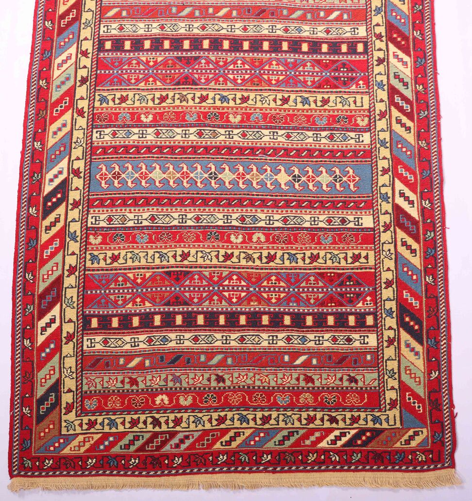 Enhance your space with the artistic elegance of this Certified Persian Ardebil Sumak Kilim Rug, exclusively from RugMaster, your trusted handmade Persian Rugs and Runners specialist in Australia!
