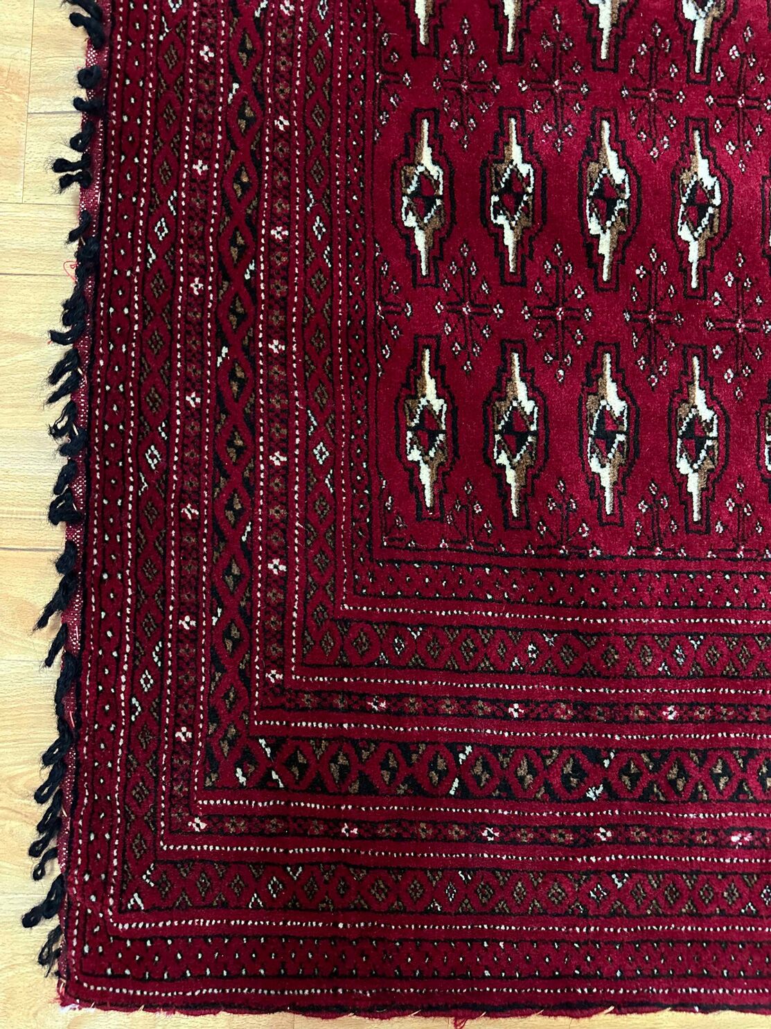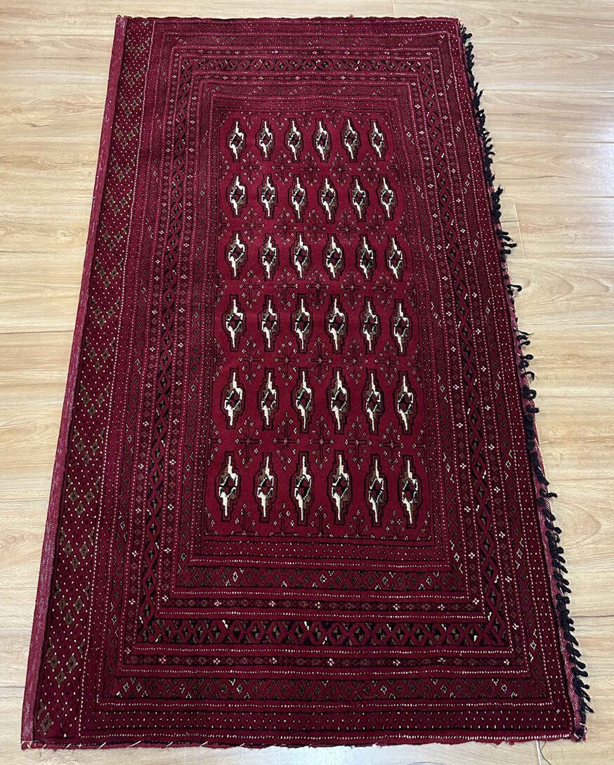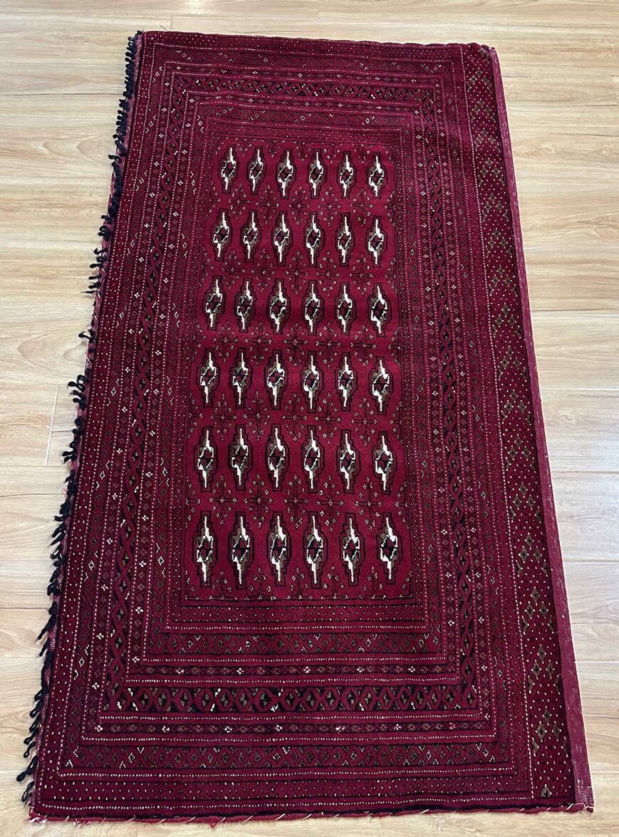 • Handwoven Mastery: Originating from East Persia, these Poshti rugs were woven by nomadic weavers who poured their artistry into every knot, creating a design that carries the rich tradition of Turkoman tribes.