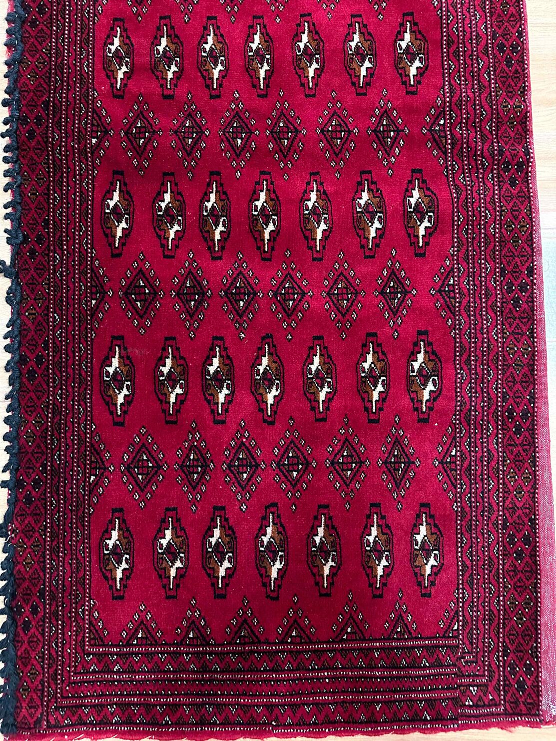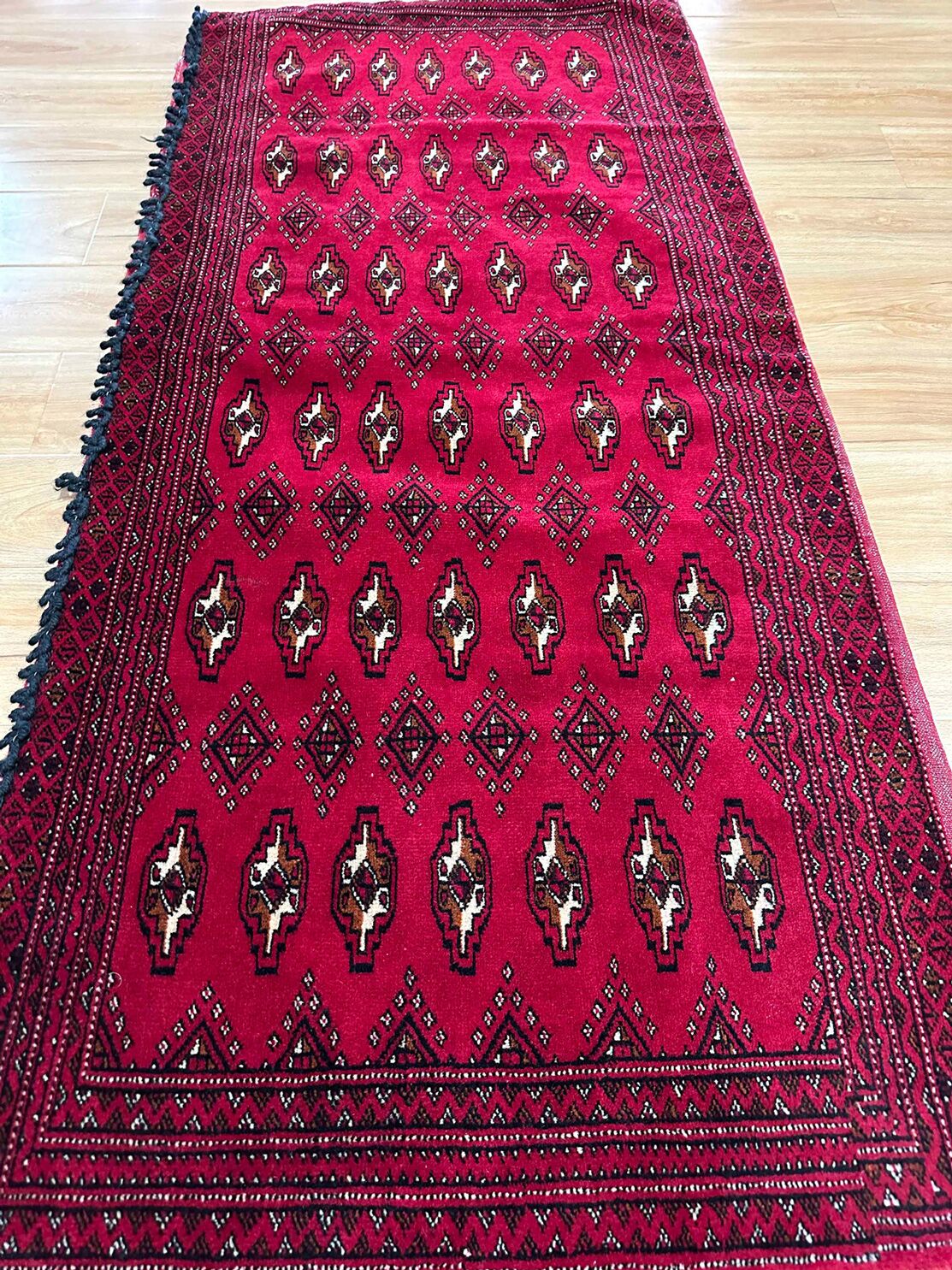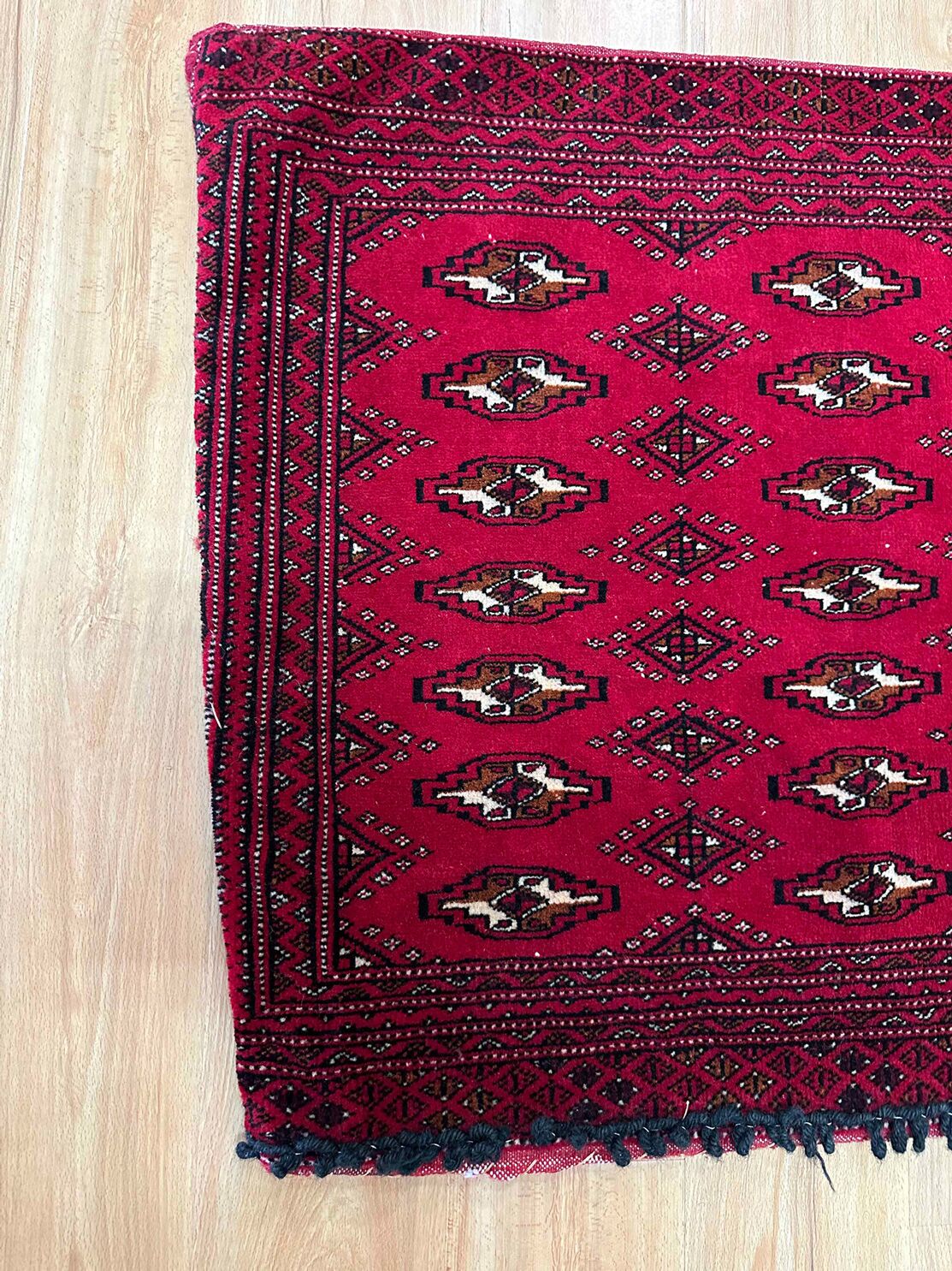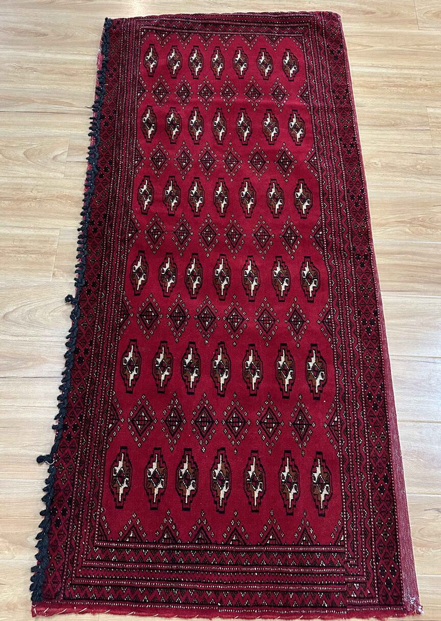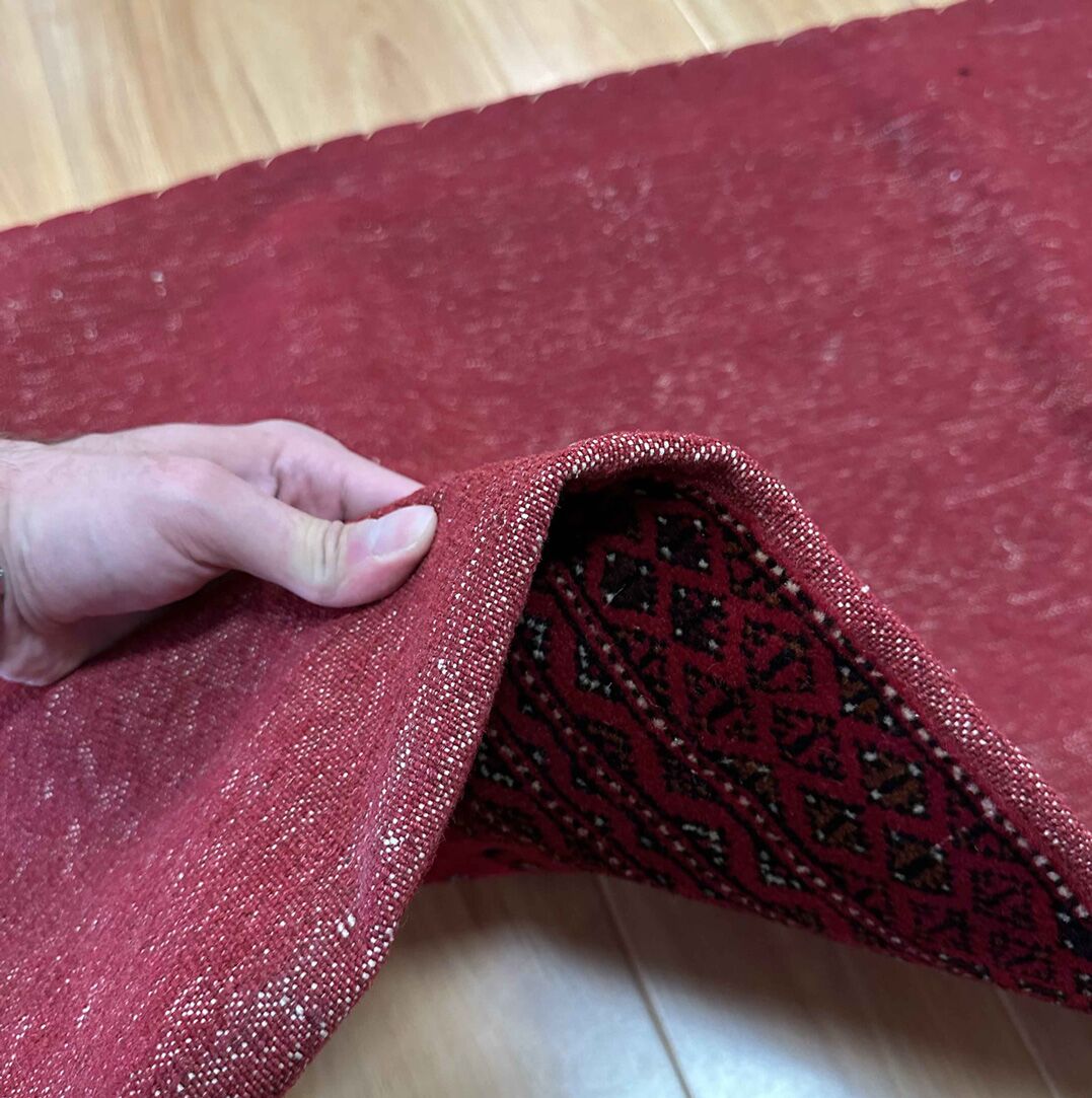• Handwoven Mastery: Originating from East Persia, these Poshti rugs were woven by nomadic weavers who poured their artistry into every knot, creating a design that carries the rich tradition of Turkoman tribes.