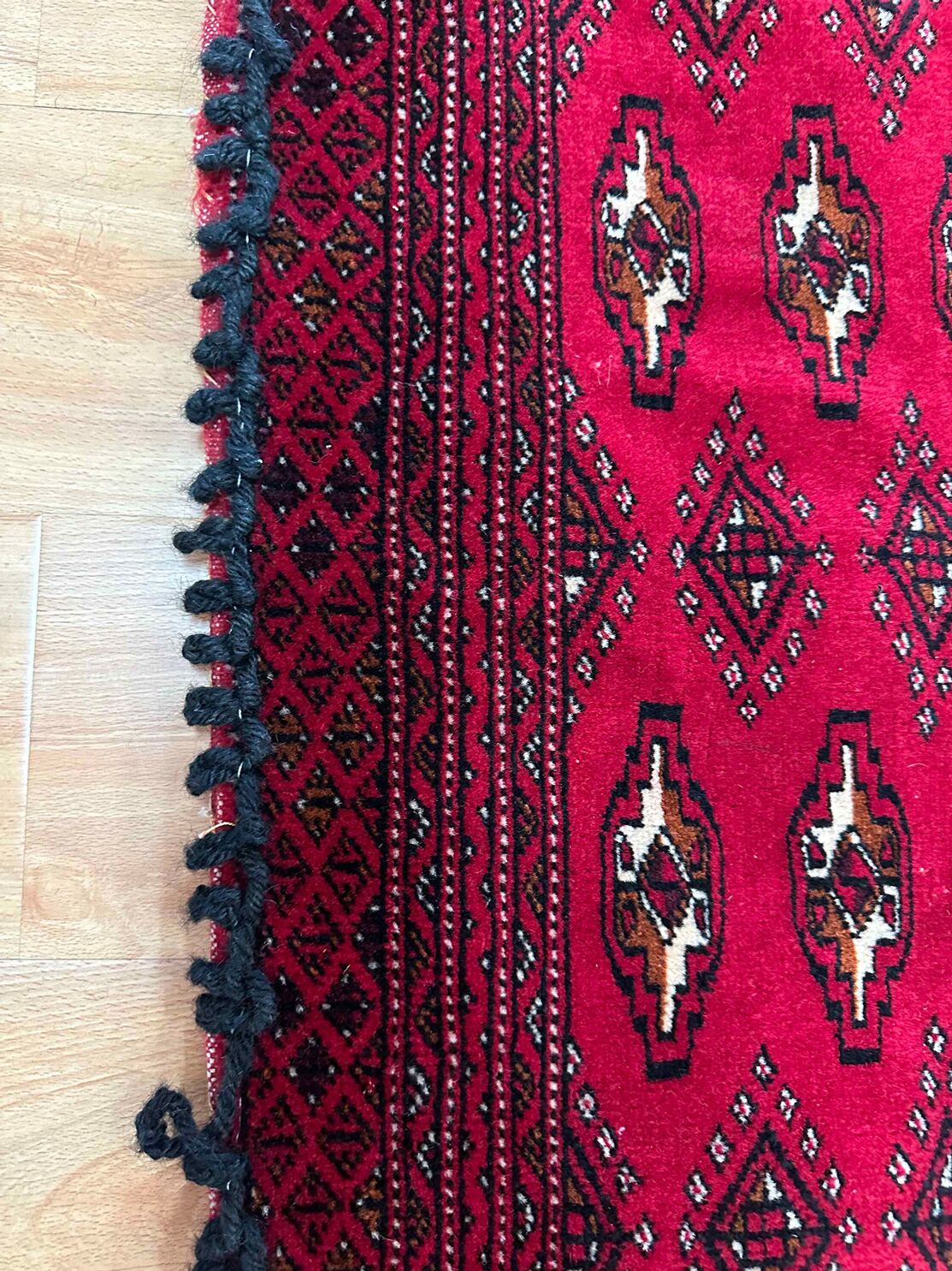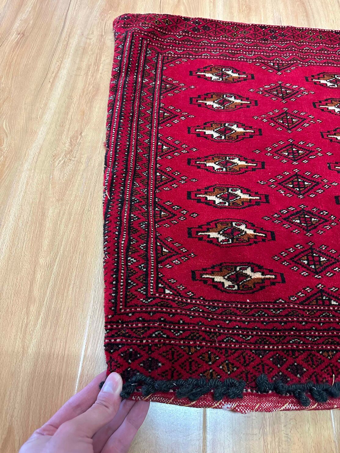 Note: One side of this rug is slightly uneven, which is a natural characteristic of handmade nomadic rugs and reflects the individual artistry of the weaver. This adds to its unique charm and is clearly visible in the photos.