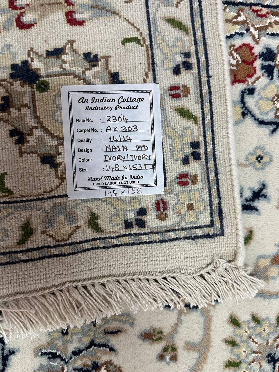 Certified Hand-Knotted Indian Wool & Silk Nain Design Rug Premium 14/14 Quality