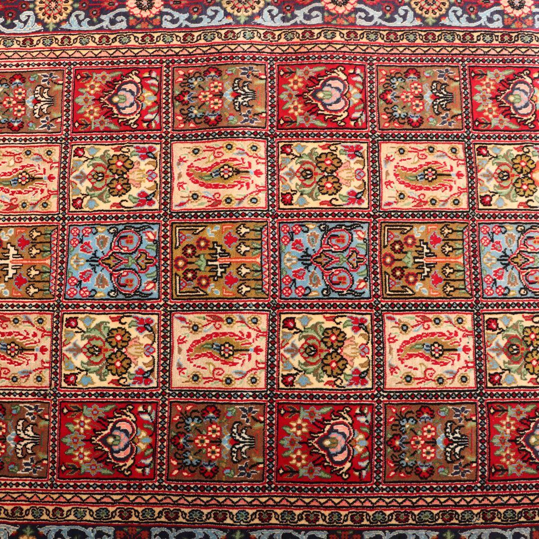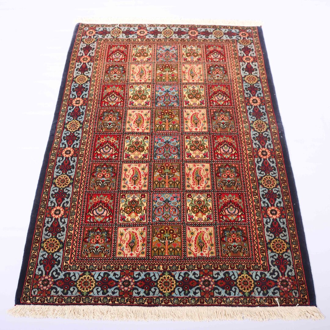 – Craftsmanship: A skilled weaver dedicated around 5 months to finish weaving this intricate Garden Design Qom Rug.