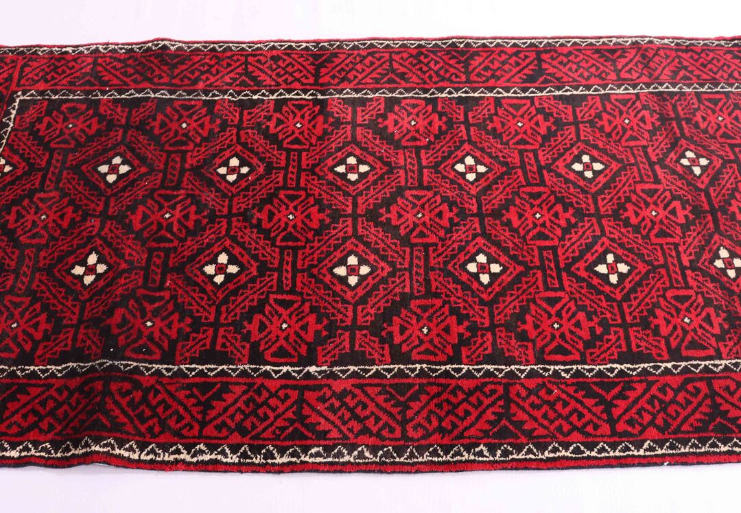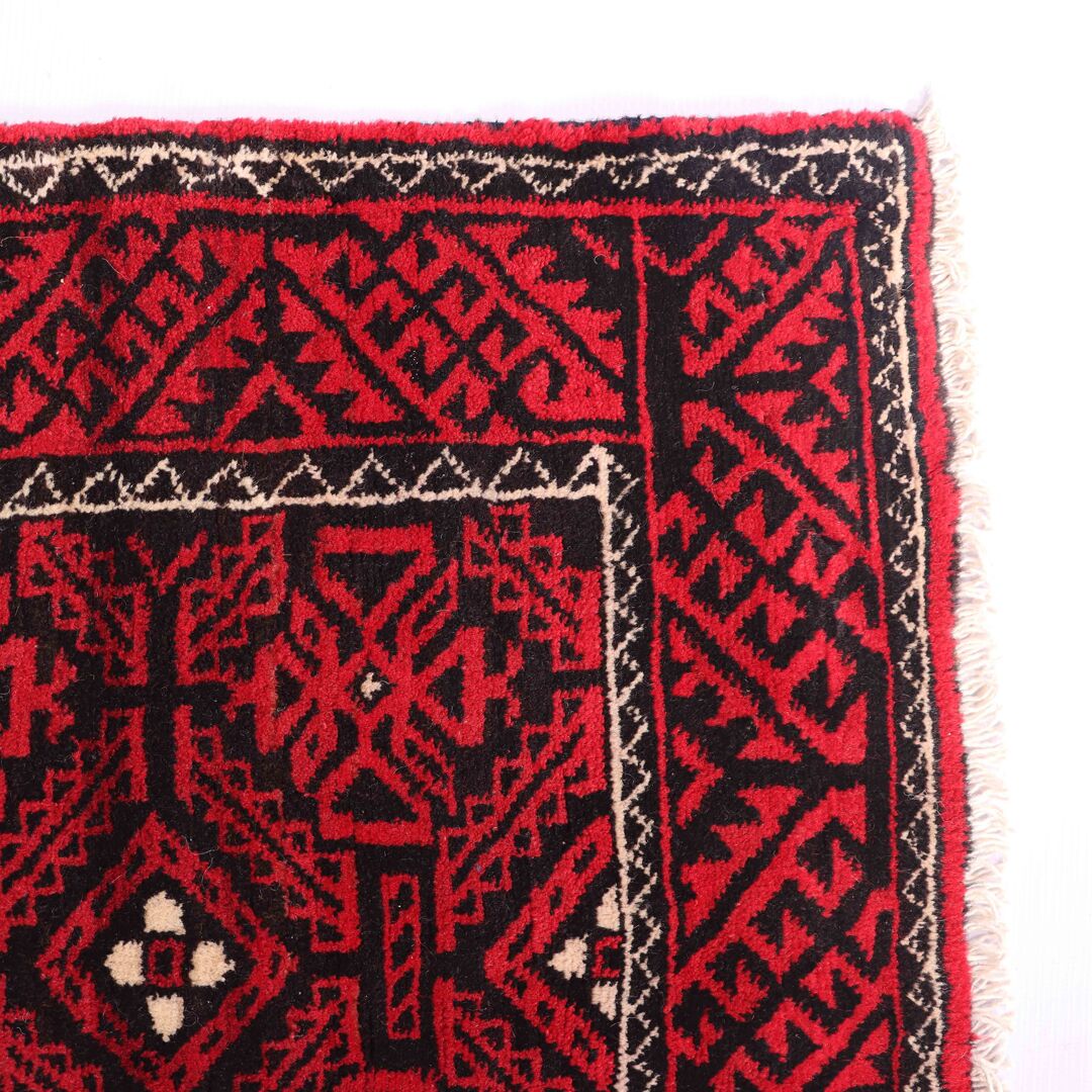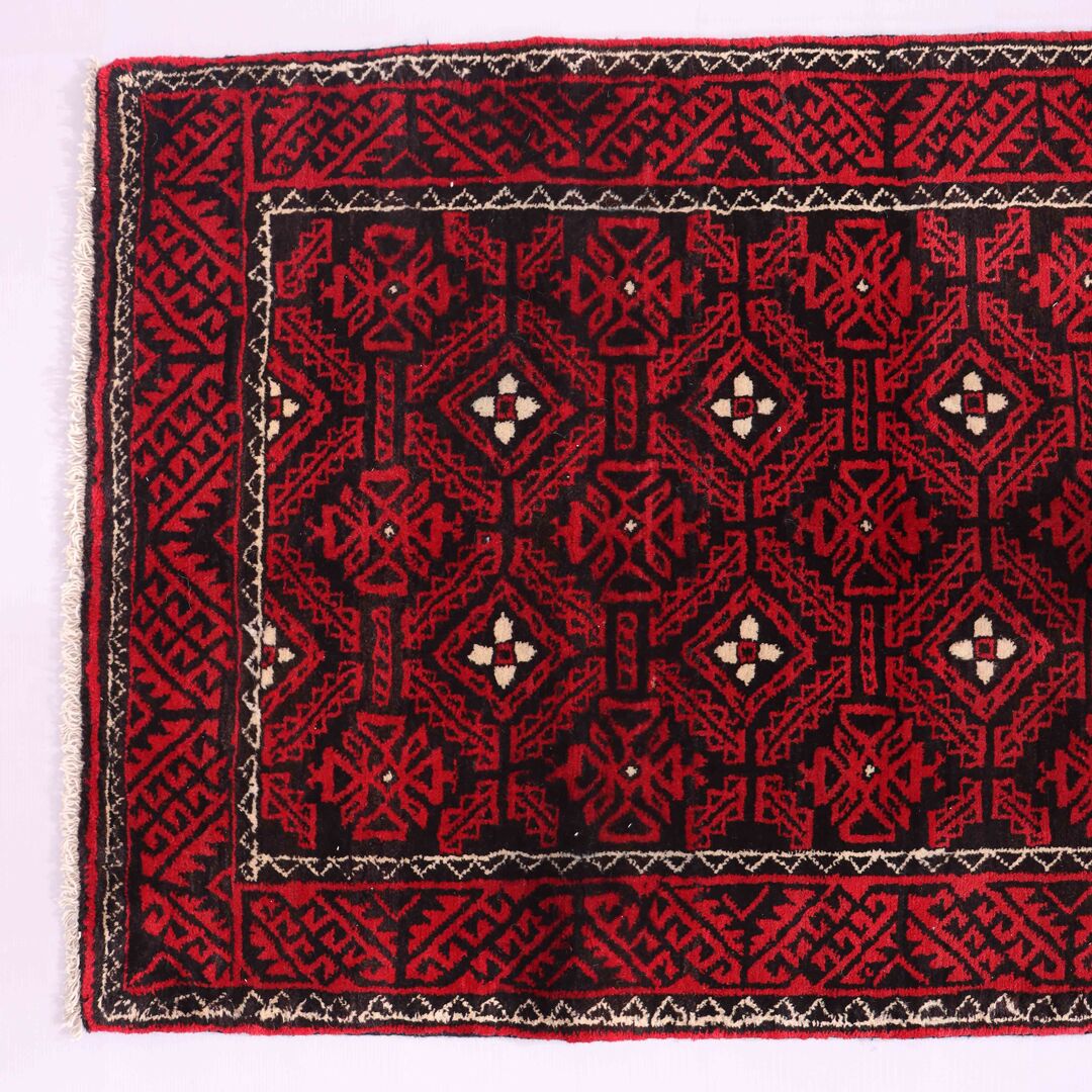– Origin: Handwoven in Iran by nomadic Balouchi weavers, this antique tribal Balouchi rug is a versatile piece that can be used as a wall hanging.