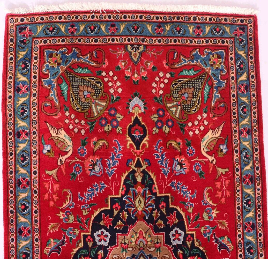 Coffee Table Size Authentic Persian Kashmar Rug, It Can Also Be Used As A Short Runner Or Bedroom Piece. It Has a Lamb’s Wool Pile On Cotton Base. Deep Maroon Tone Dyed Using Traditional Methods. Fine Quality Piece from City Of Kashmar.