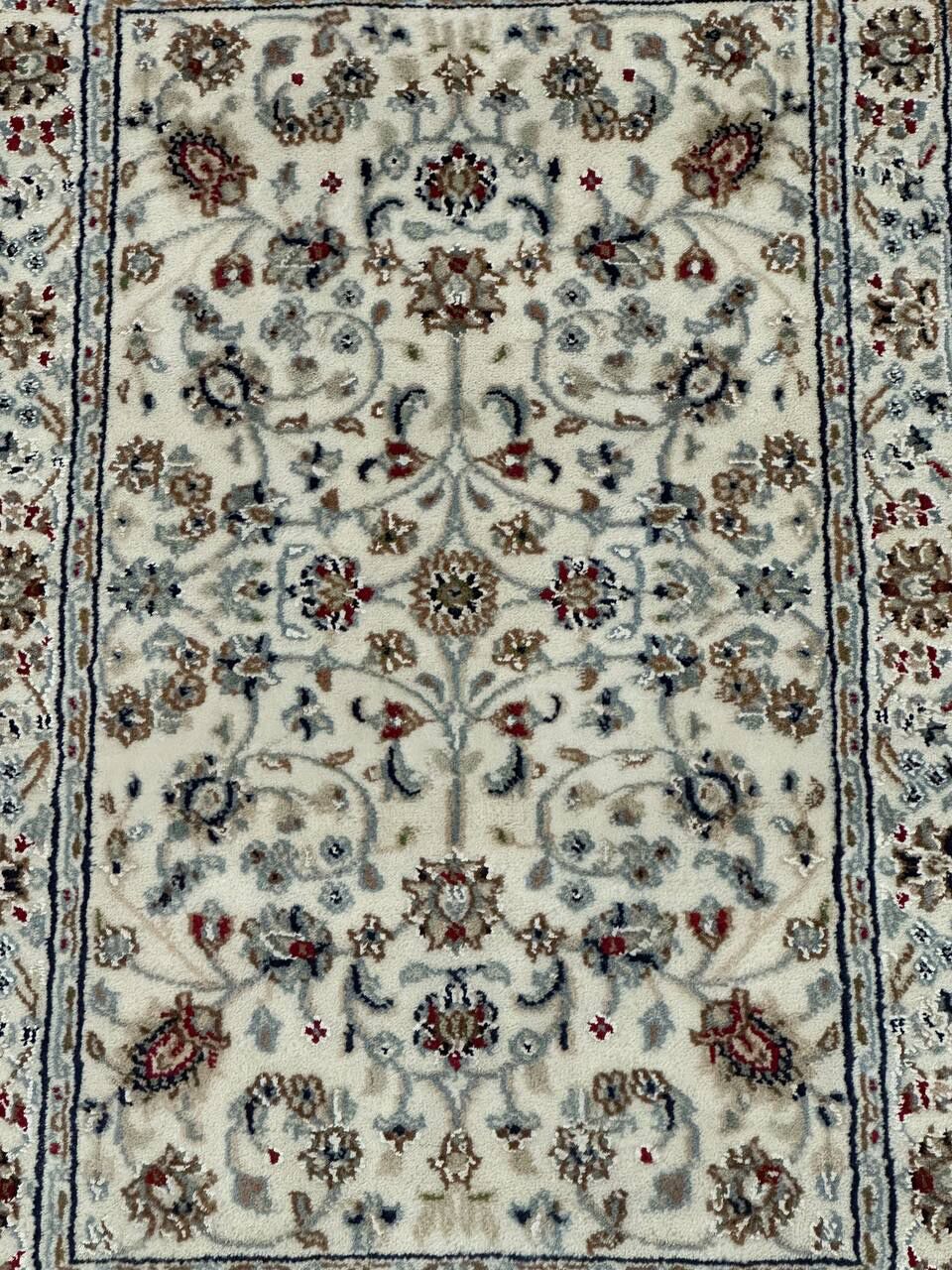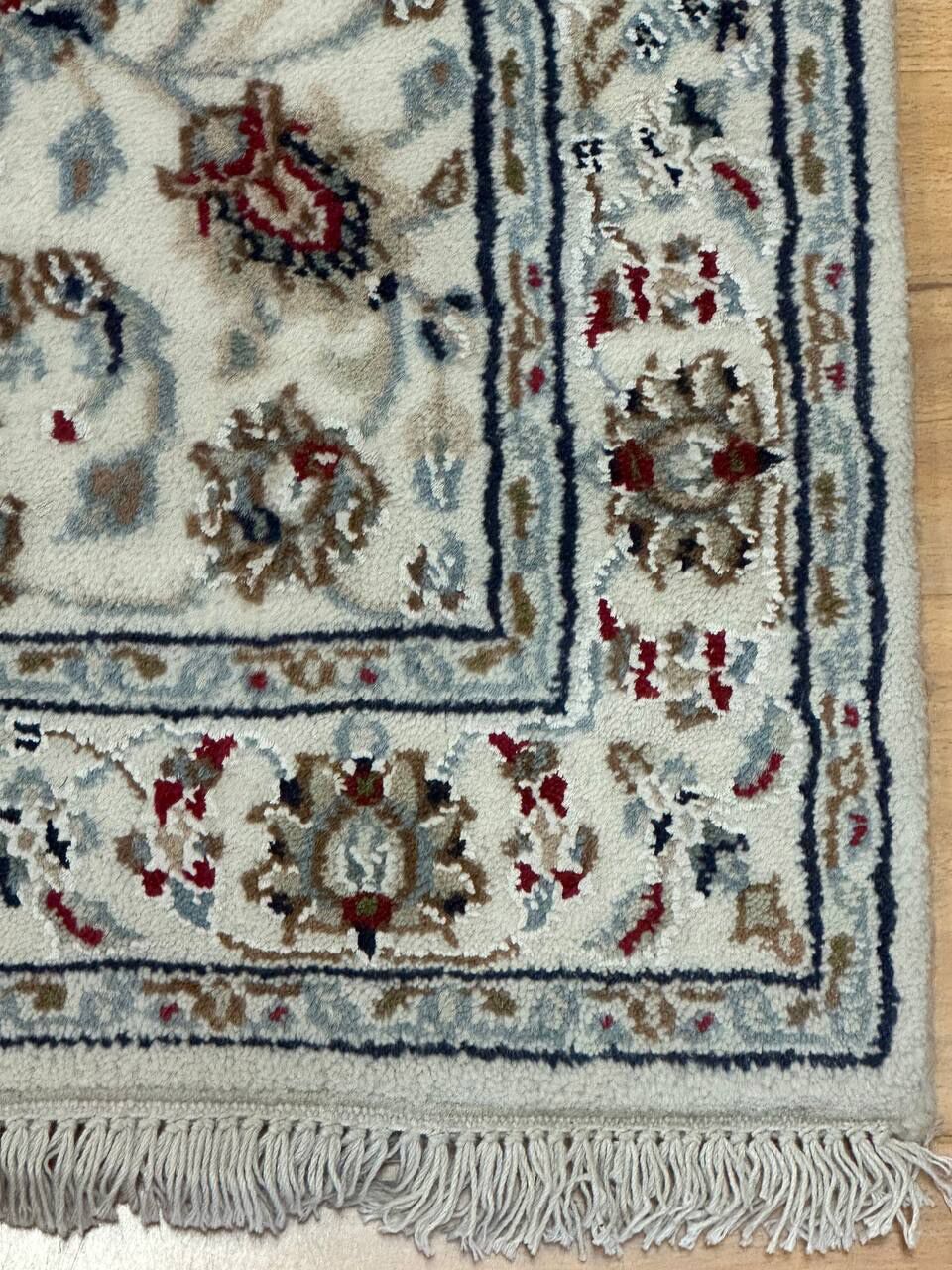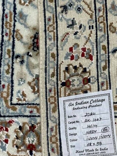 – Timeless Beauty: Add sophistication to your home with this brand-new, full-pile hand-knotted Indian rug, featuring a refined Nain design. Made from pure wool and silk-like blend on a cotton base, it showcases vibrant tones of Beige, creamy ivory, and light tones vegetable dyed using traditional methods.