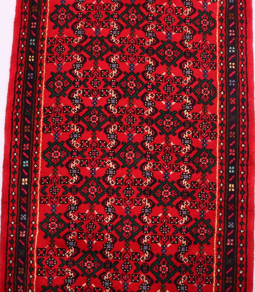 – Durable Elegance: Elevate your hallway with this Hosseinabad design handmade Persian Hamedan Runner, known for its hard-wearing and durable qualities. Pure hand-spun wool pile on a cotton base provides both comfort and longevity.