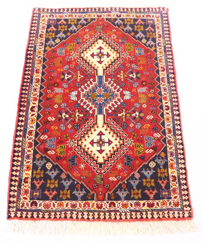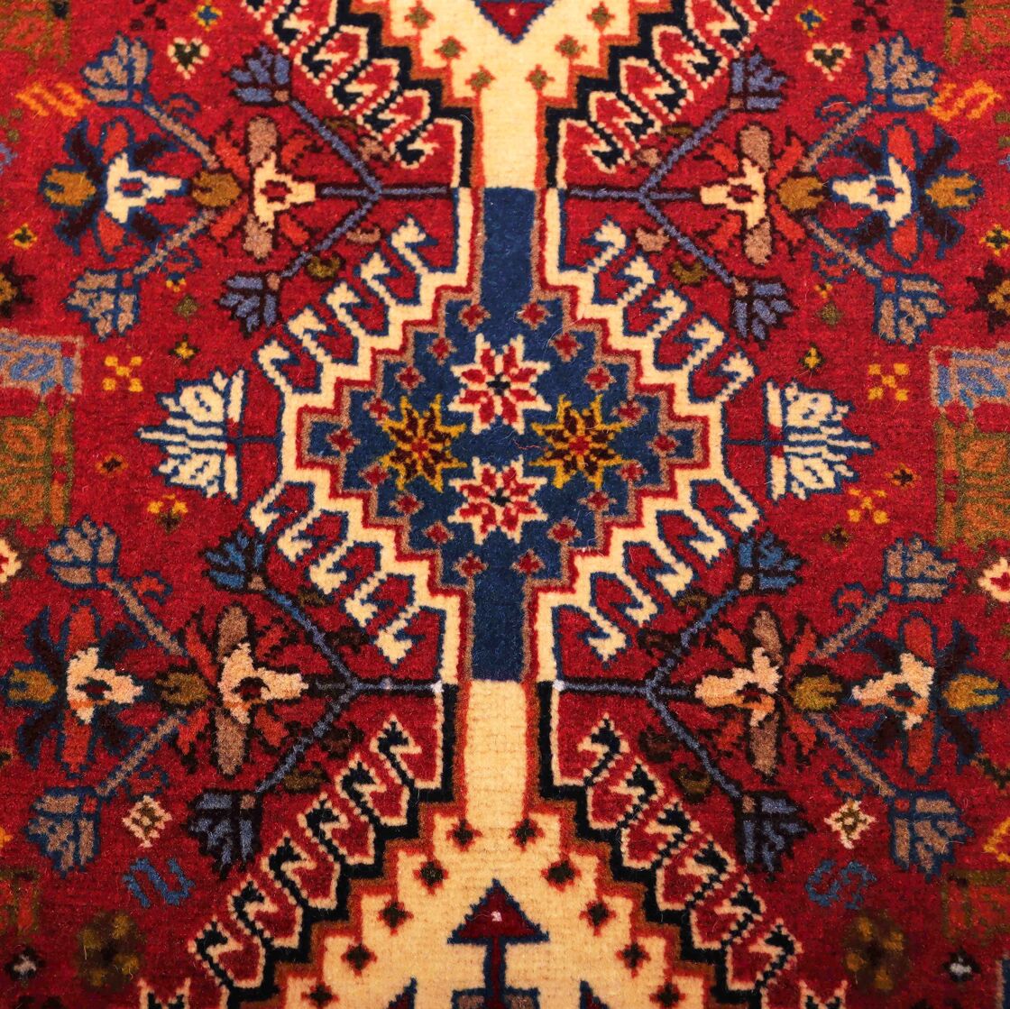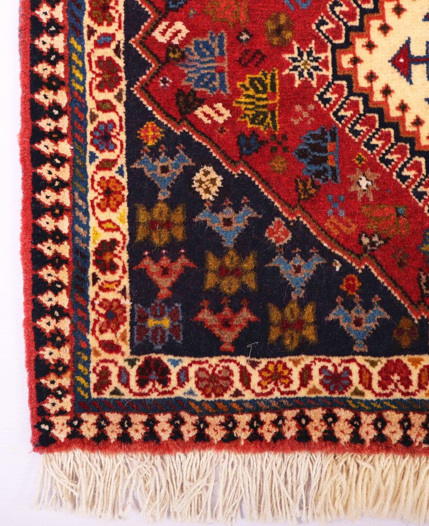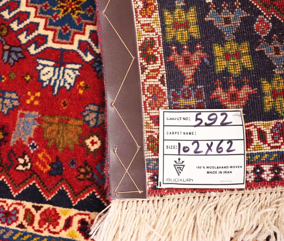 – Stunning Yalameh Rug: Elevate your space with this hand-knotted Yalameh rug, a rare find in this size, showcasing exquisite craftsmanship and vibrant colors.