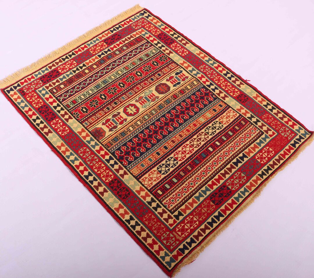 – Crafted by Nomadic Weaver: Handwoven in Central East Persia by a nomadic weaver, this rug reflects the rich heritage of Persian kilim making.