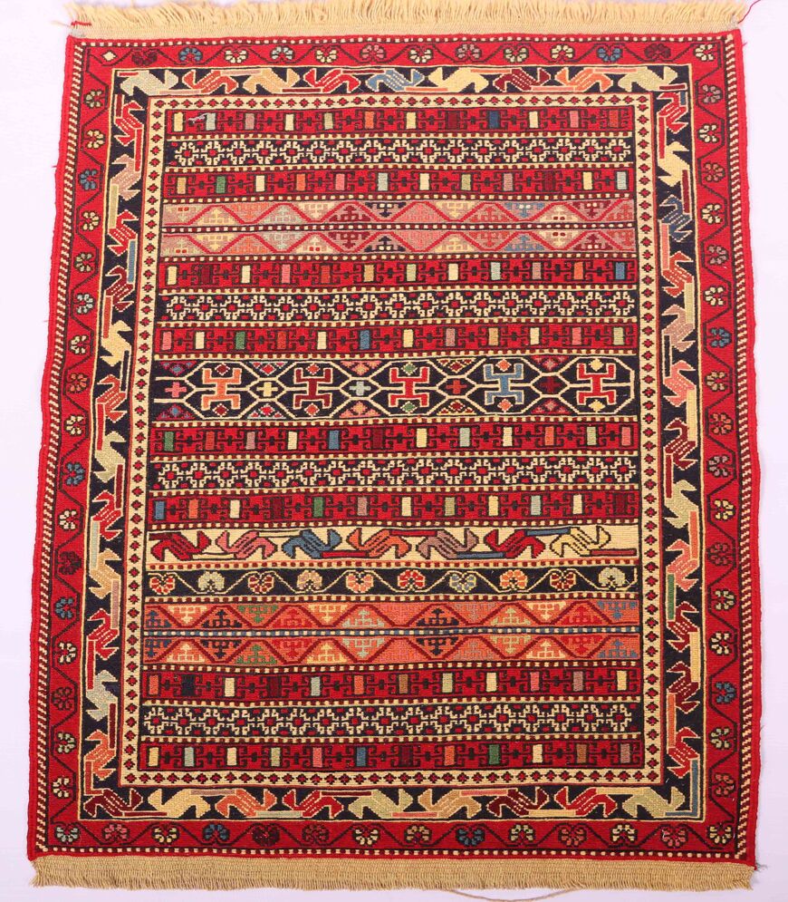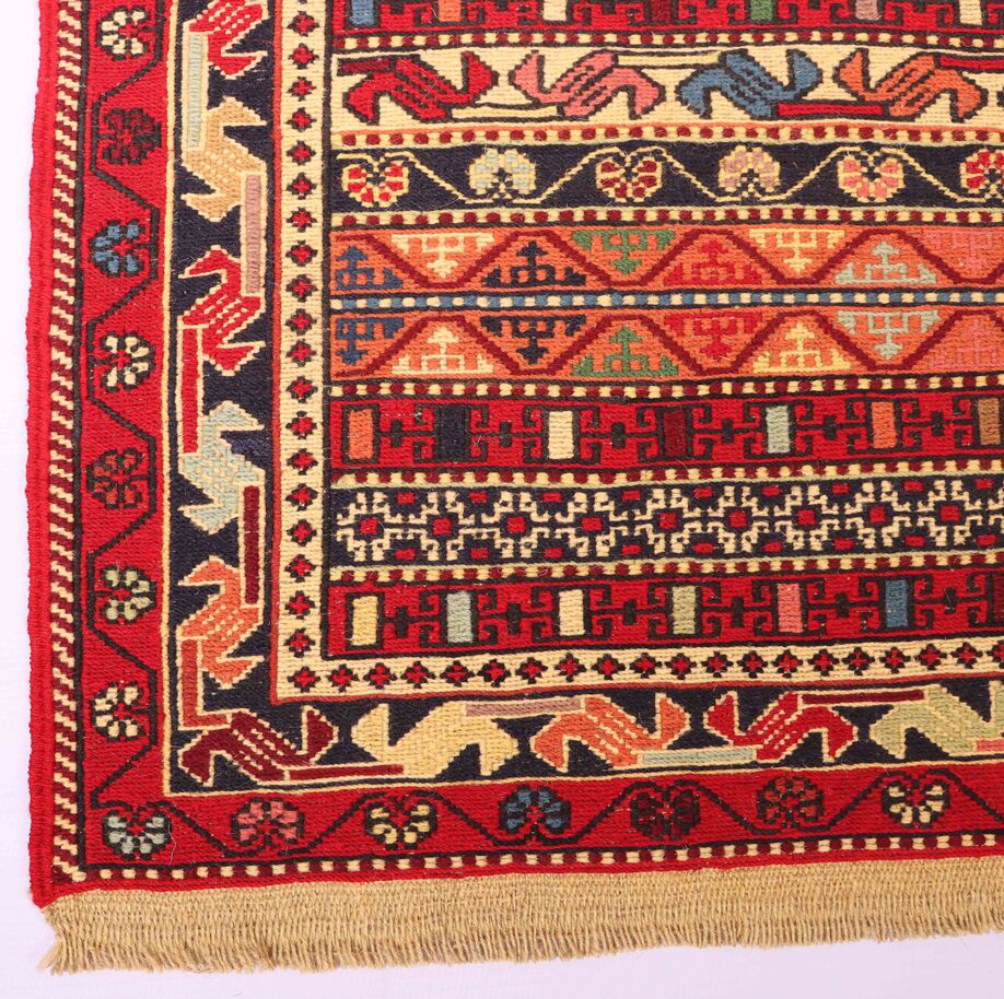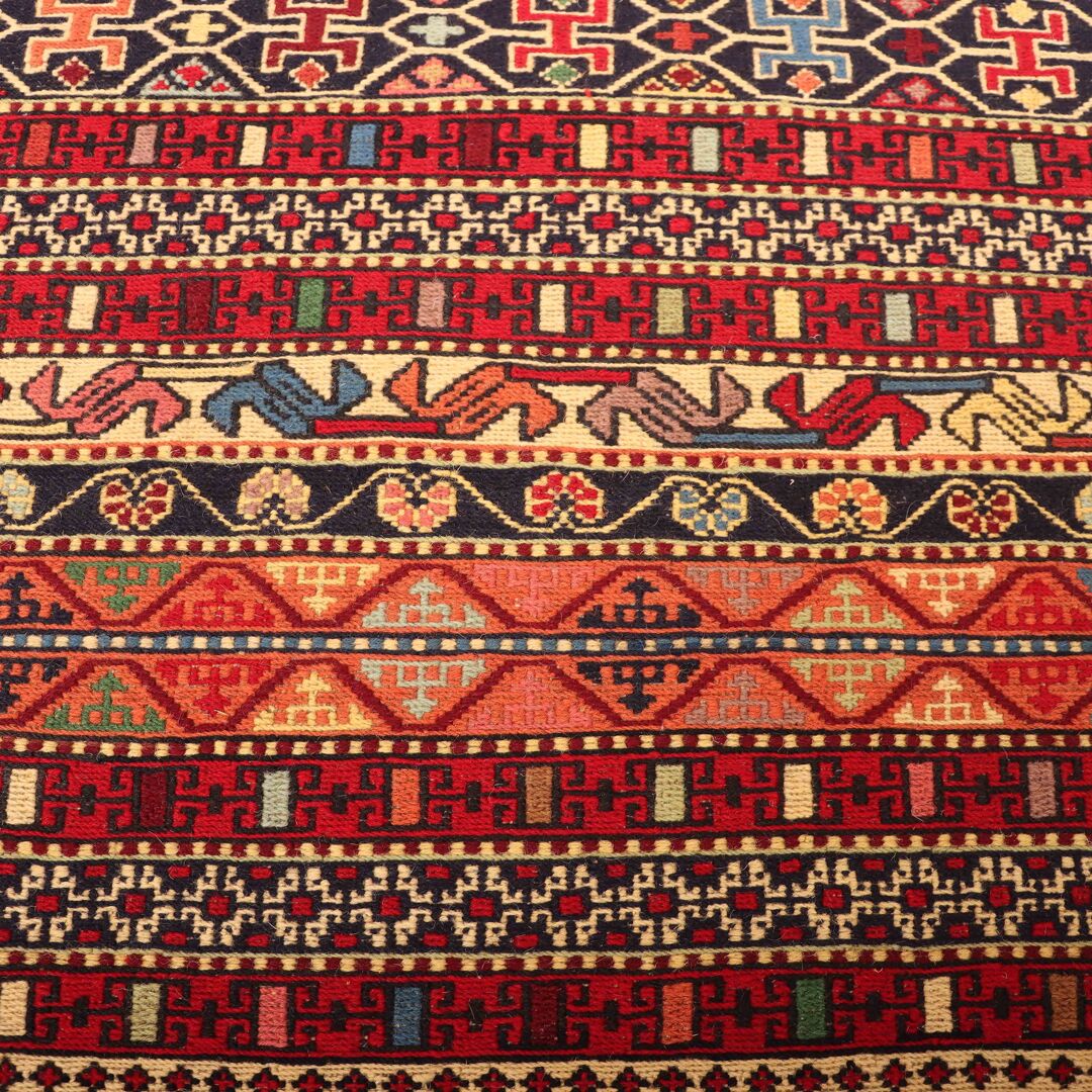 Persian Ardebil Sumak Kilim Rug. Three Weaving Technique Used To Make This Stunning Piece Of Art. It also Has A Pure Hand Spun Wool Pile On Wool Base.