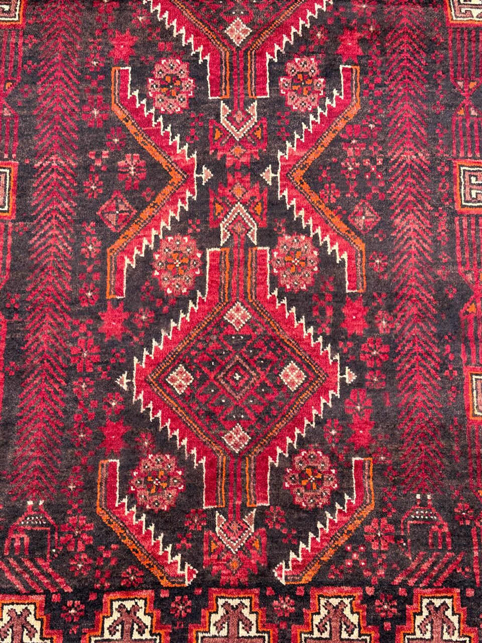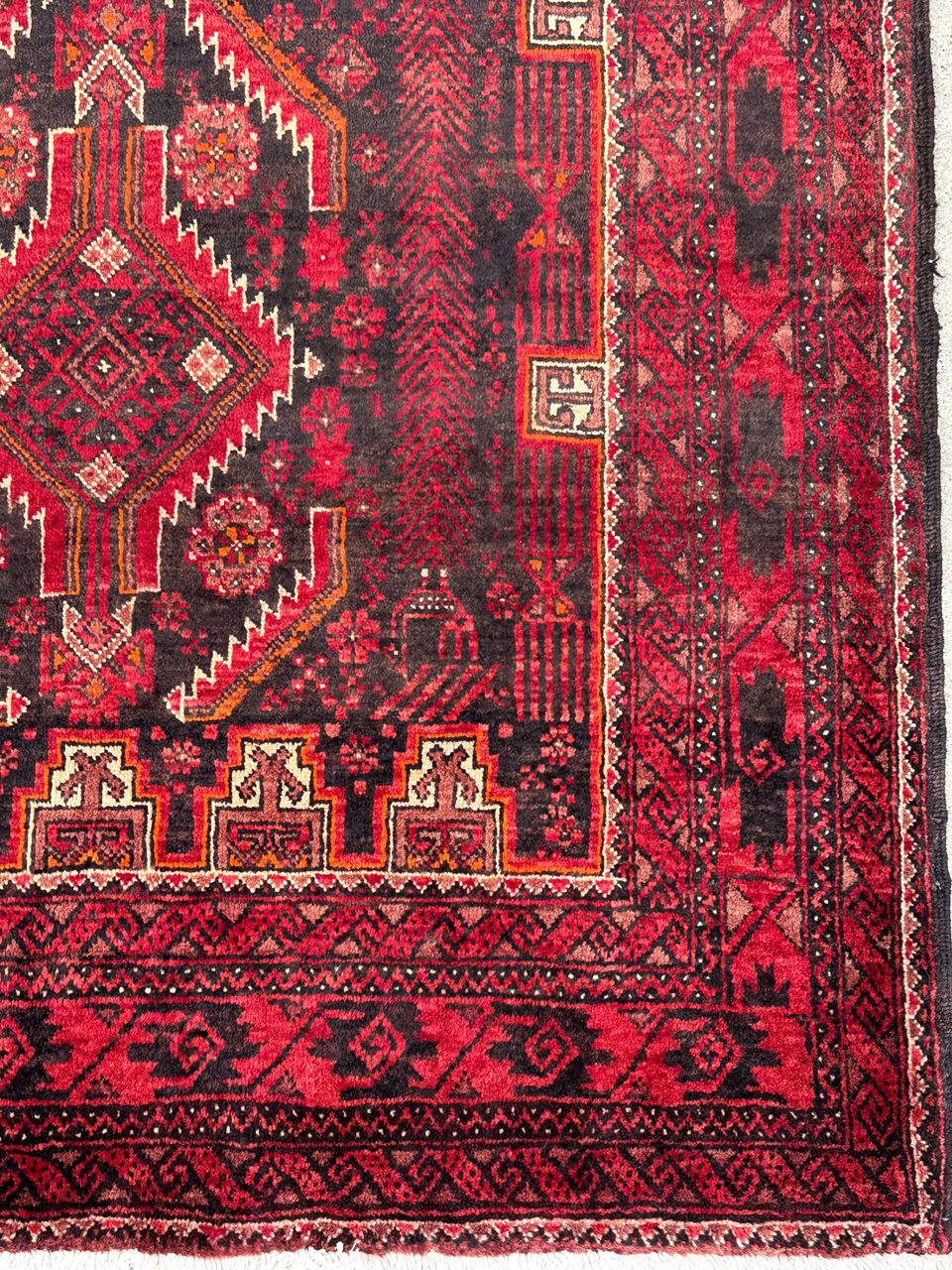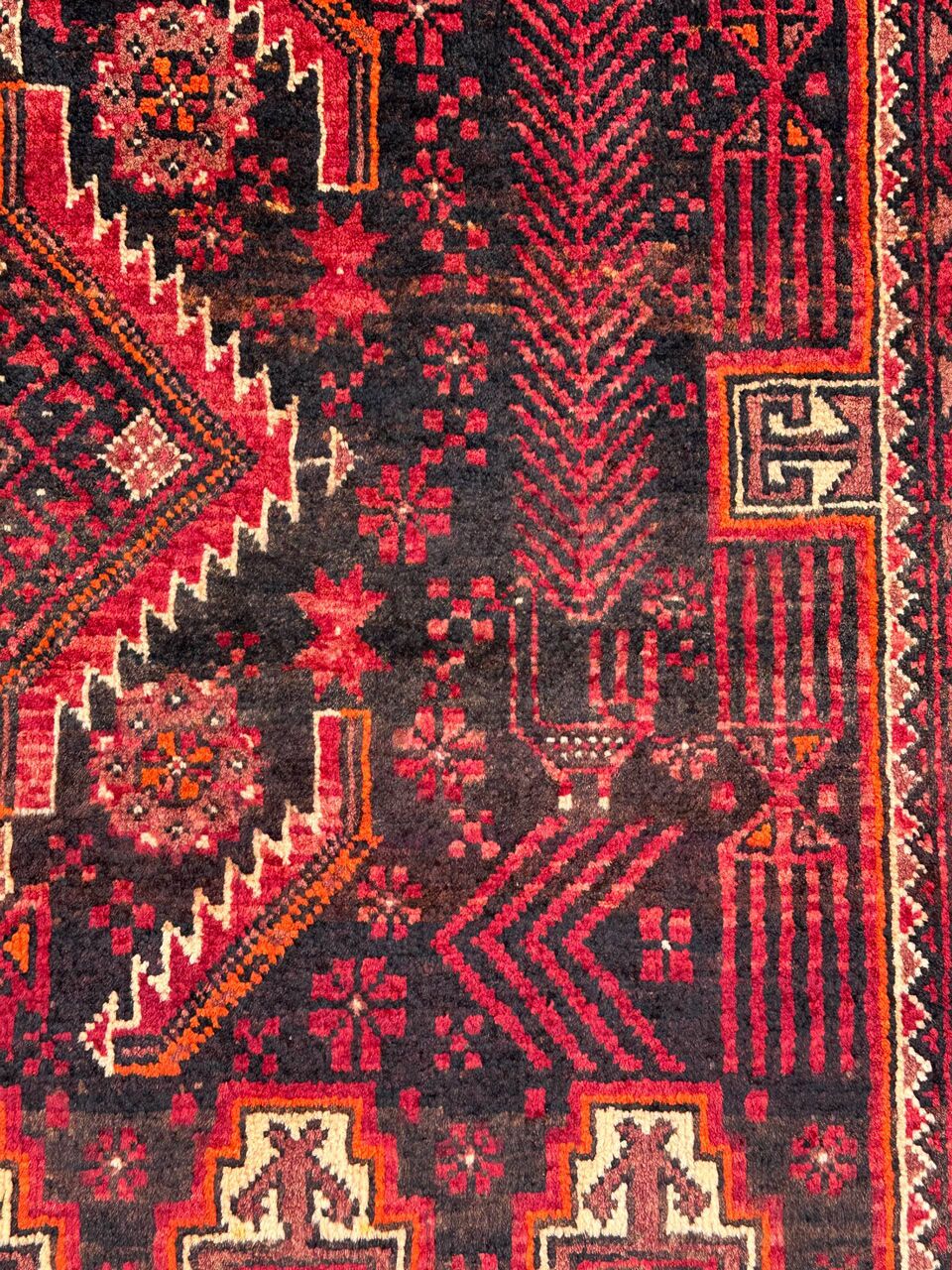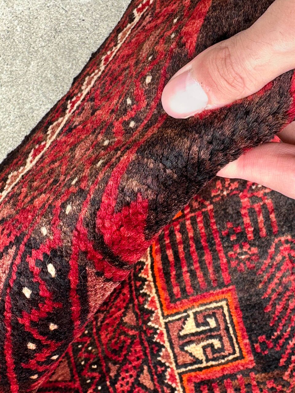 – Origin: Handwoven in Iran by nomadic Balouchi weavers, this antique tribal Balouchi rug is a versatile piece that can be used as a wall hanging.