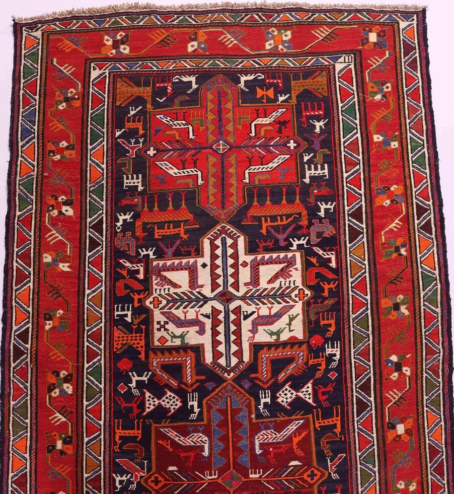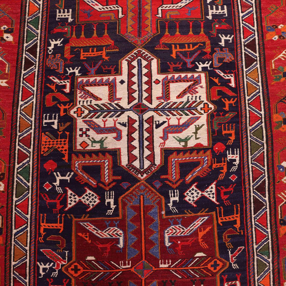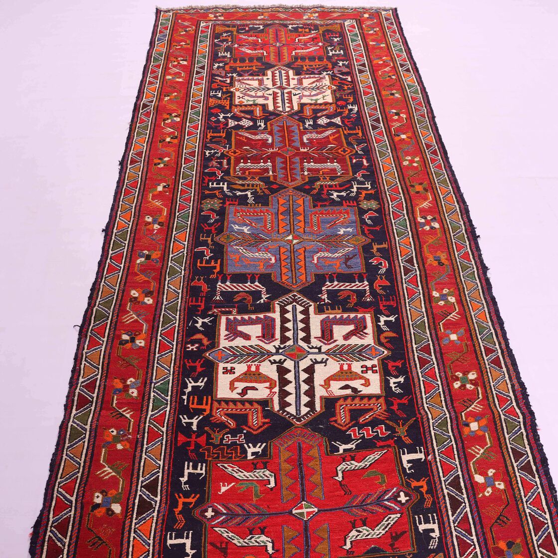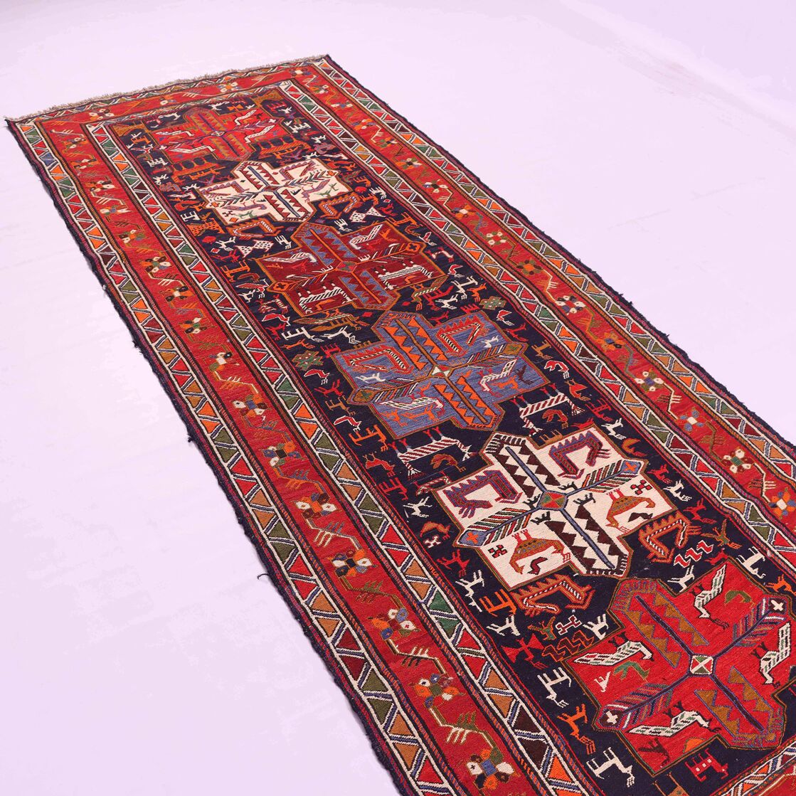 Persian Ardebil Sumak Kilim Runner. Three Weaving Technique Used To Make This Stunning Piece Of Art. It also Has A Pure Hand Spun Wool Pile On Wool Base.