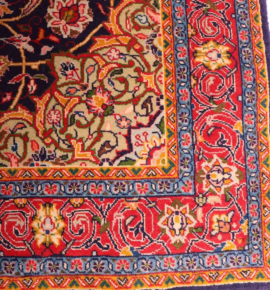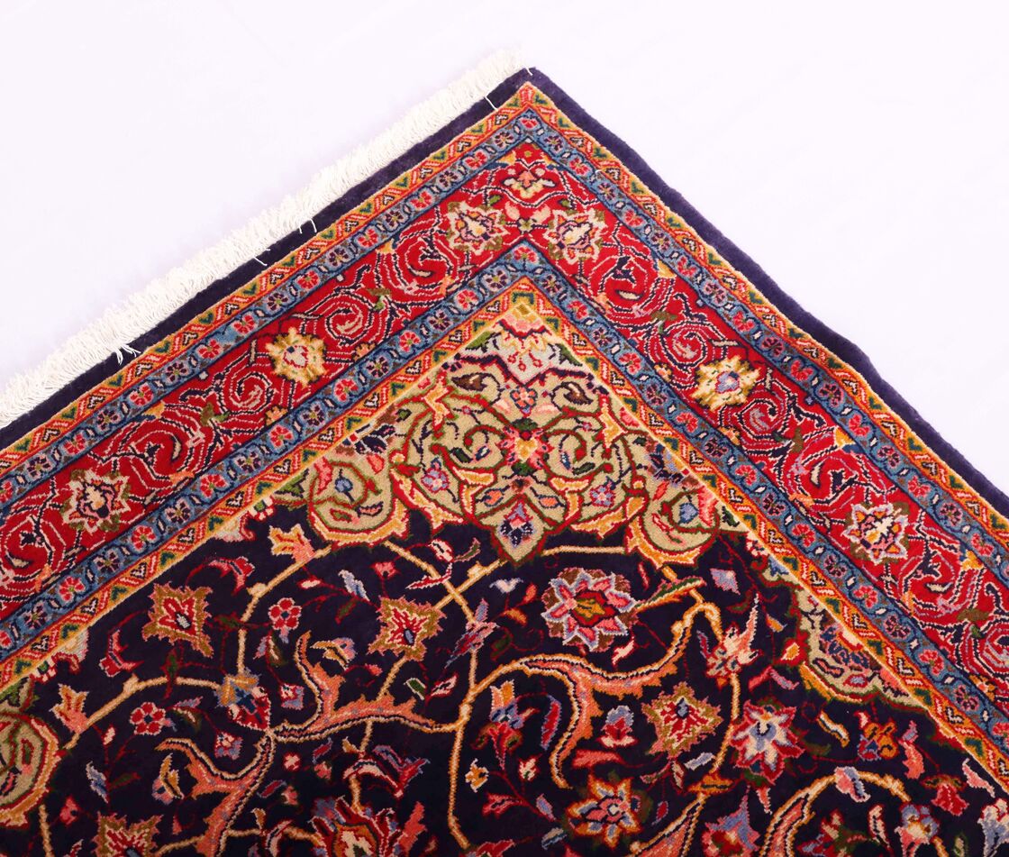 – Origin: This authentic Persian Sarough rug features an intricate arabesque design, showcasing the rich cultural heritage of Central Persia, specifically the Sarough region. Crafted with pure lamb’s wool pile on a cotton base, this rug is a fine quality piece with a beige background dyed using traditional methods.