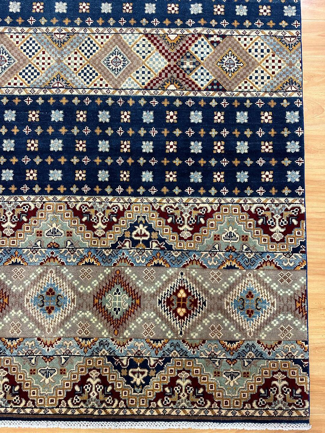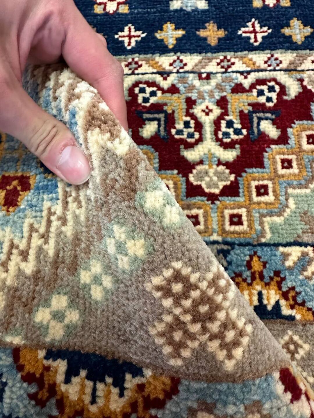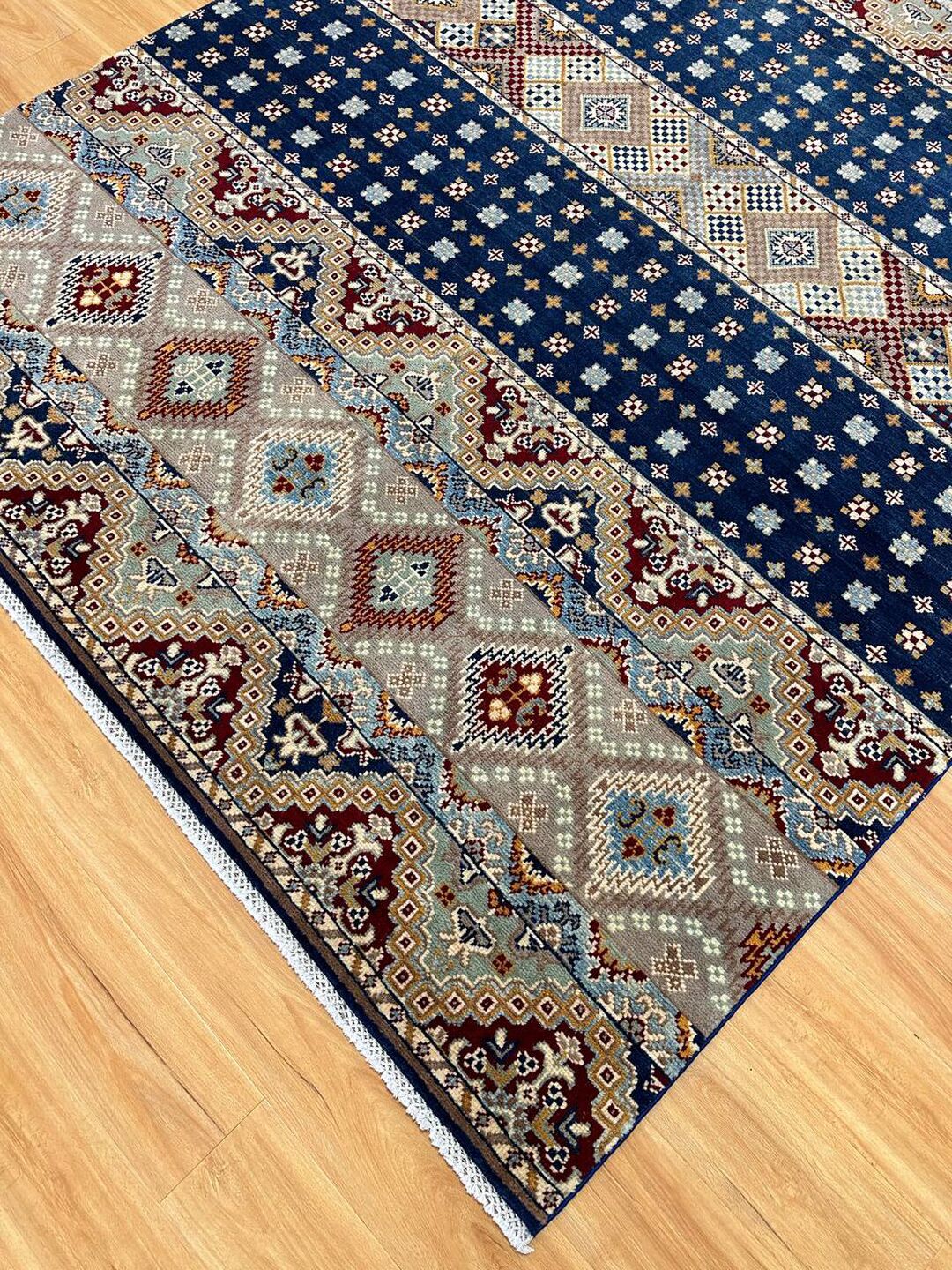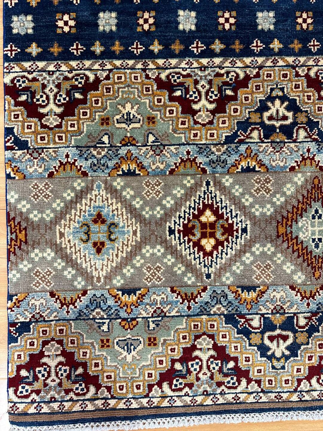 • Material: Crafted with pure hand-spun Ghazni wool pile on a durable cotton base.