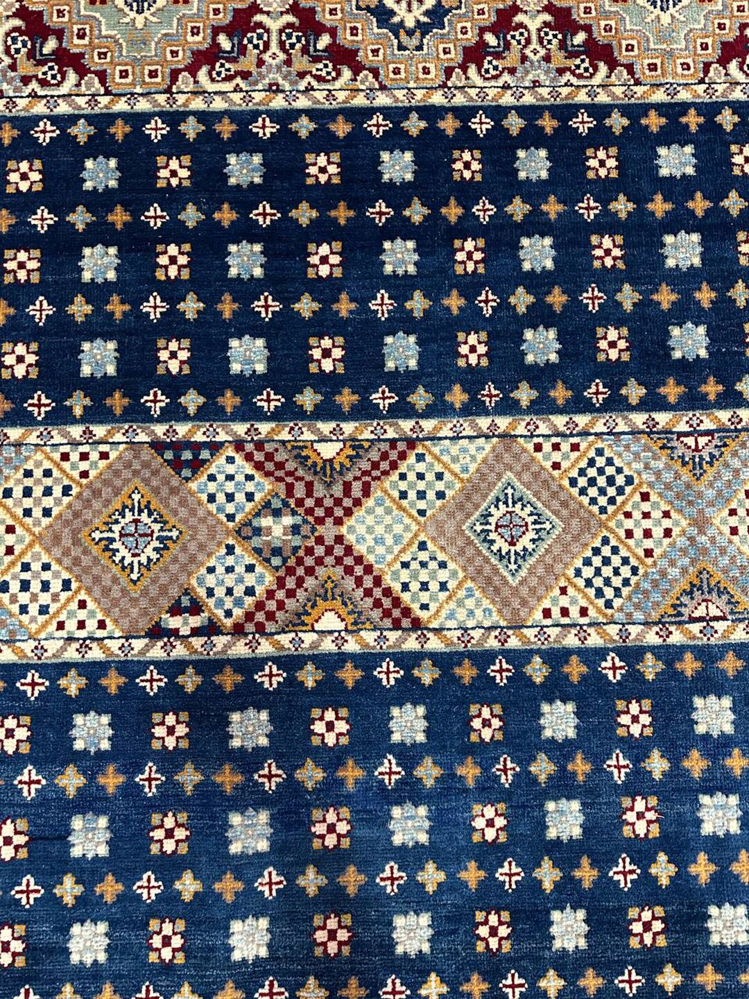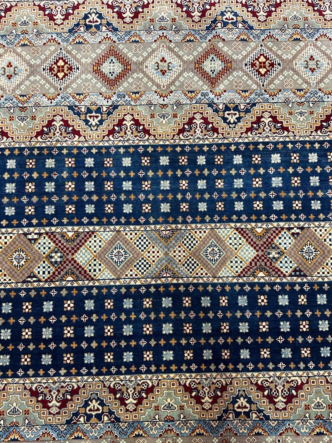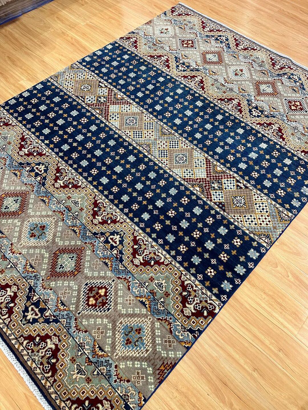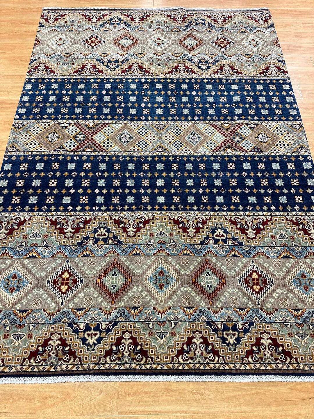 • Material: Crafted with pure hand-spun Ghazni wool pile on a durable cotton base.