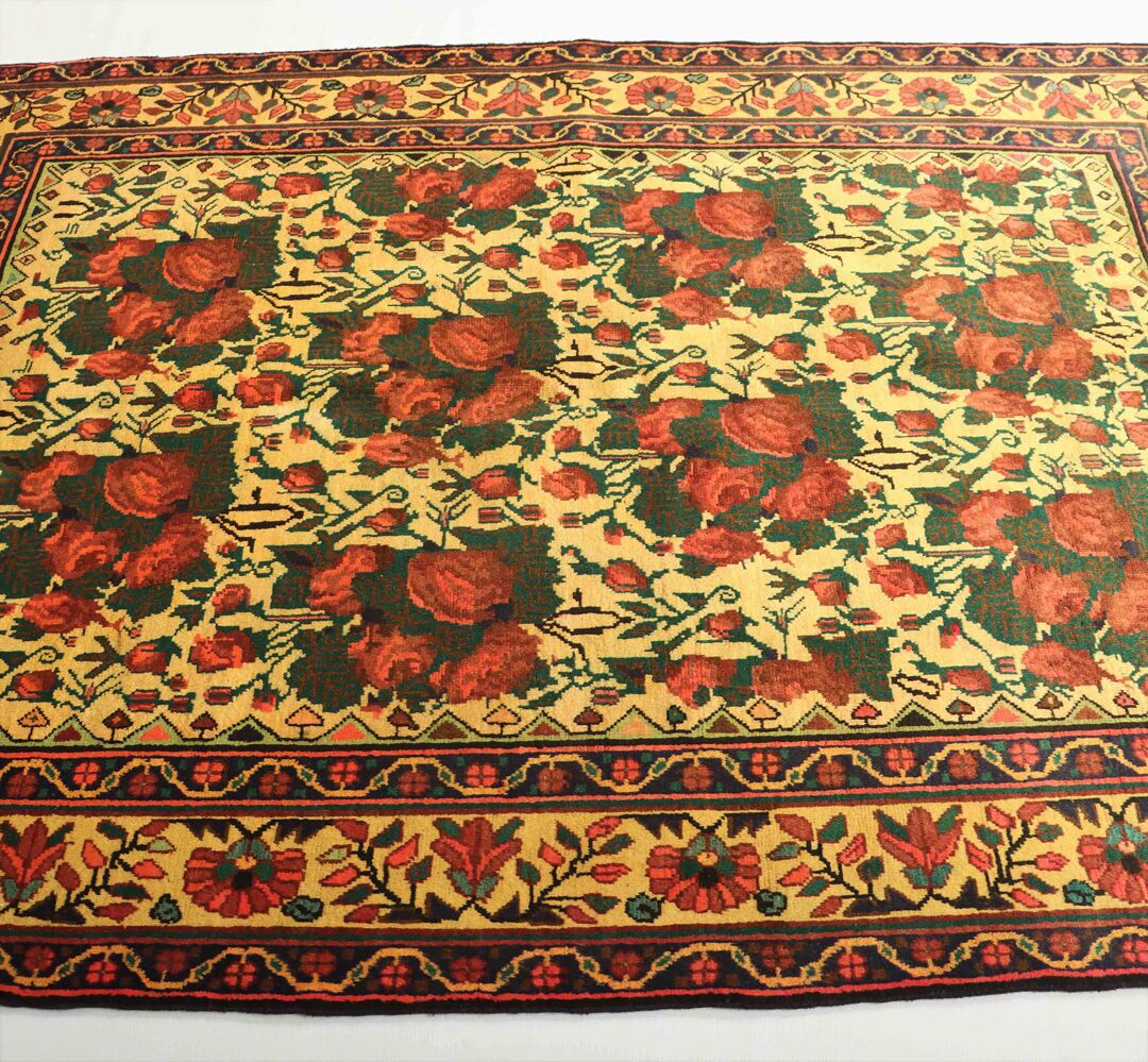 A snapshot of history, this full-pile “Gol Farang” Afshar rug from the early 20th century merges Western and Eastern culture. It features Western motifs, stylized roses, on an unmistakable Afshar field and border. This unique rug captures a period when Western demand influenced rug production in a distinct way. The lovely and unique square shape adds to its allure.