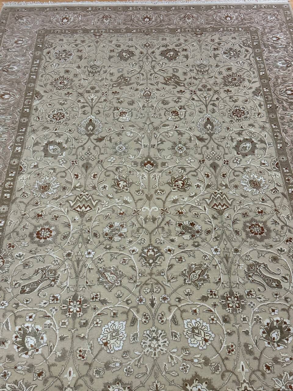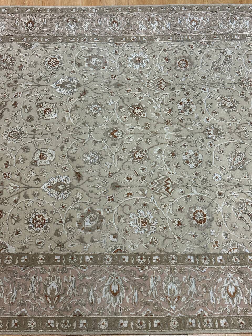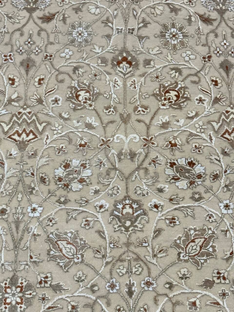 Certified Hand-Knotted Embossed Indian Wool & Silk Nain Design Rug Premium 14/14 Quality