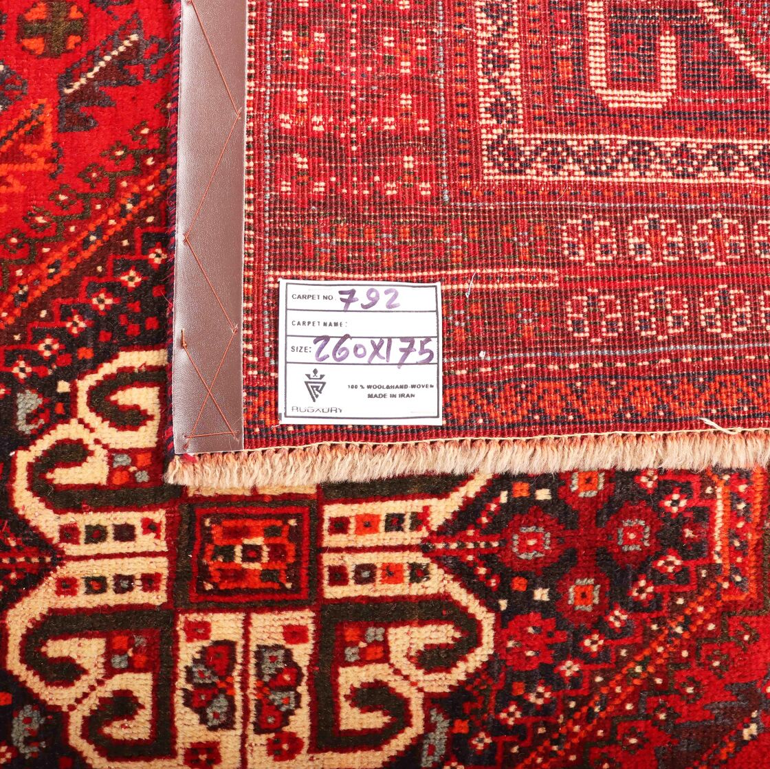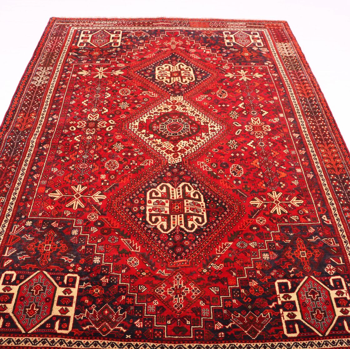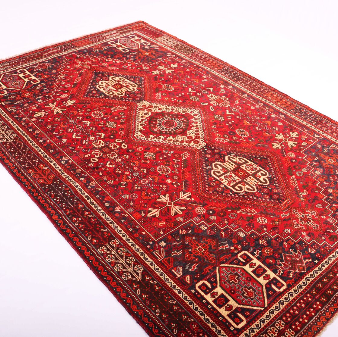 – Timeless Elegance: Immerse your space in the timeless elegance of this certified hand-knotted Persian Qashghai Shiraz rug. A wide, heavy-quality piece with a dense pile that promises durability for generations. The rug features pure hand-spun wool pile on a wool base, showcasing a deep red tone dyed using traditional methods.