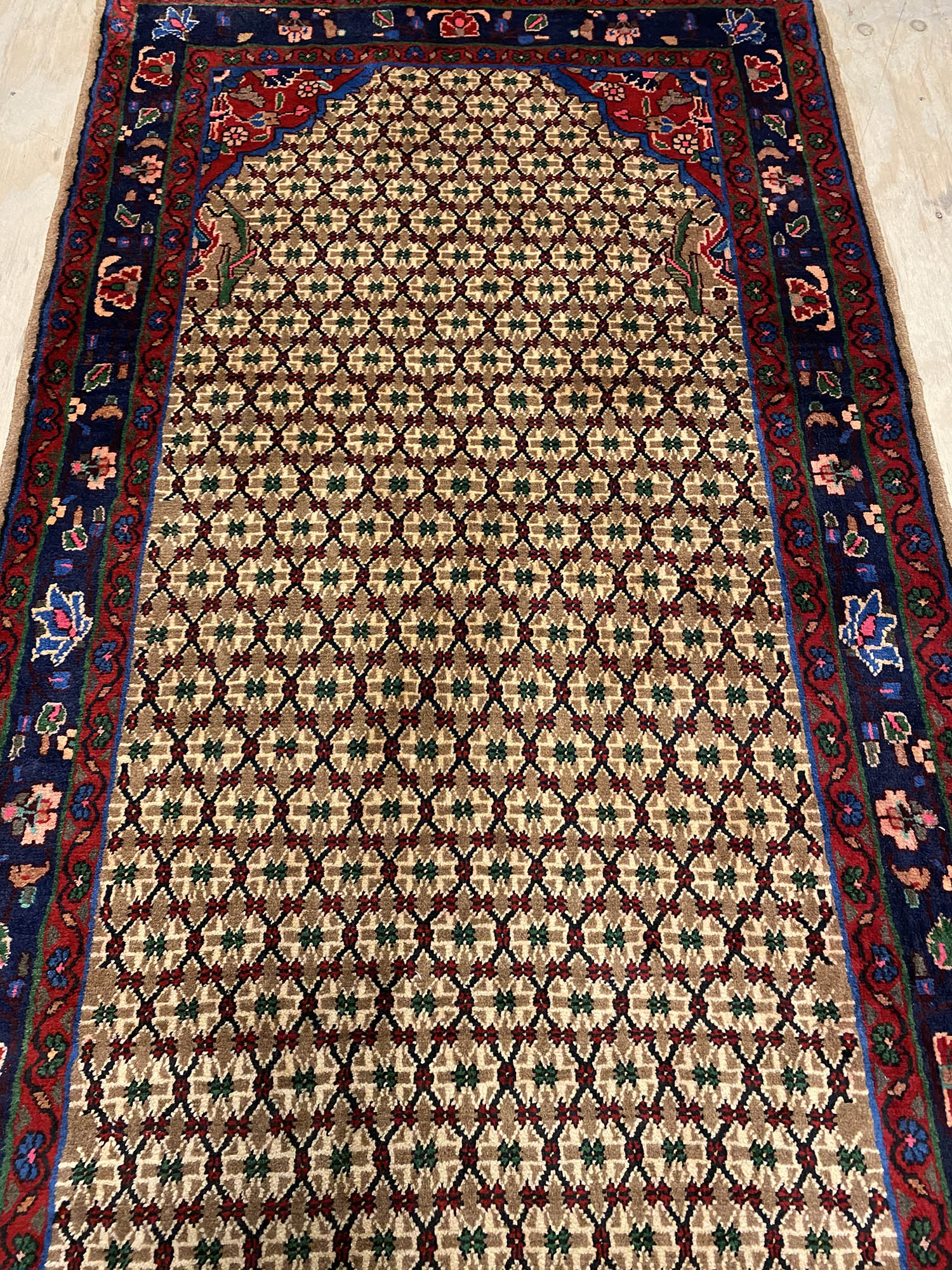 – Origin: This rare hand-knotted Kurdish Songhor Koliai runner is a unique piece that reflects the rich tradition of Kurdish craftsmanship. Crafted with pure hand-spun wool pile on a cotton base, it is a testament to the artistry from the Kurdish region.