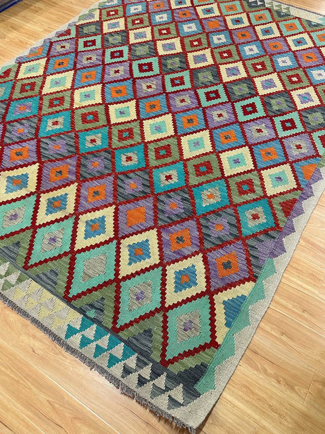 Certified Handmade Afghan Maymana Kilim Rug 282×207 cm