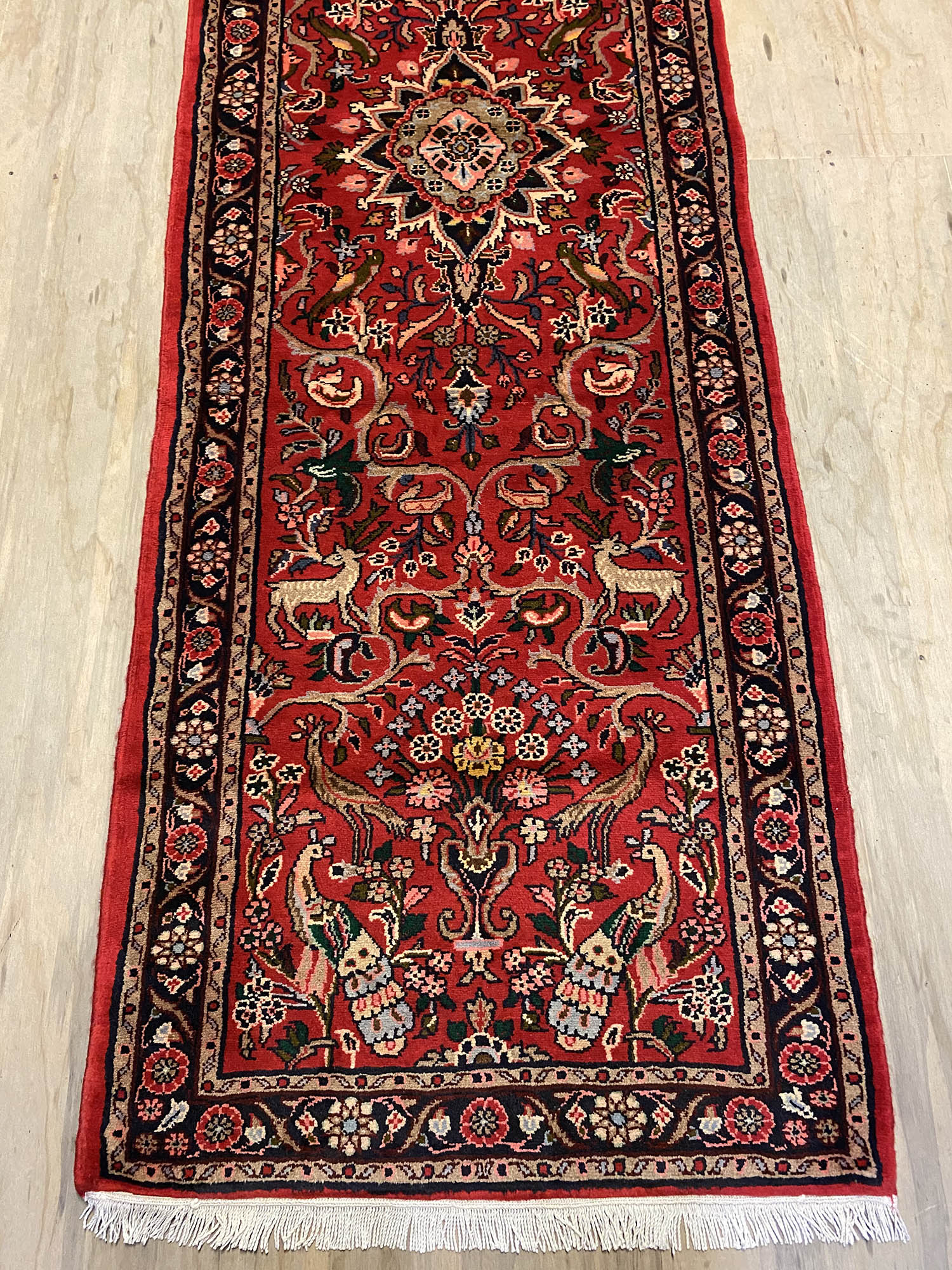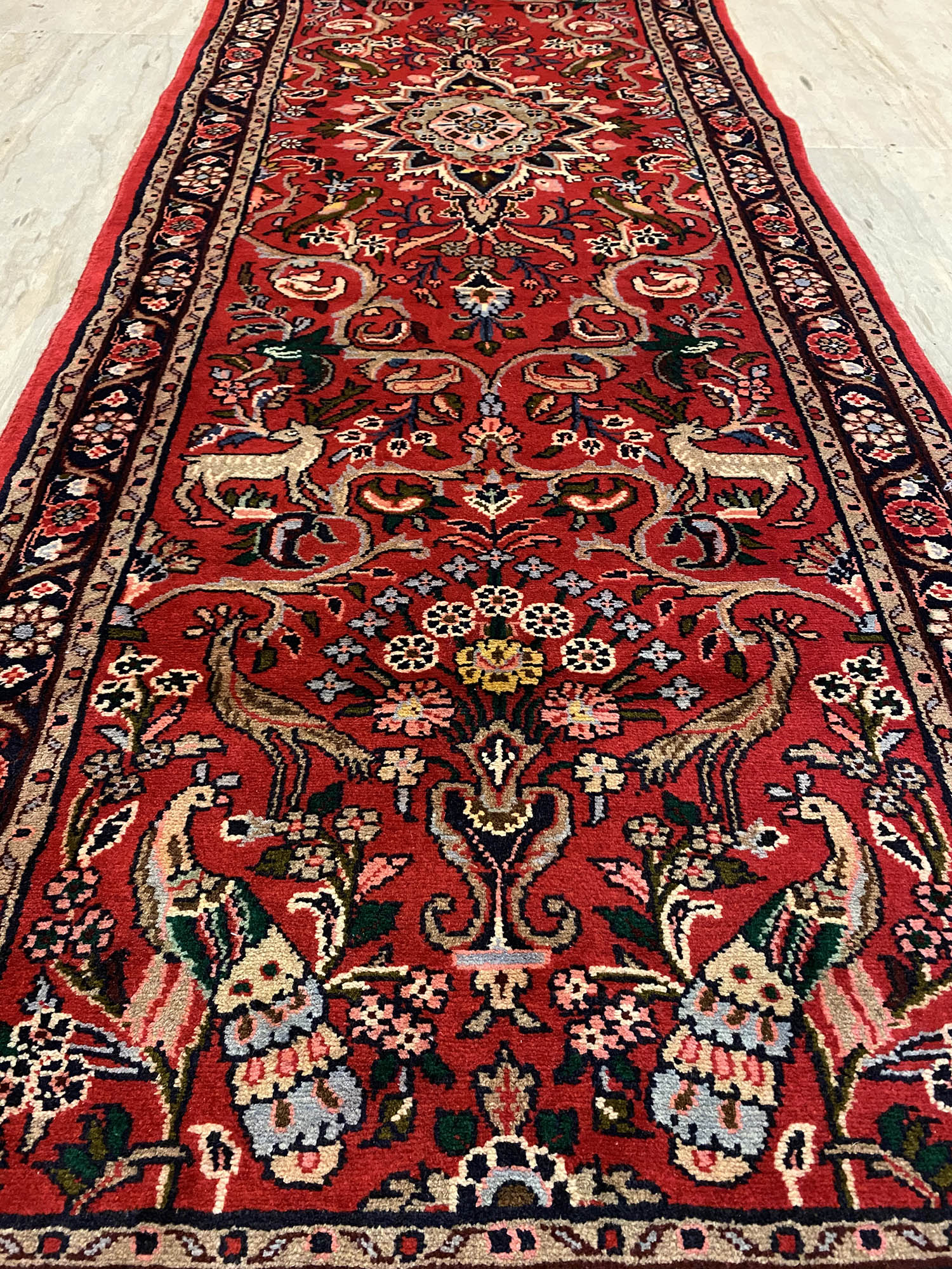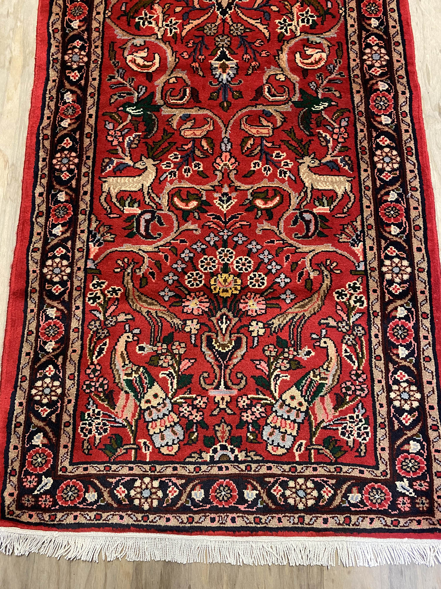 Handmade Persian Hamedan Runner. Above All It Is Hard Wearing and Durable Runner. It Also Has Pure Hand Spun Wool Pile On Cotton Base. Gorgeous Red Background Dyed Using Traditional Methods.
