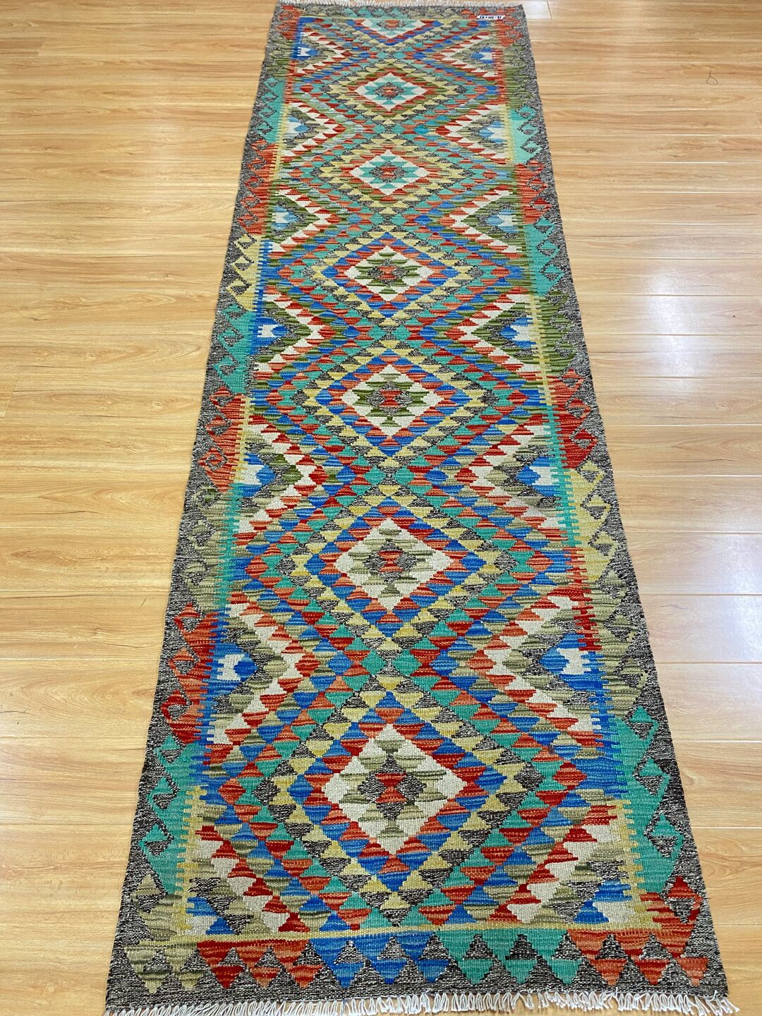 Certified Hand Woven Tribal Afghan Kilim Runner 287x87cm