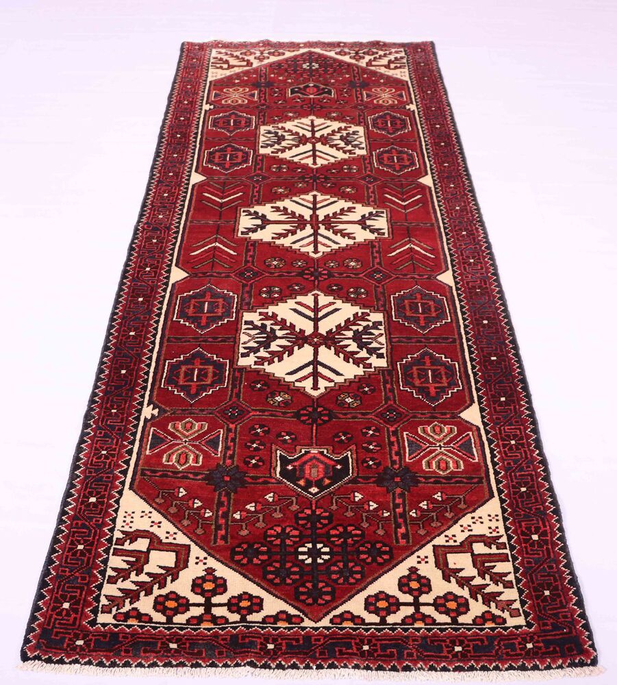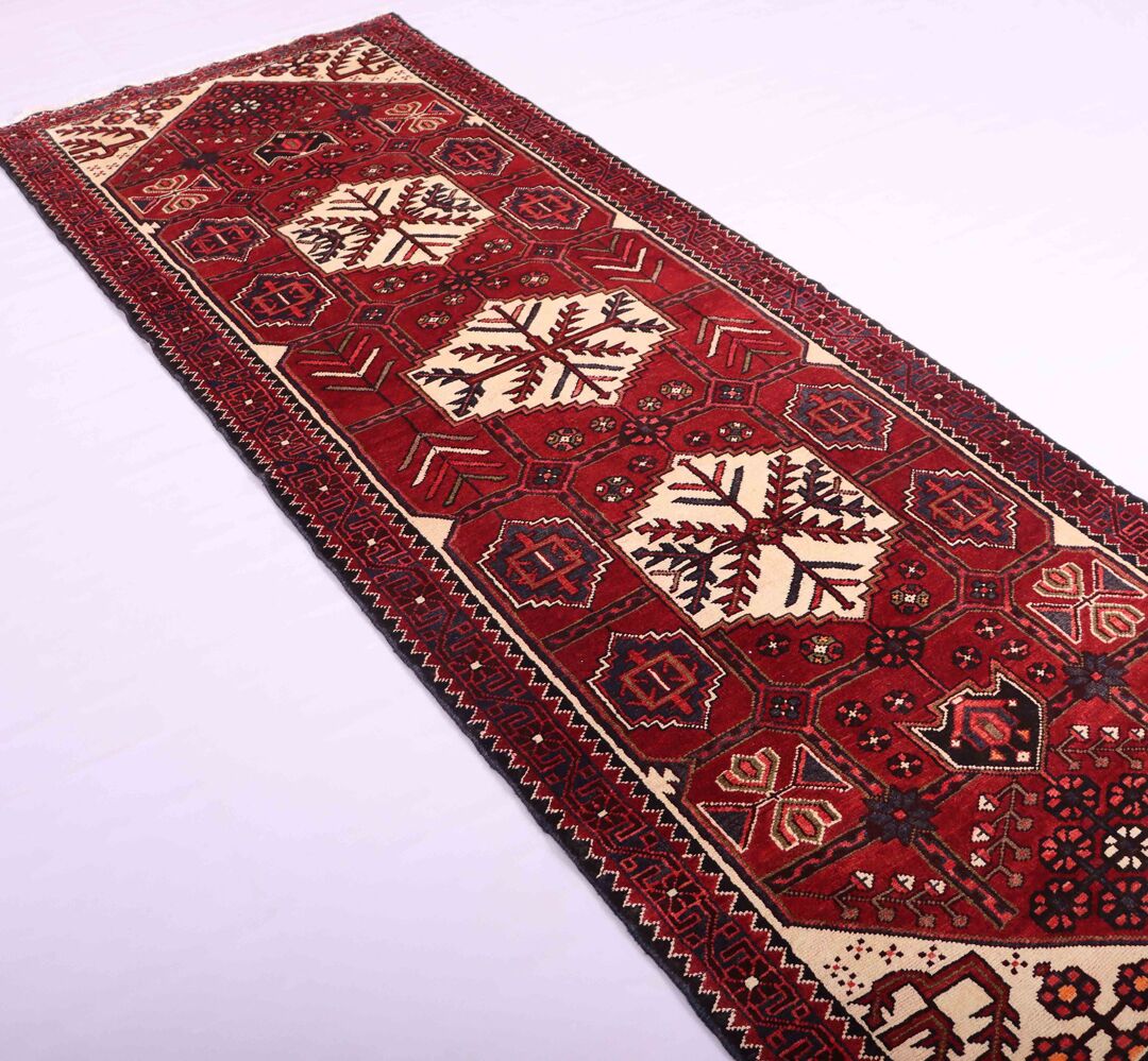 – Rare Tribal Elegance: Embrace the rare tribal elegance of this 2.9m long handmade Persian Hamedan Runner. Its hard-wearing and durable nature is complemented by pure hand-spun wool pile on a cotton base, featuring a gorgeous red background dyed using traditional methods.
