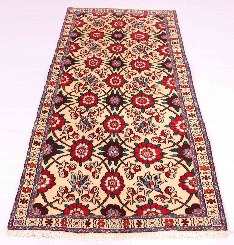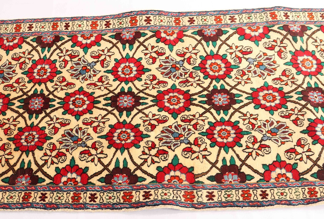 – Craftsmanship: Renowned for its floral pattern, this 2m long hand-knotted Mashad runner reflects exquisite craftsmanship.