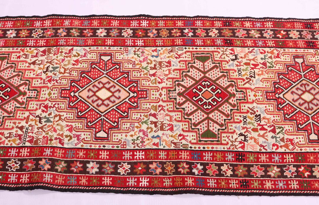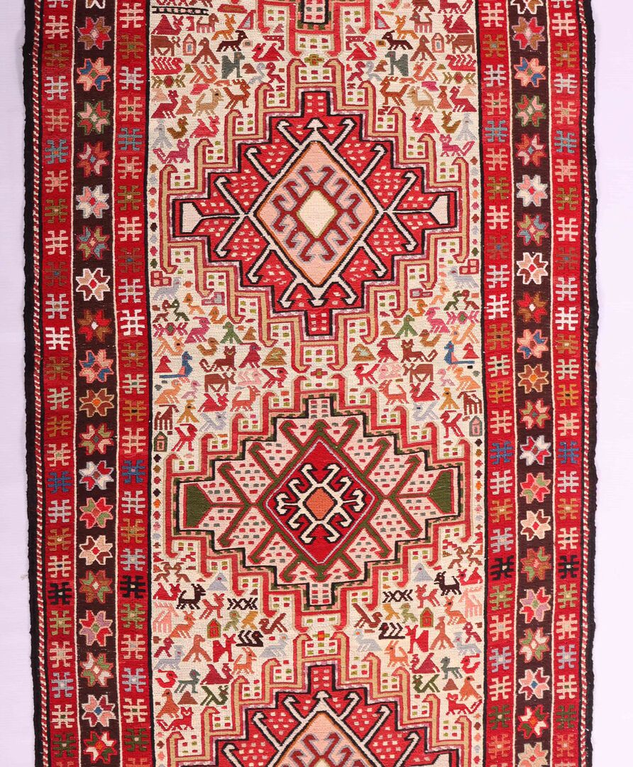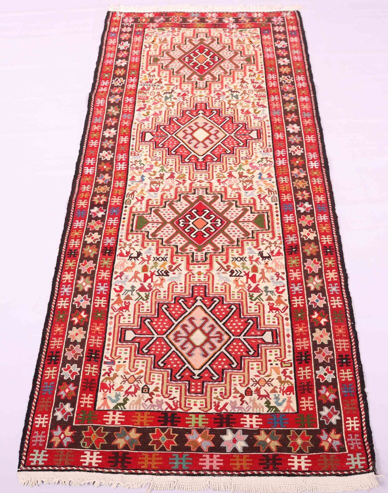 – Artistic Craftsmanship: Immerse yourself in the beauty of a Persian Ardebil Sumak Kilim Runner Rug, featuring three weaving techniques and a pure hand-spun wool pile with silk on a wool base.
