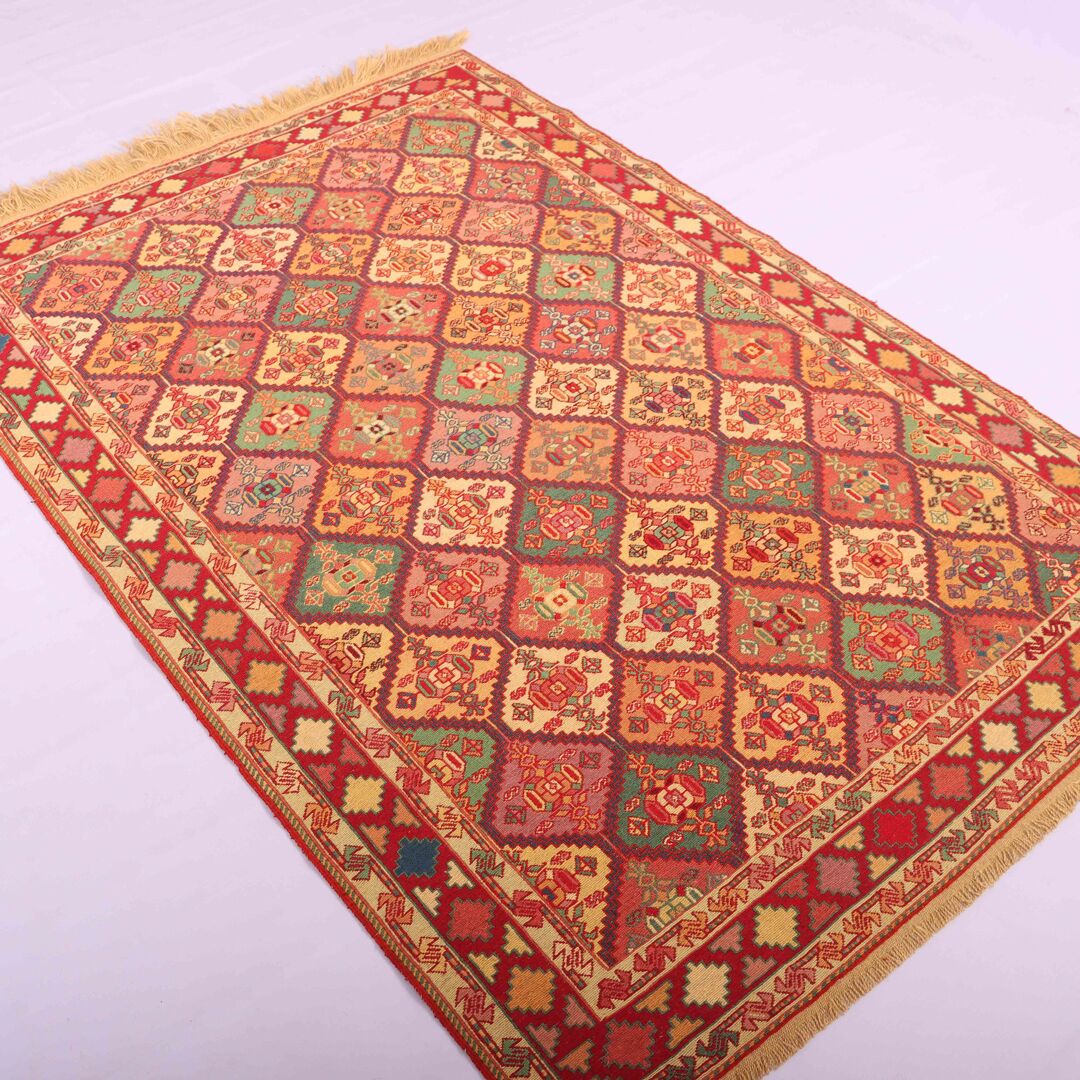 Enhance your space with the artistic elegance of this Certified Persian Ardebil Sumak Kilim Rug, exclusively from RugMaster, your trusted handmade Persian Rugs and Runners specialist in Australia!