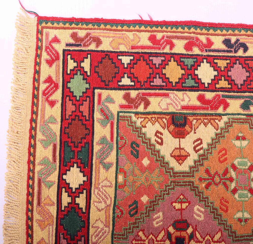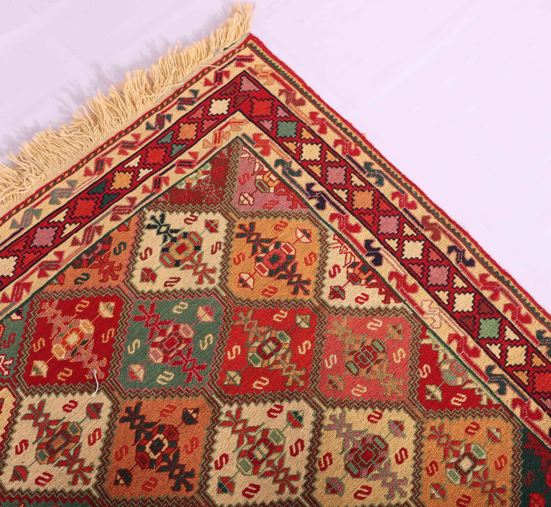 – Artistic Craftsmanship: Immerse yourself in the beauty of a Persian Ardebil Sumak Kilim Runner Rug, featuring three weaving techniques and a pure hand-spun wool pile with silk on a wool base.