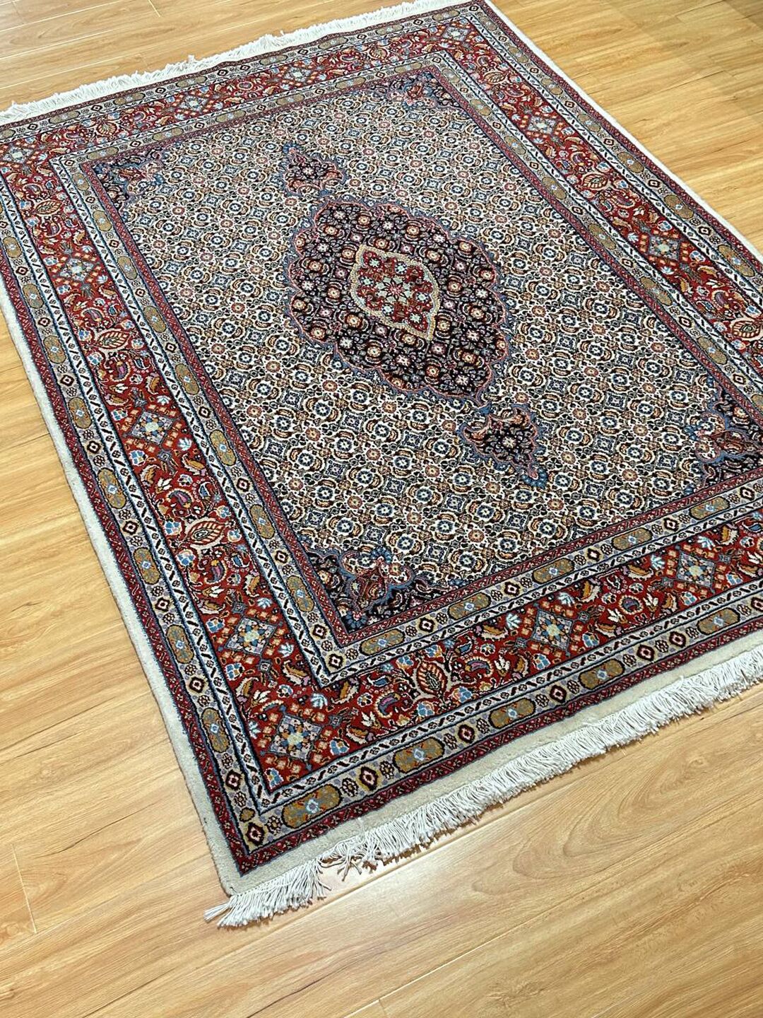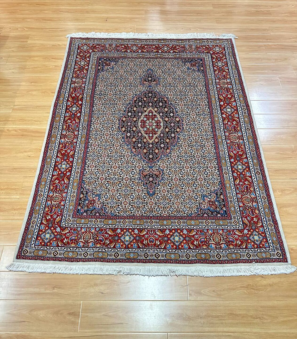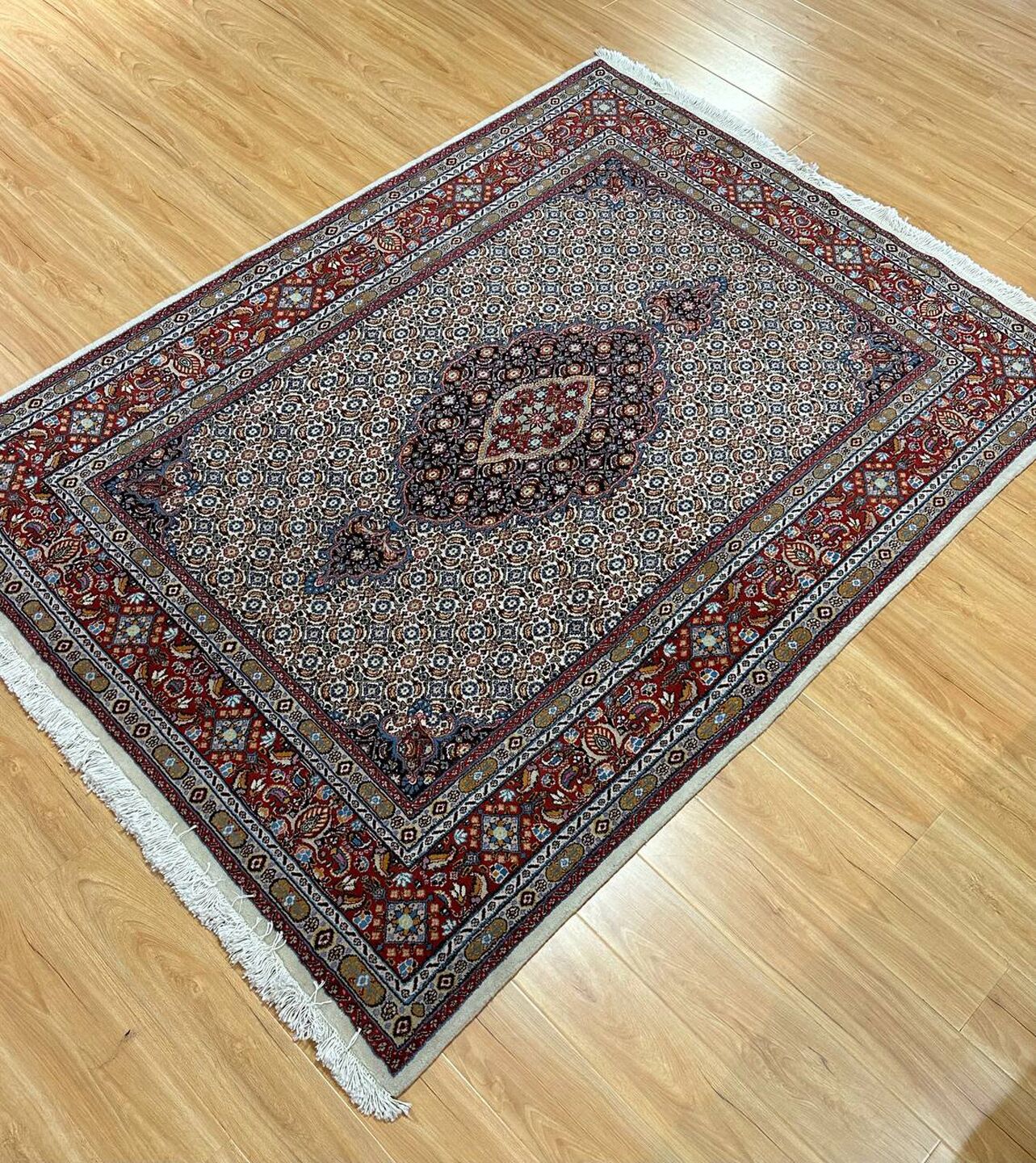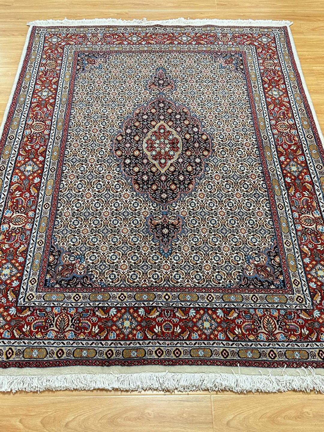 – Gorgeous Central Medallion Herati Design: Admire the gorgeous central medallion Herati design (Mahi), adding a touch of sophistication to your space.