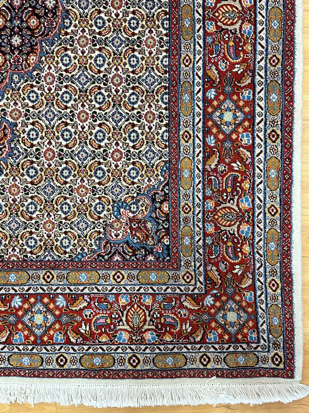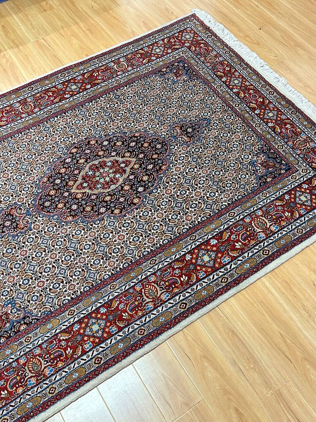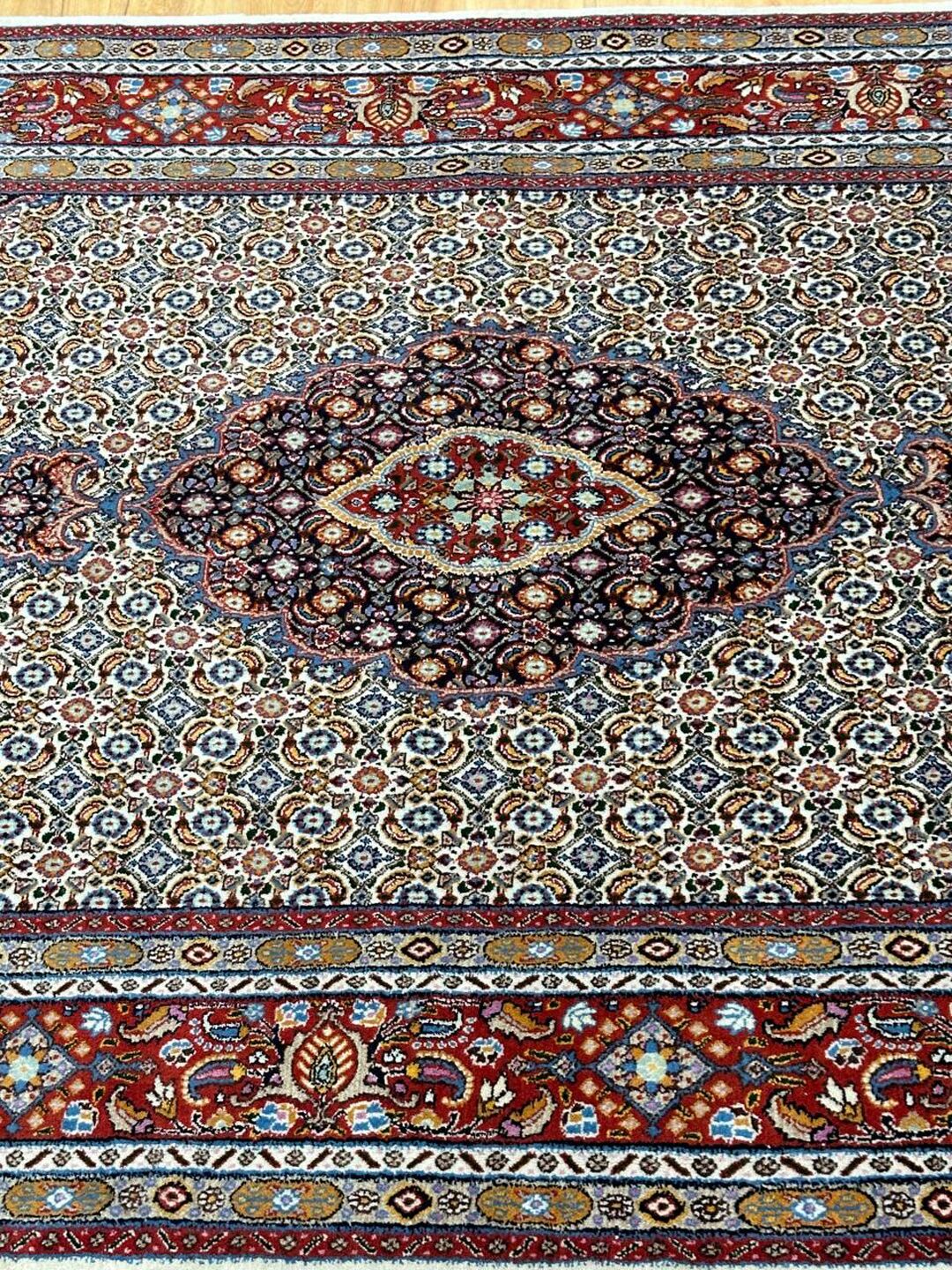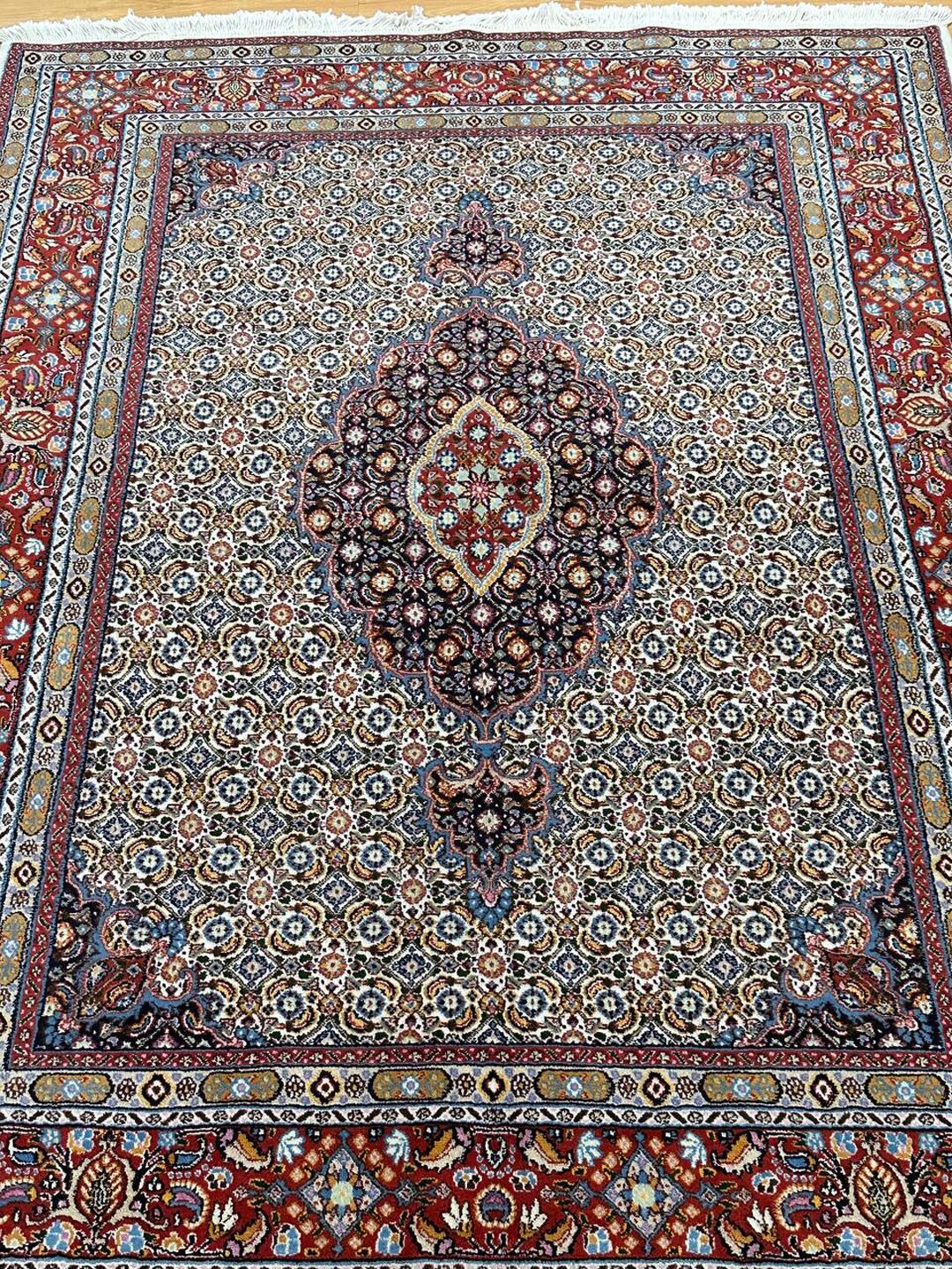 – Gorgeous Central Medallion Herati Design: Admire the gorgeous central medallion Herati design (Mahi), adding a touch of sophistication to your space.