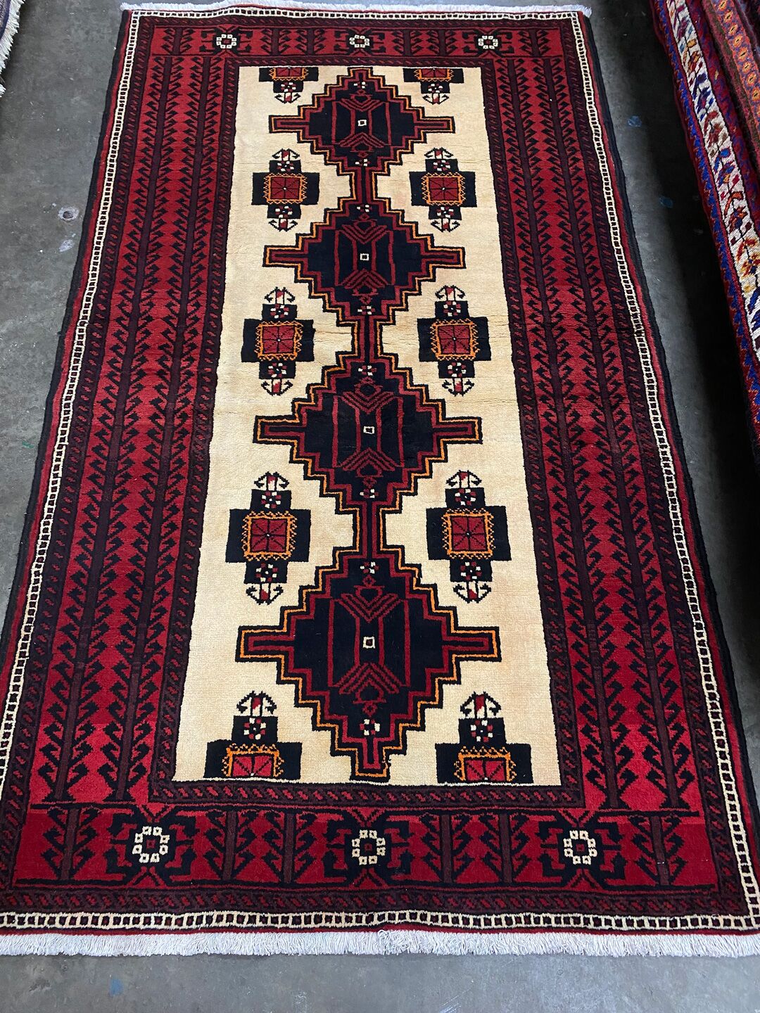 – Tribal Balouchi Carpet: A versatile piece that can be used as both a rug and a wall hanging, featuring pure hand-spun wool on cotton construction.