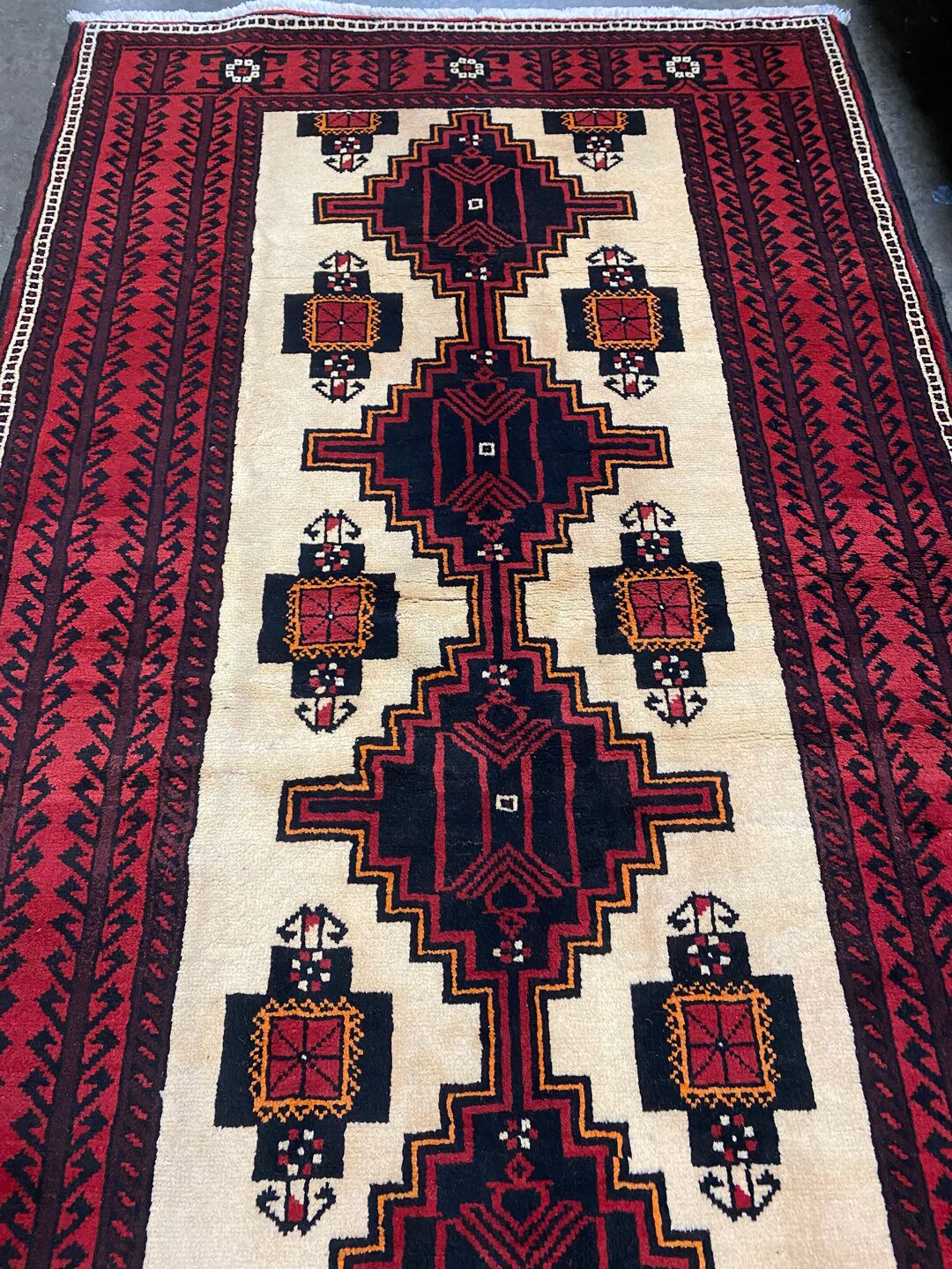 It’s a second hand Rug with a bit stained color in Some Spots as it shown on photos. In Excellent Condition. Fully Washed Before Importing to Australia.