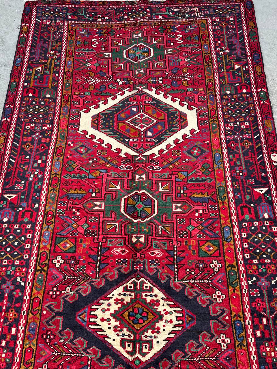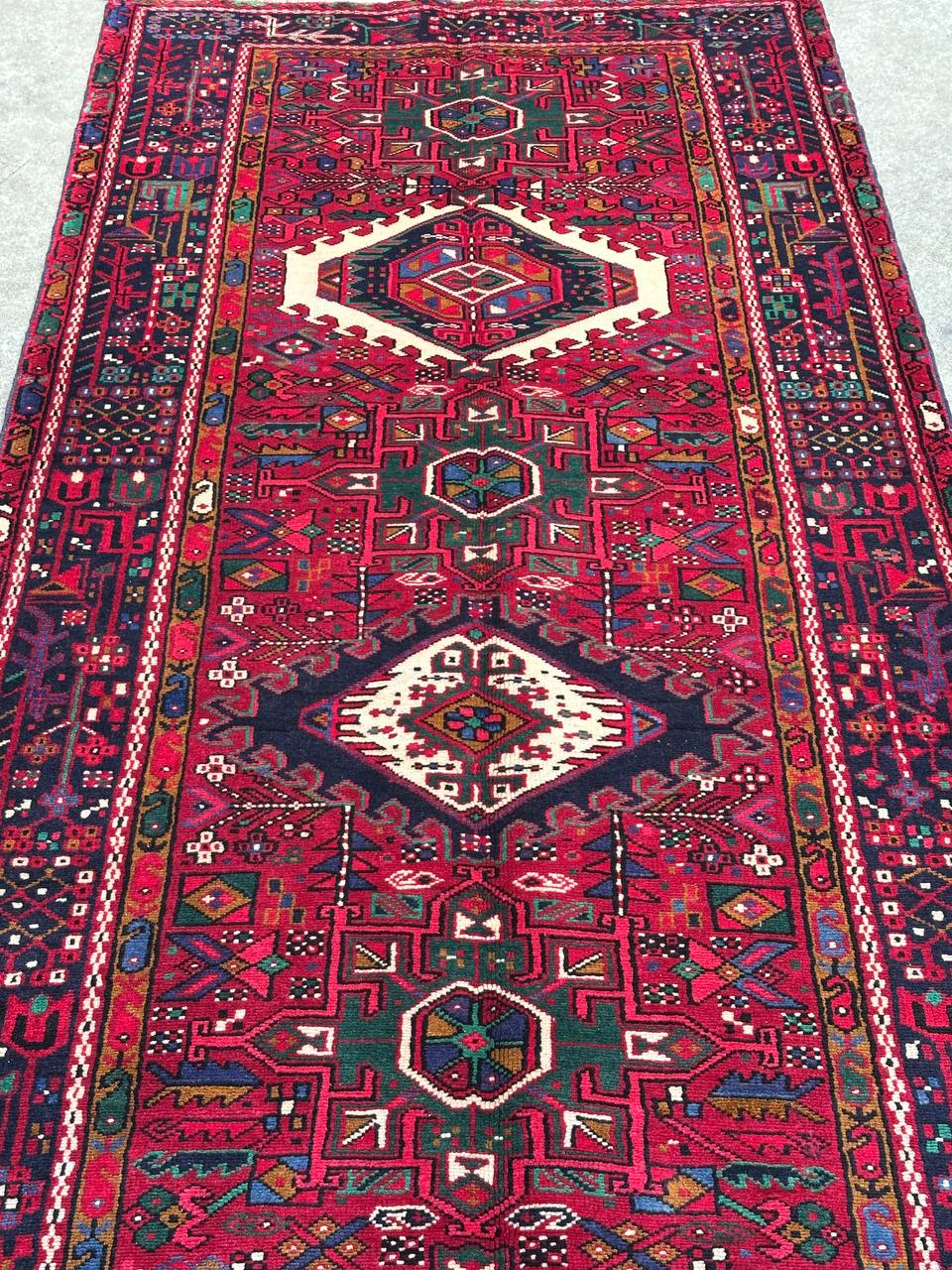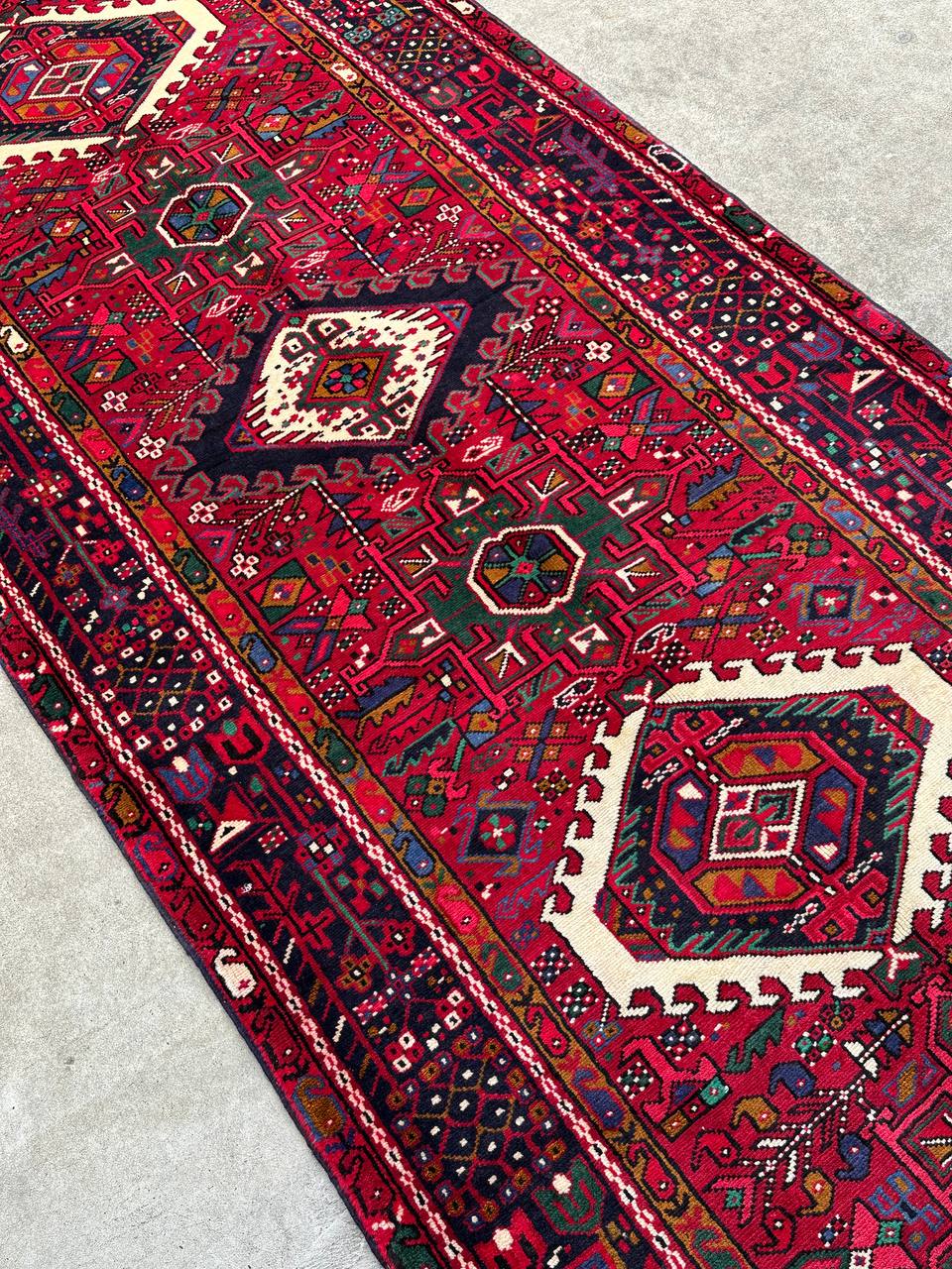 – Rare Beauty: Transform your space with this rare oversize and heavy-quality Persian Qarajeh Runner, a unique find with a length of over 3m. The runner boasts a pure hand-spun wool pile on a cotton base, featuring beige and salmon pink tones dyed using traditional methods.