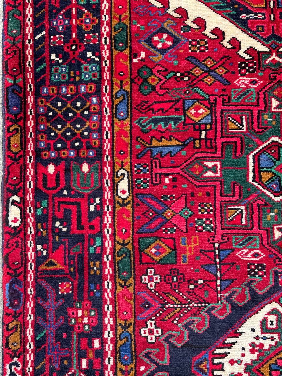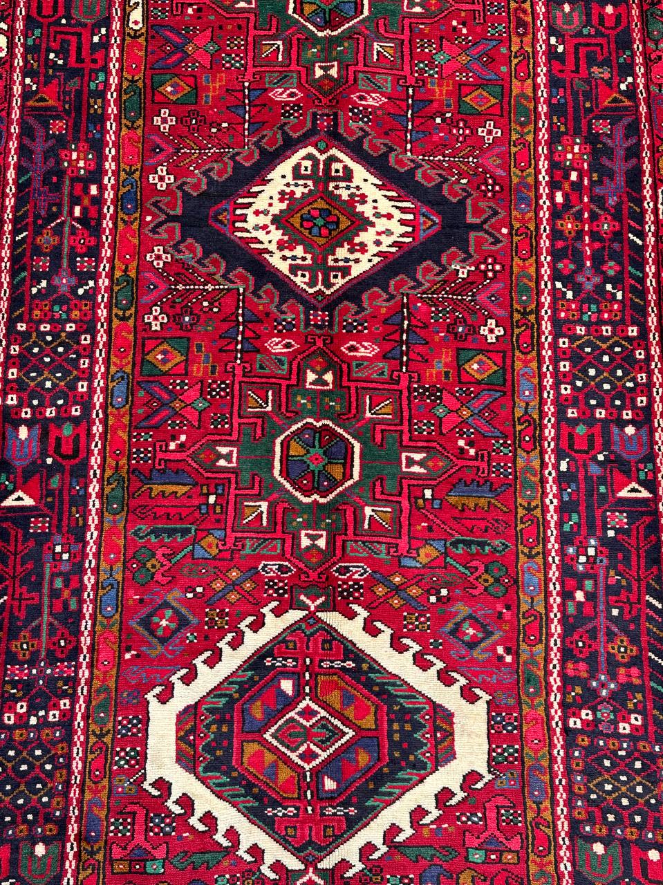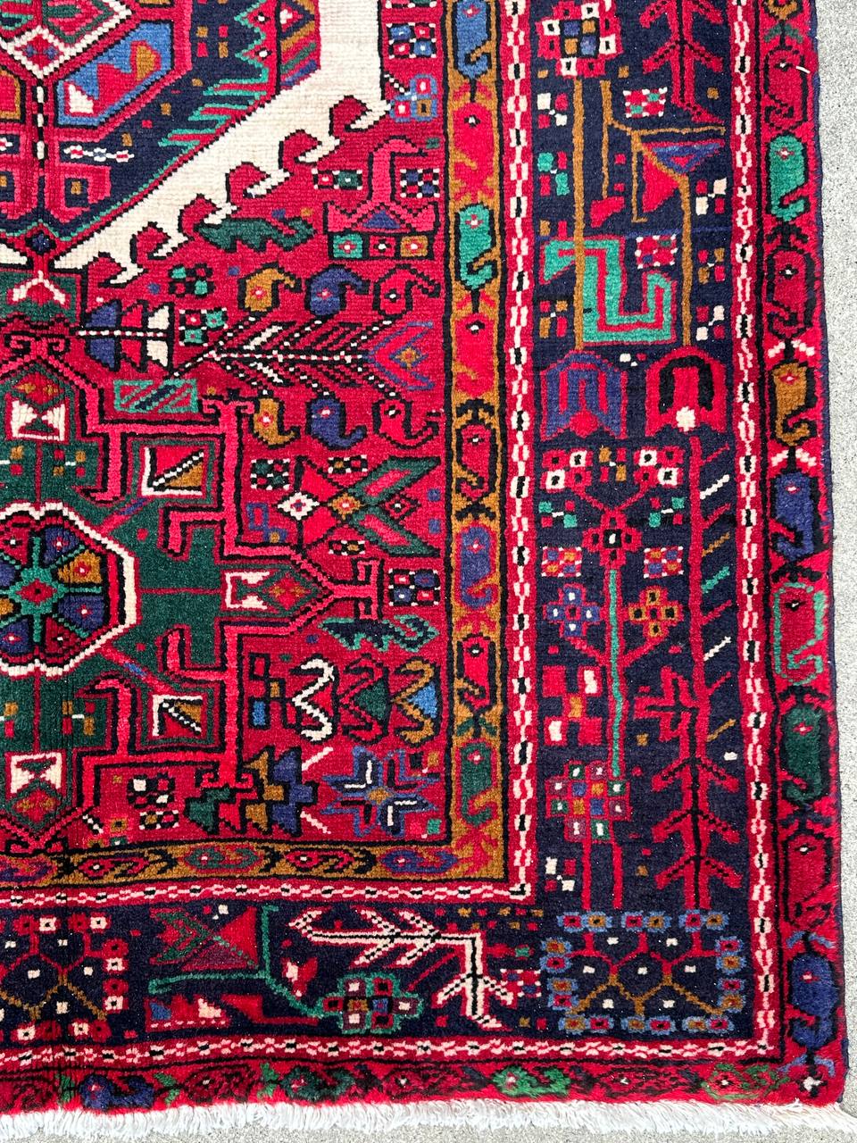 – Geometric Elegance: Admire the multiple medallion geometric design, renowned as the Heriz pattern, showcasing the intricate craftsmanship of the weaver who dedicated around 6 months to complete this piece.