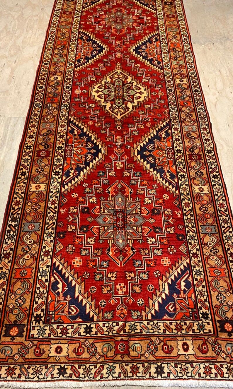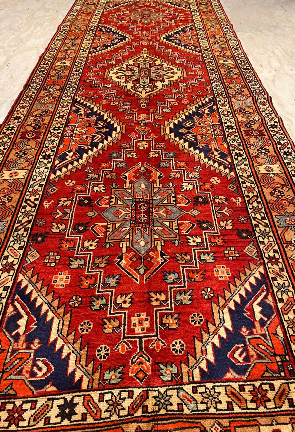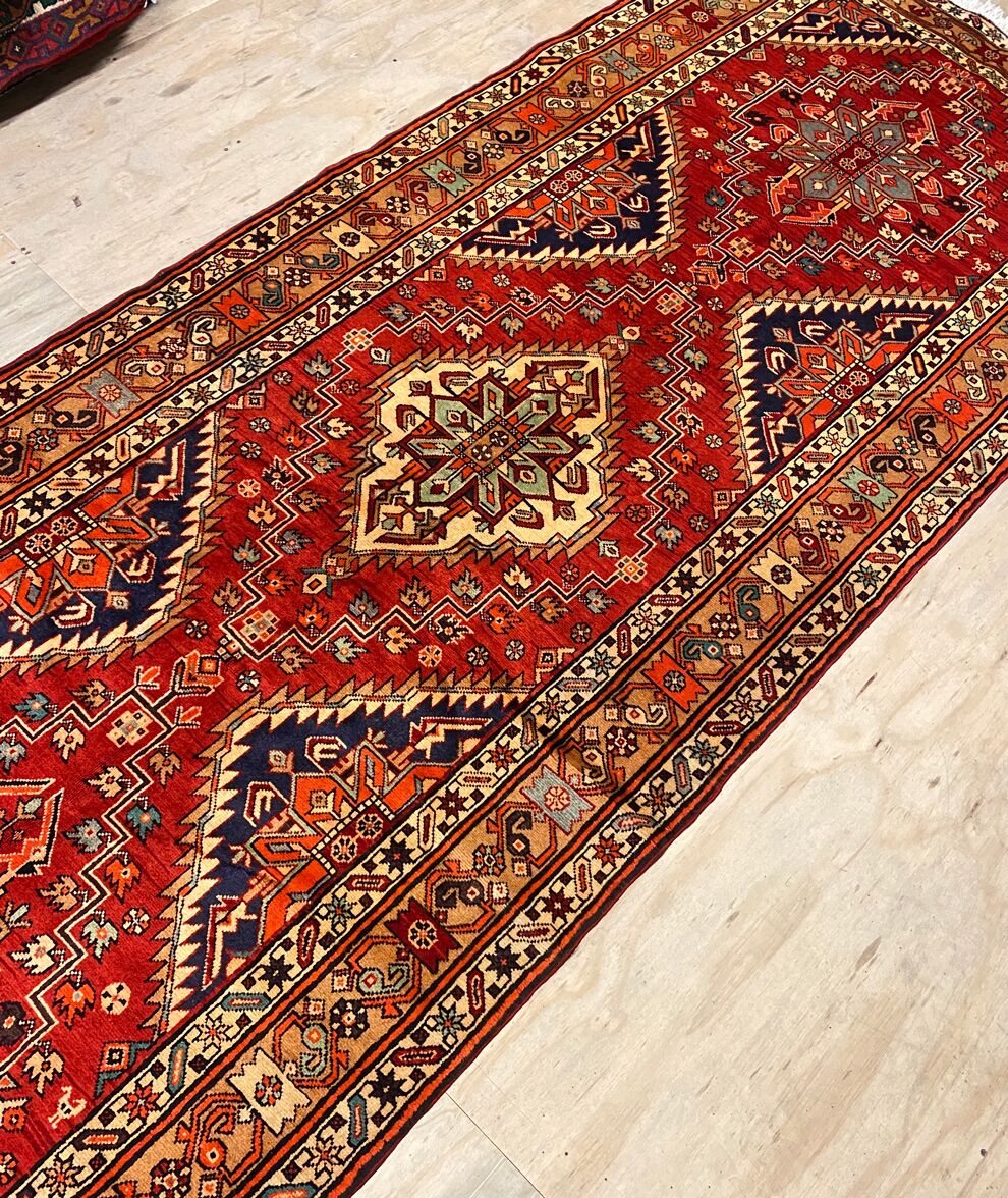 Rare 3.3m Long Handmade Persian Ardebil Runner Rug. Above All It Is Hard Wearing and Durable Runner. It Also Has Pure Hand Spun Wool Pile On Cotton Base. Gorgeous Red Background Dyed Using Traditional Methods.