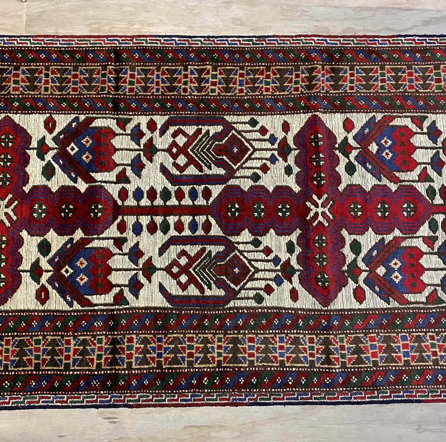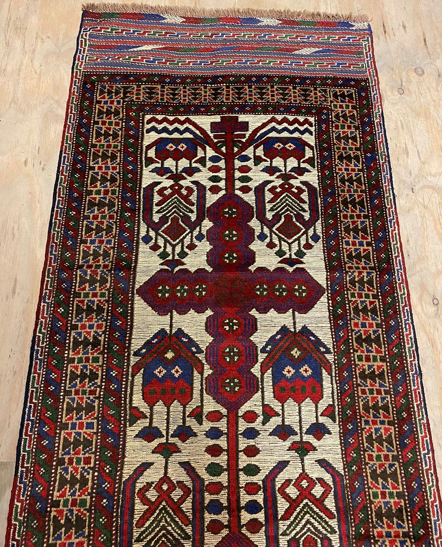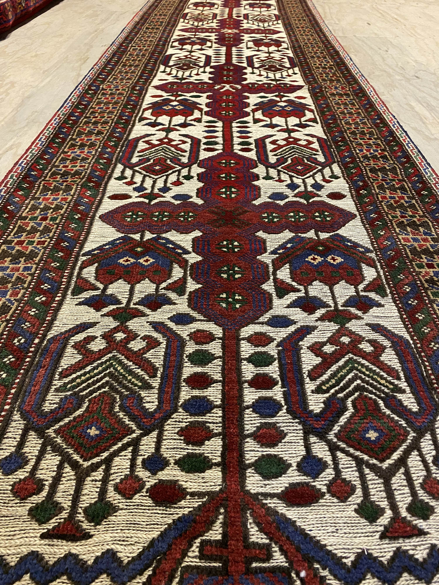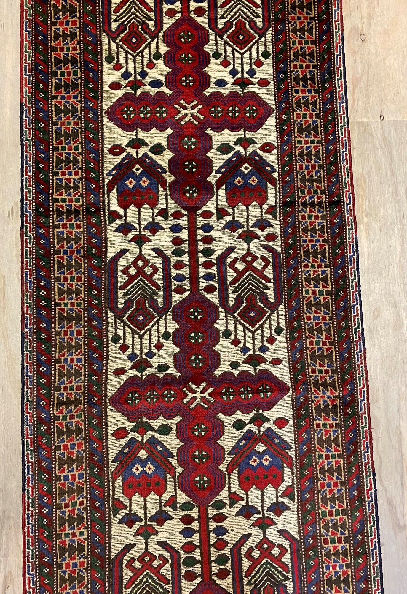 Superb Hand Knotted Persian Sirjan Runner. It Has a cotton on cotton. Beige, Blue, Red and Touch of Purple Dyed Using Traditional Methods. Pinpoint Quality from City of Sirjan.