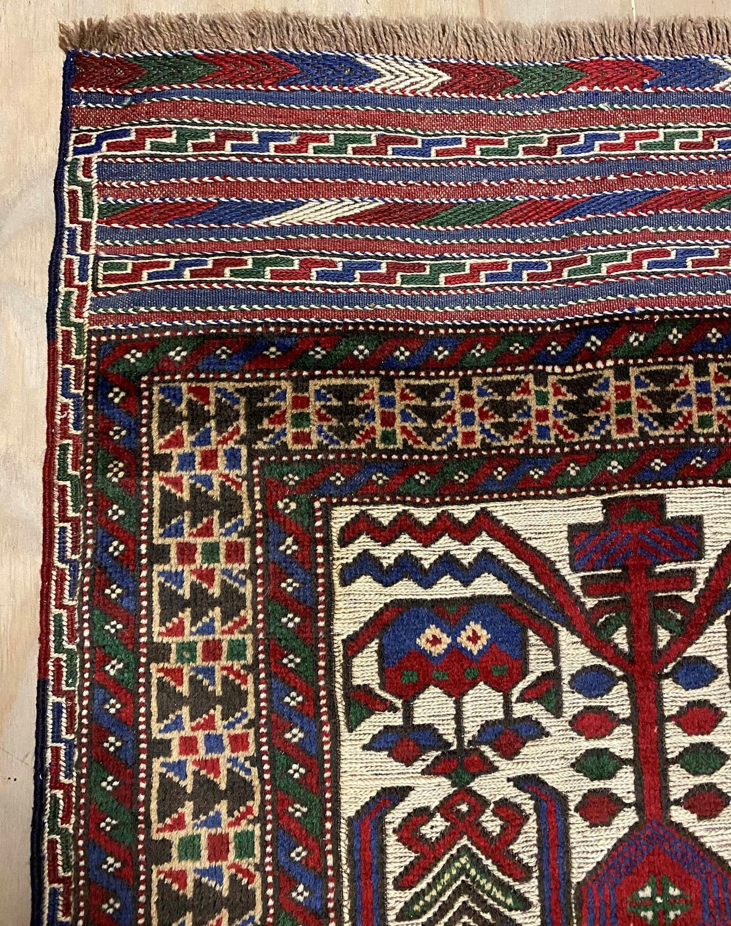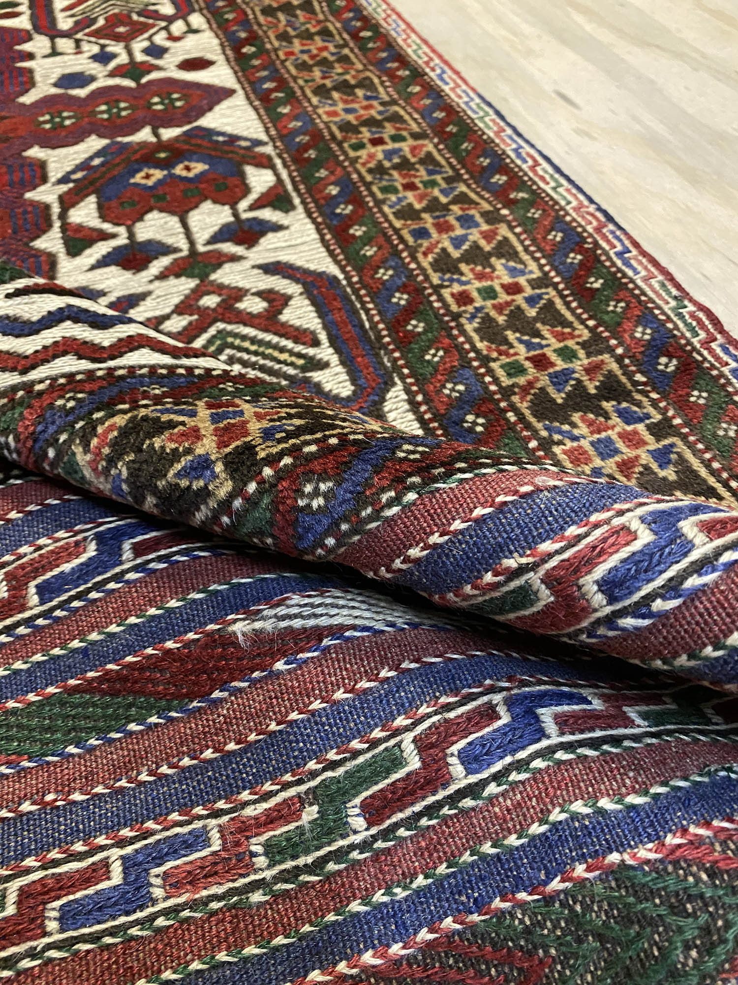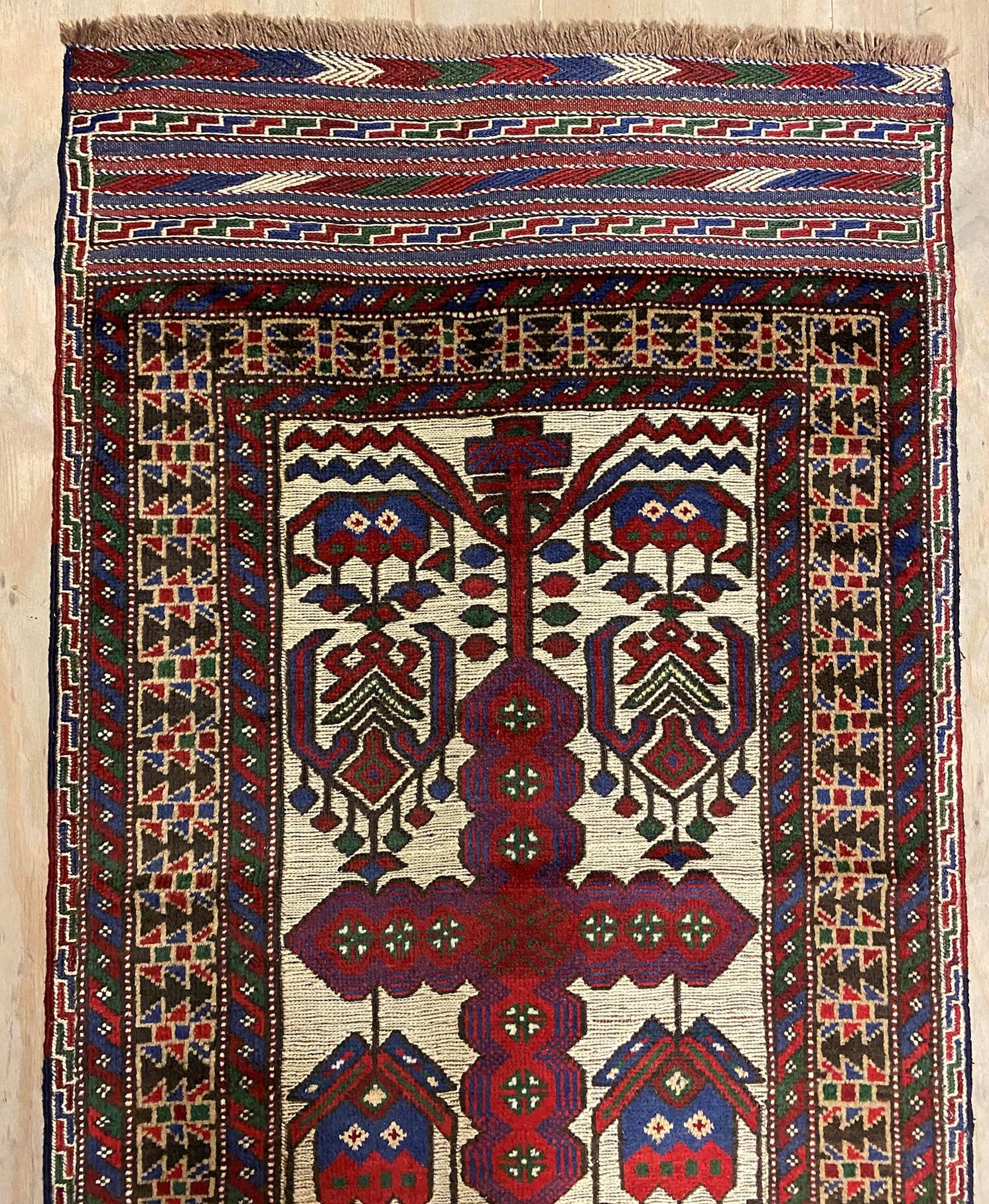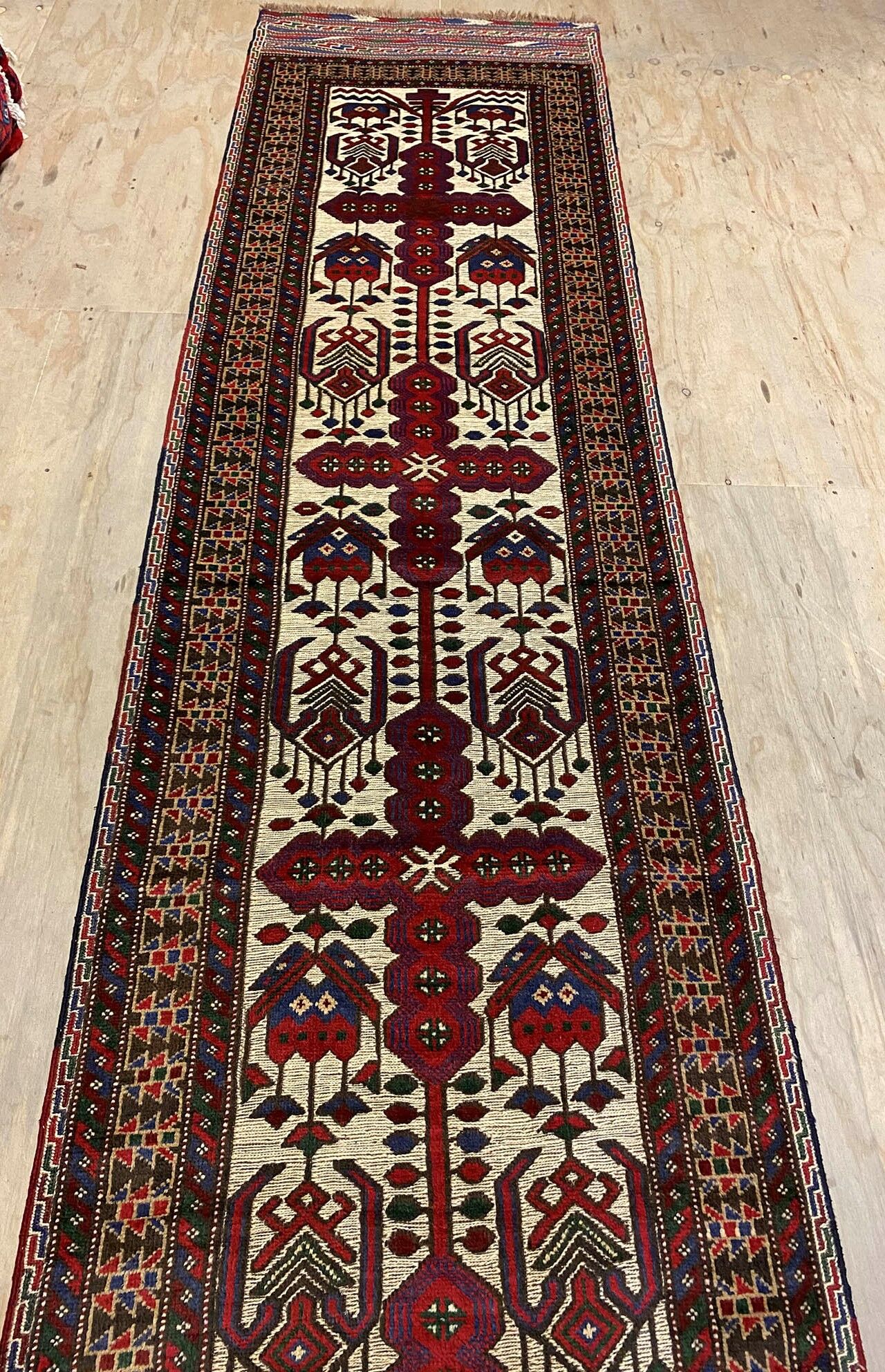 Superb Hand Knotted Persian Sirjan Runner. It Has a cotton on cotton. Beige, Blue, Red and Touch of Purple Dyed Using Traditional Methods. Pinpoint Quality from City of Sirjan.