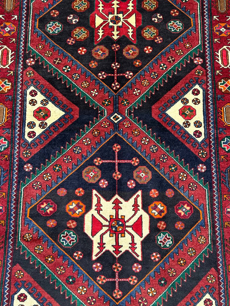 – Origin: This handmade Persian Saveh Runner Rug is a testament to enduring craftsmanship, meticulously hand-knotted by skilled artisans. Crafted with pure hand-spun wool pile on a cotton base, it showcases the artistry from the Saveh region.
