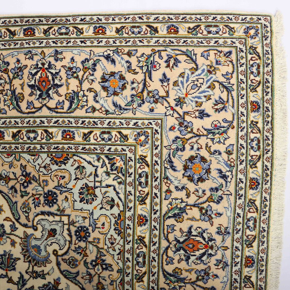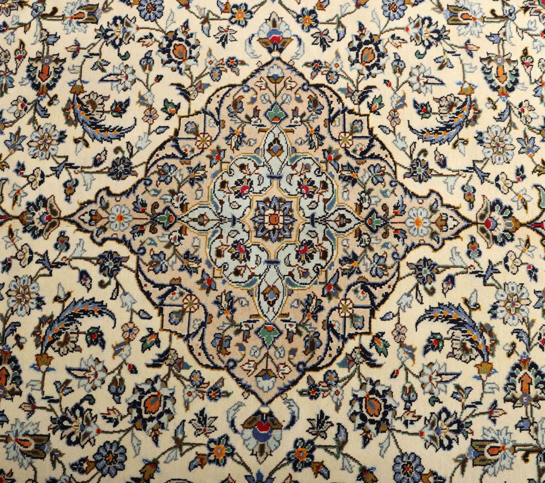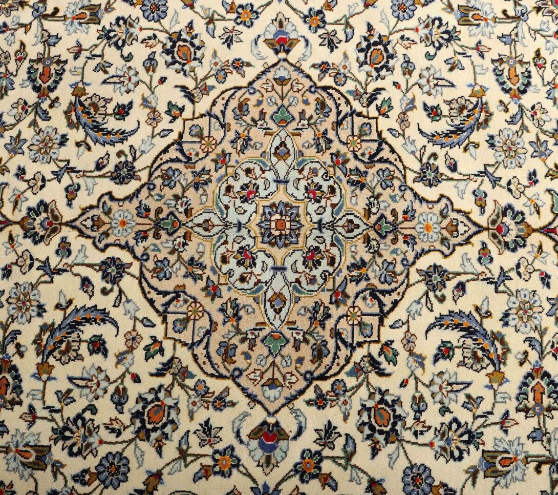 The Kashan rugs surfaced from one of the oldest cities, Kashan, Iran, that shares its namesake. The origin of the Kashan dates back to the 17th century though some experts believe that some of the Kashan’s designs drawback to the 16th century. Room Size Vintage Persian Kashan Rug. Above All It Is Hard To Get This Quality Original Handmade Rug. It Has a Pure Lamb’s Pile on Cotton Base. Main Colors Are Beige, Using Traditional Methods. Fine Quality Piece from City Of Kashan.