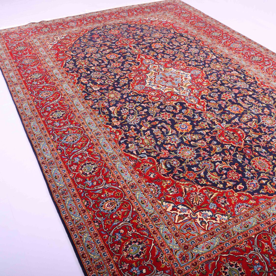 – Time-Honored Kashan Craftsmanship: Elevate your space with this large room-size Persian Kashan rug, a testament to the exquisite craftsmanship originating from the historic city of Kashan, Iran.