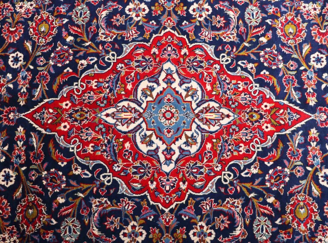 Immerse yourself in the time-honored Kashan craftsmanship with this Large Room Size Persian Kashan Rug, exclusively from RugMaster, your trusted handmade Persian Rugs and Runners specialist!