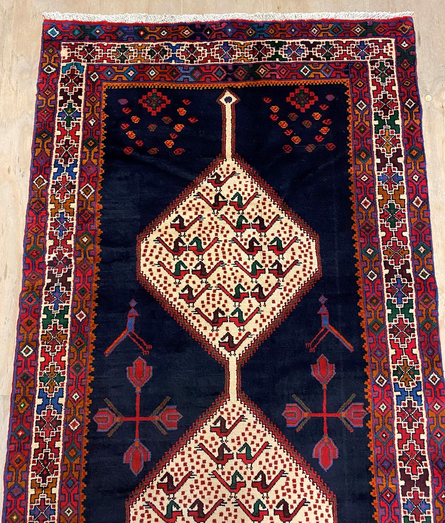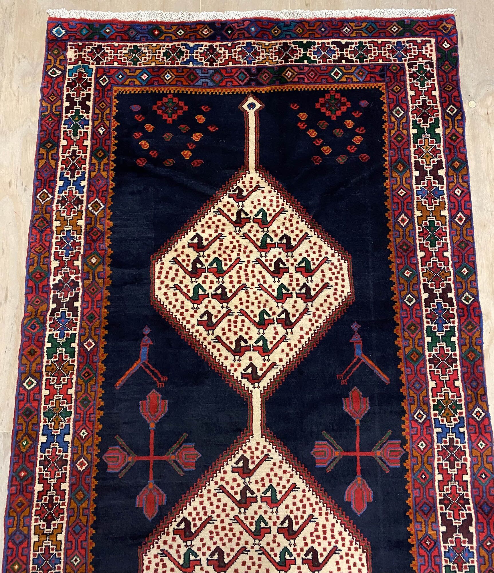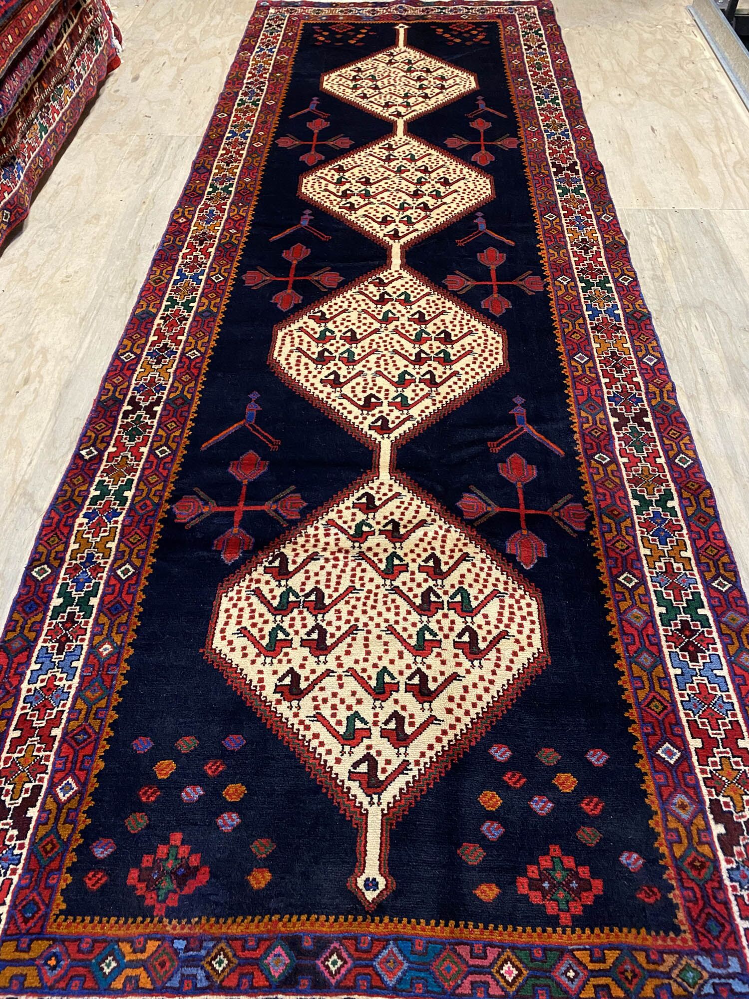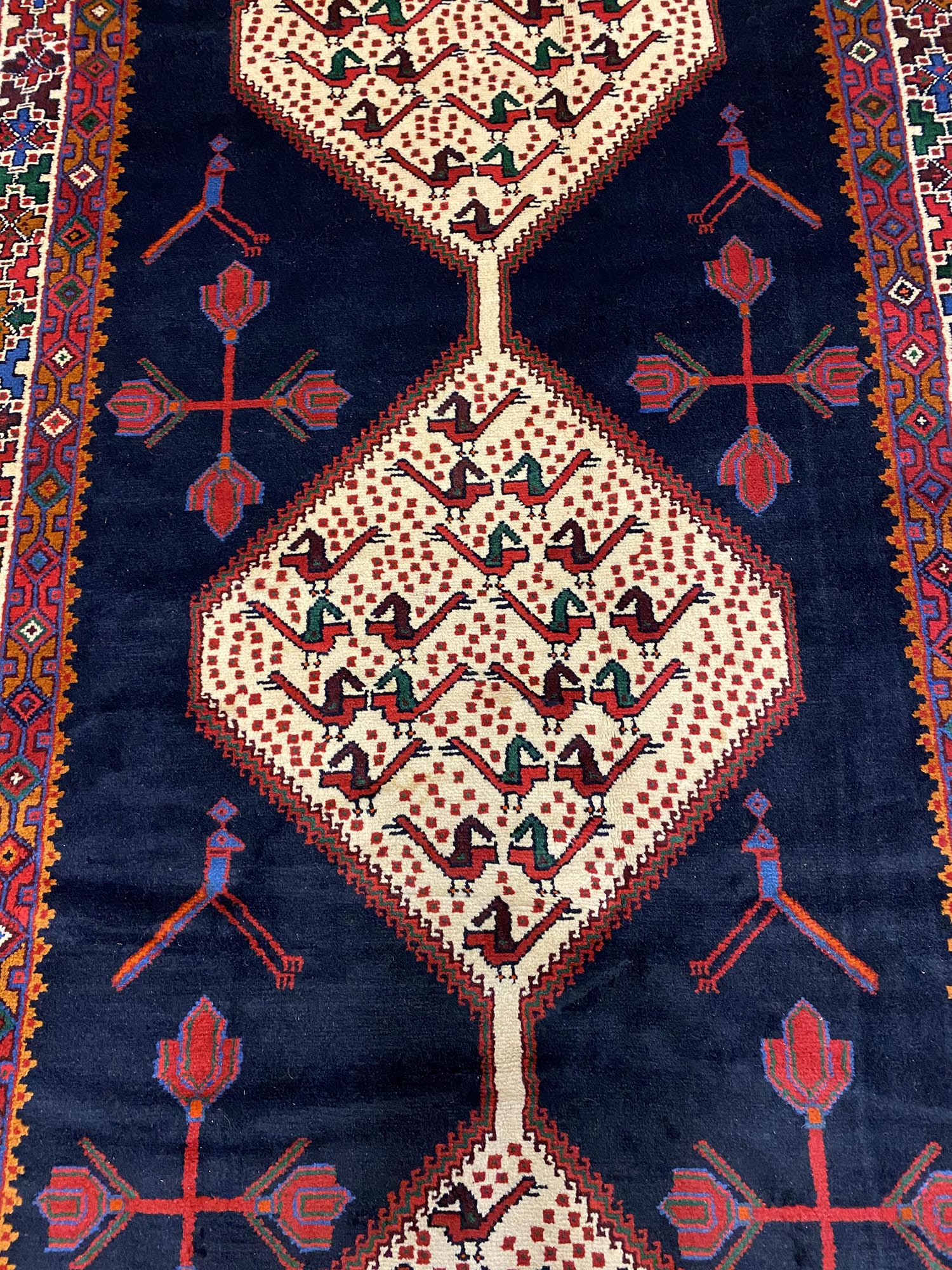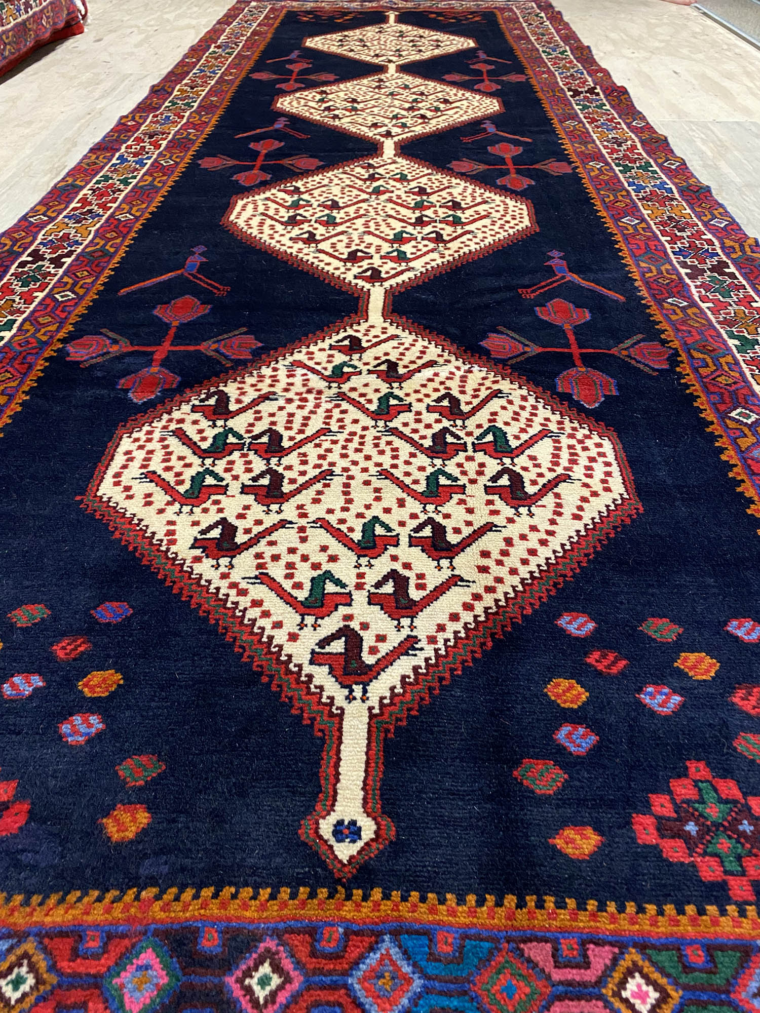 Hand Knotted Tribal Persian Saveh Runner. Above All It Is Hard Wearing and Durable Piece Which Would Last You A Life Time. Pure Hand Spun Wool Pile On Cotton Base. It Also Has Am Indigo Blue Tone Dyed Using Traditional Methods.