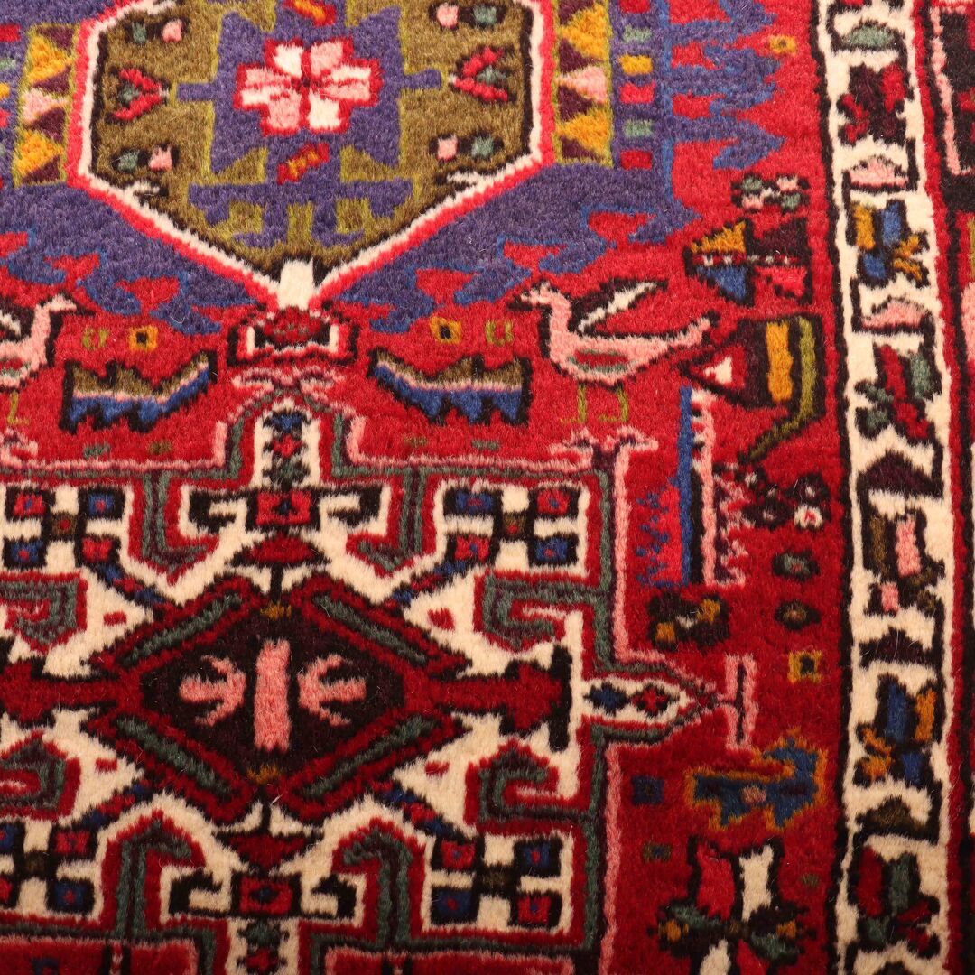 – Geometric Elegance: Admire the multiple medallion geometric design, renowned as the Heriz pattern, showcasing the intricate craftsmanship of the weaver who dedicated around 9 months to complete this piece.