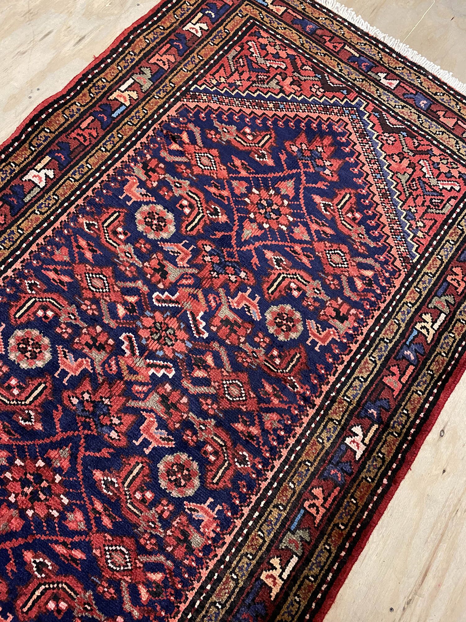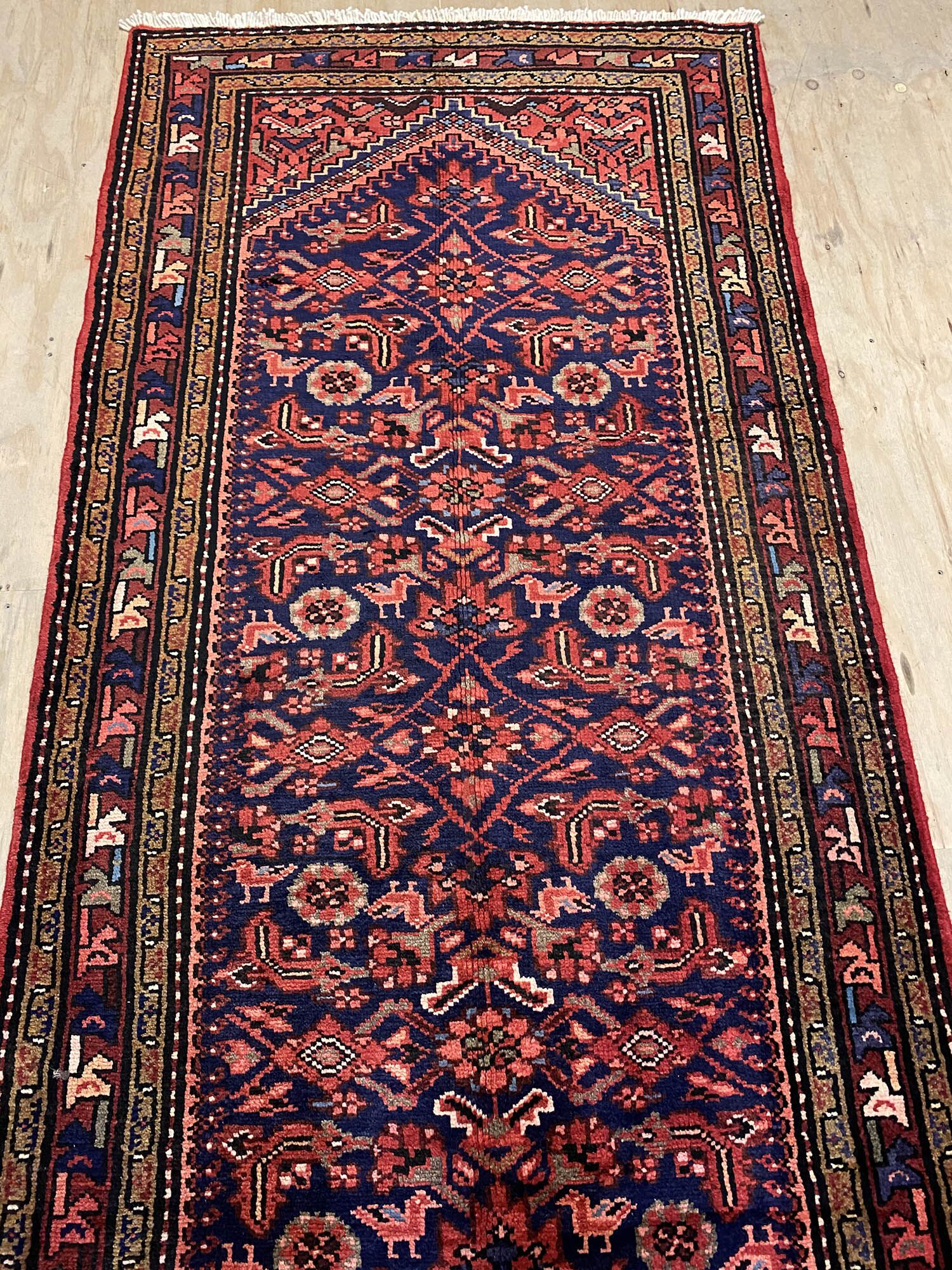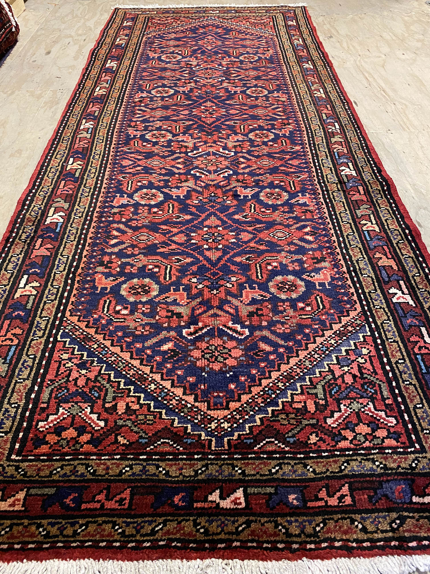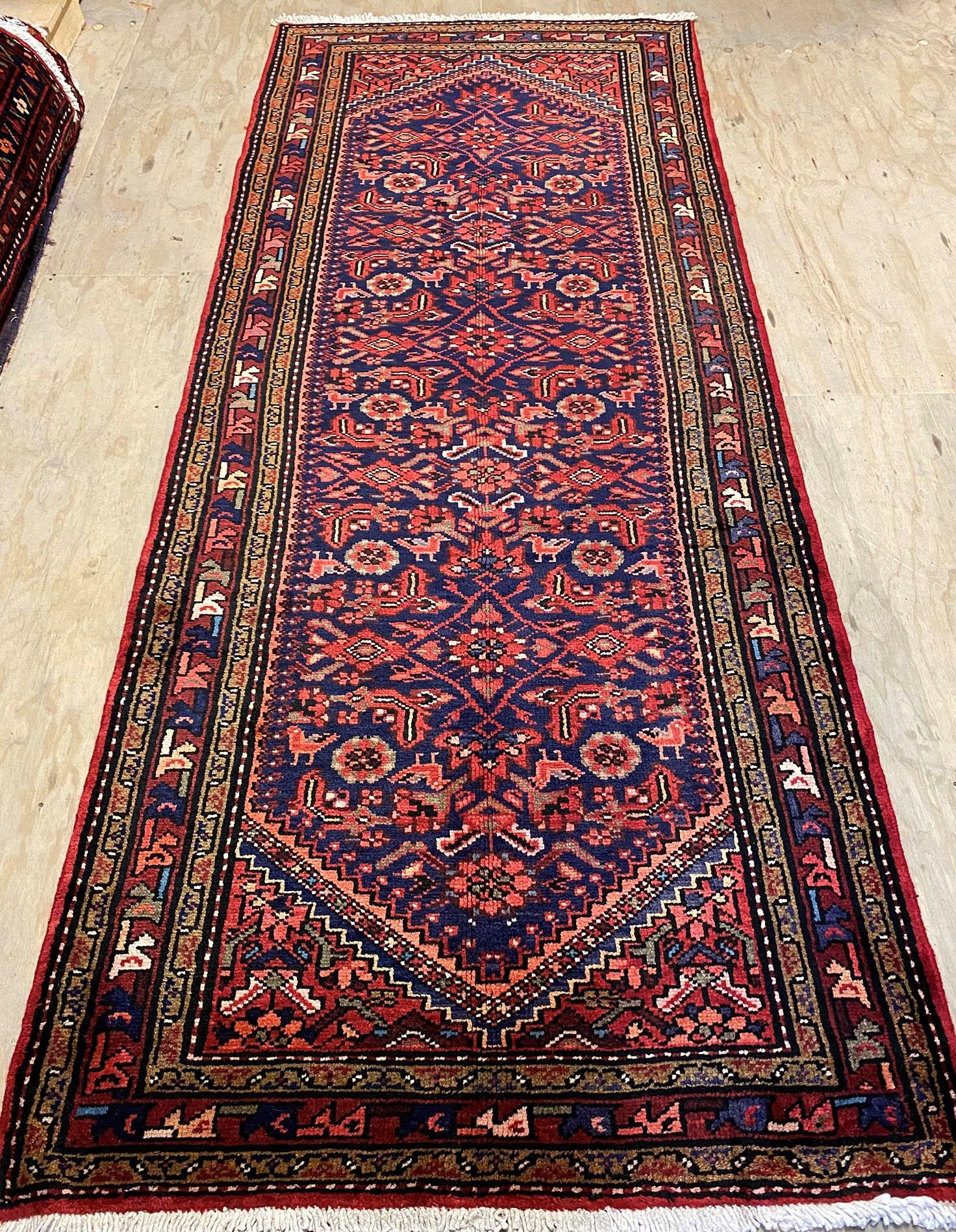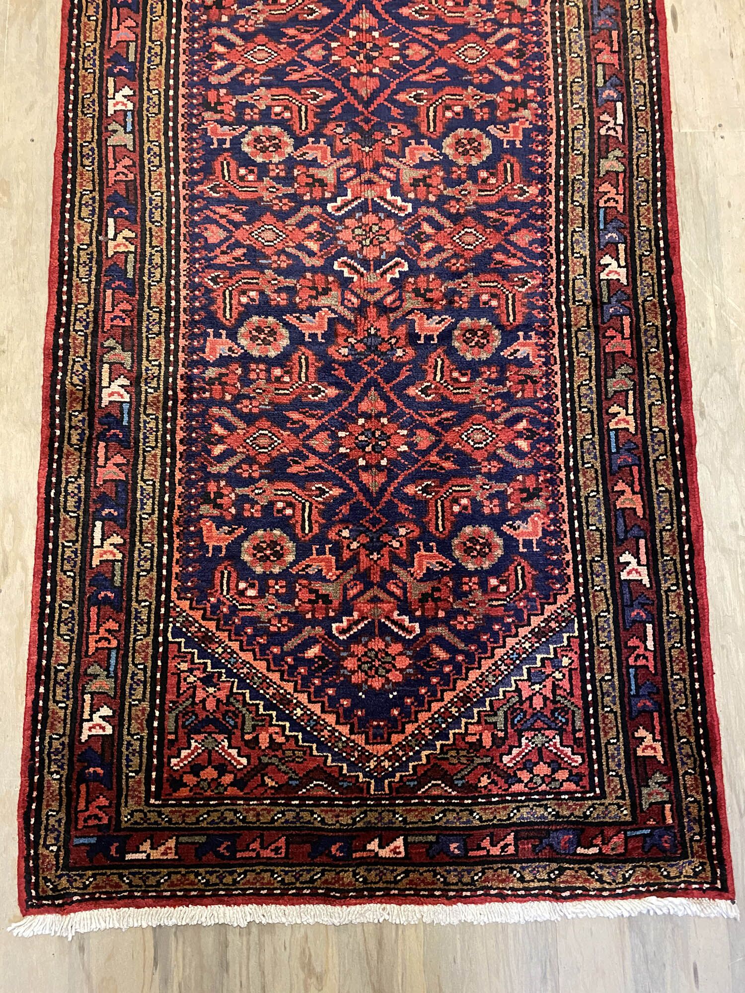 – Origin: Experience the charm of this long Persian Hamedan runner, a hard-wearing and durable piece with a unique tribal art design.