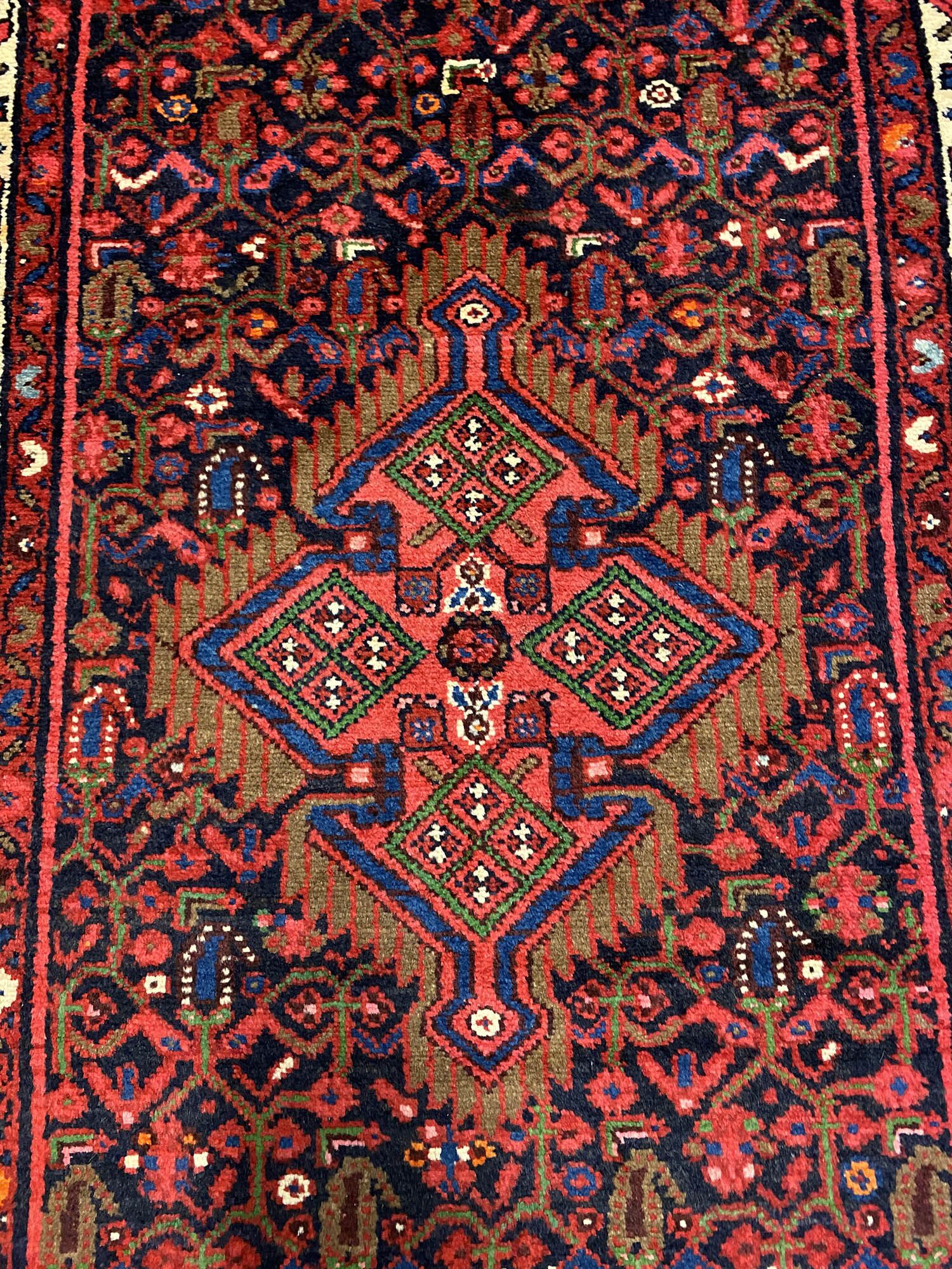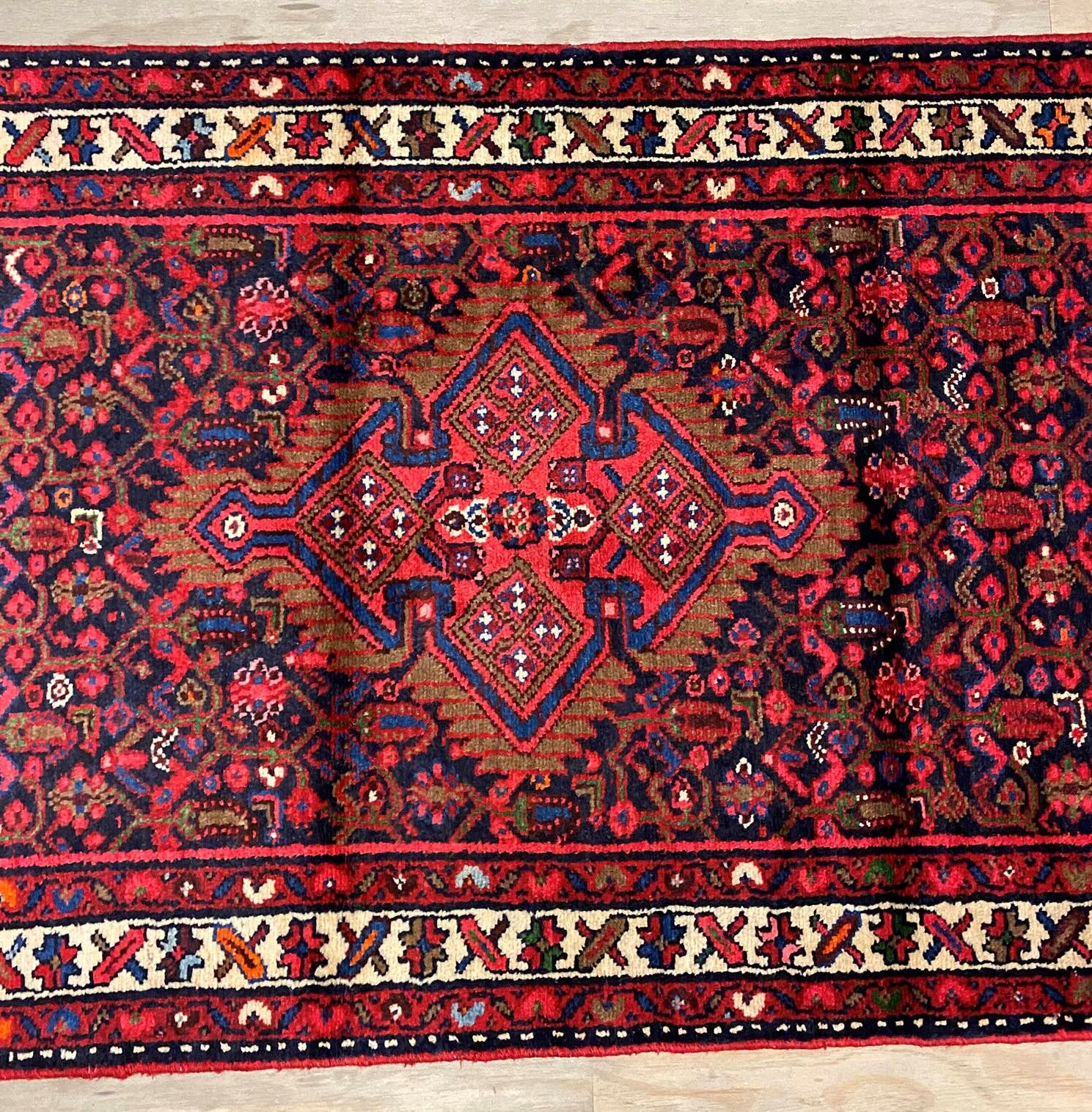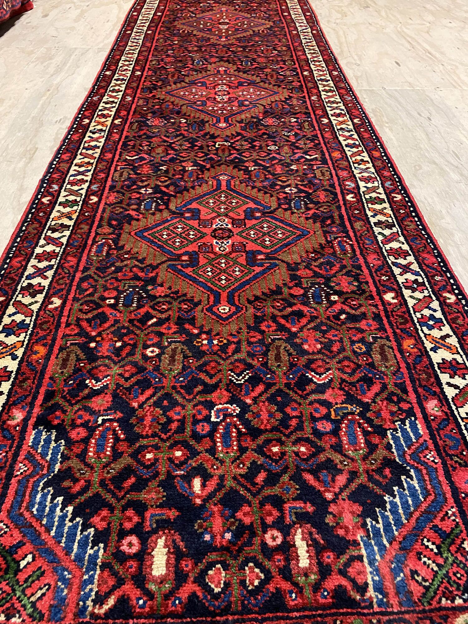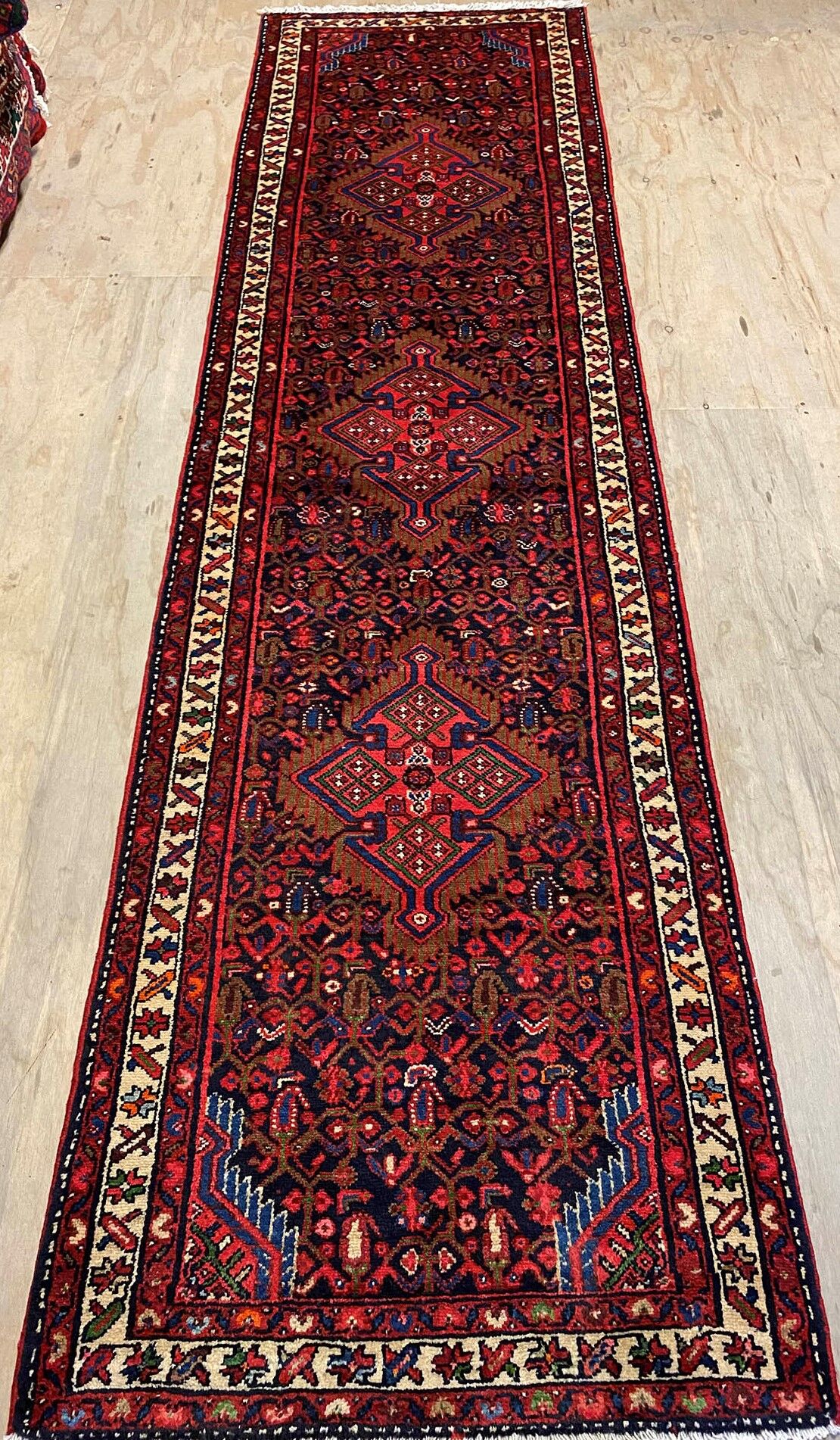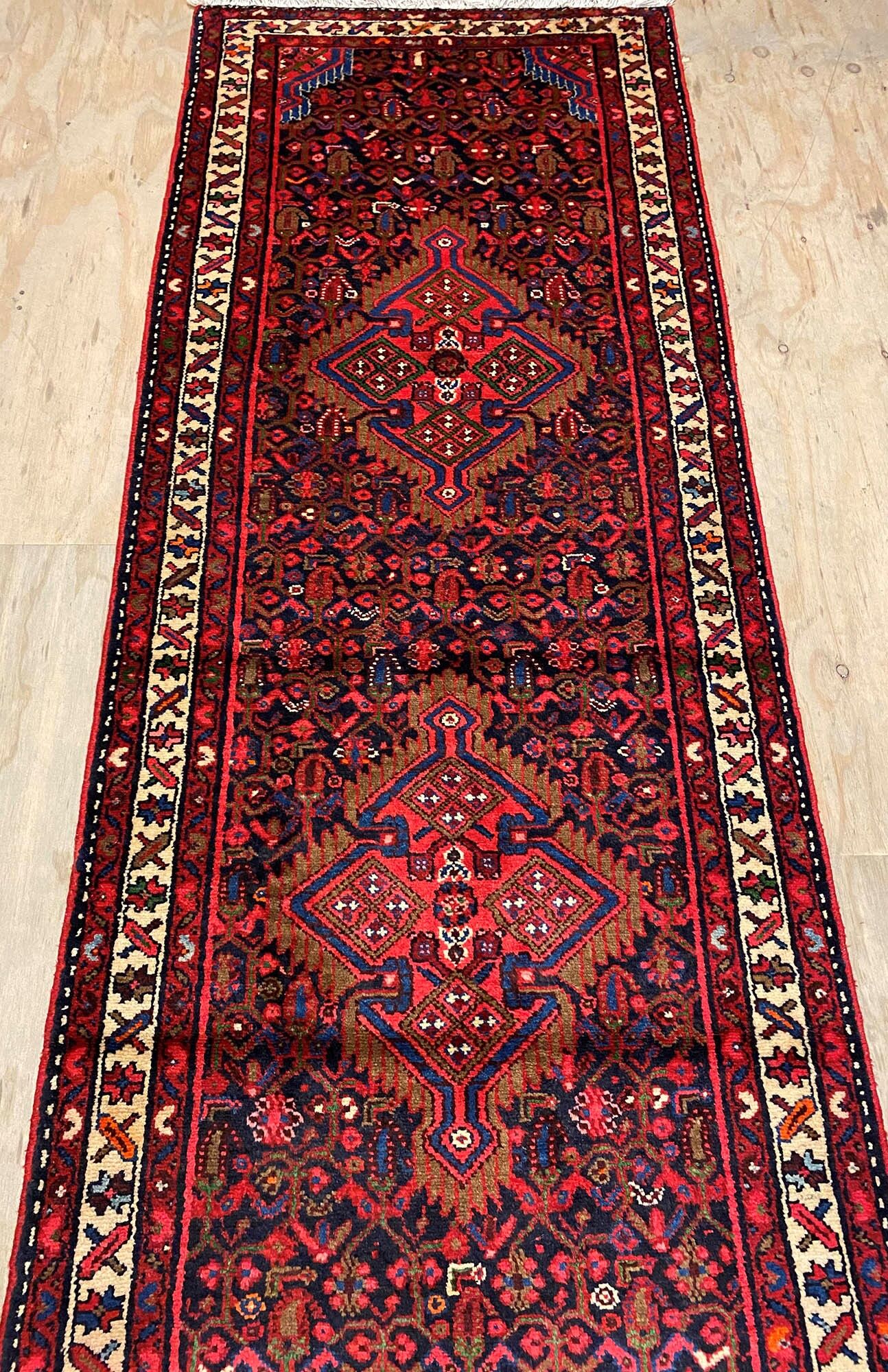 – Durable Elegance: Elevate your hallway with this Herati design handmade Persian Hamedan Runner, known for its hard-wearing and durable qualities. Pure hand-spun wool pile on a cotton base provides both comfort and longevity.